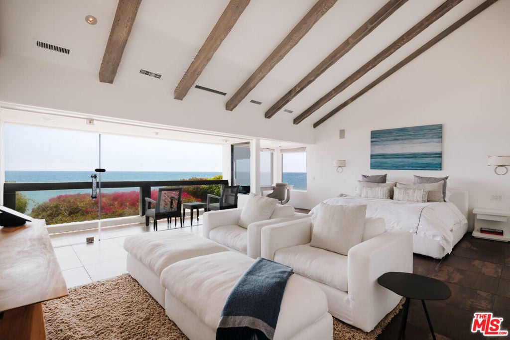 Bold design and modern features coalesce in this newly remodeled three-story beach house. Located in the guard-gated community of Malibu Colony, this 5 bedroom/5 bath home w/custom stone floors, fabric walls, and hand-selected designer elements. Perfect for grand or casual living, the home offers a custom aquarium entry that flows into a sleek, but inviting formal living room and dining area with raised fireplace and floor-to-ceiling wall of glass that opens to a logia covered entertainer's deck with a BBQ island, multiple seating areas and raised wood sun/viewing deck with direct beach access. Black granite, ocean view gourmet kitchen with custom stainless steel finishes and high-end appliances. Intimate family/media room with granite bar area. Gorgeous, ocean view owner's suite with sitting area, high ceilings, and double spa-like baths, plus a third-floor equipped gym that overlooks the suite. Four additional en-suite bedrooms, two-car garage with guest parking. Summer months rent is $145,000 per month (June - September)