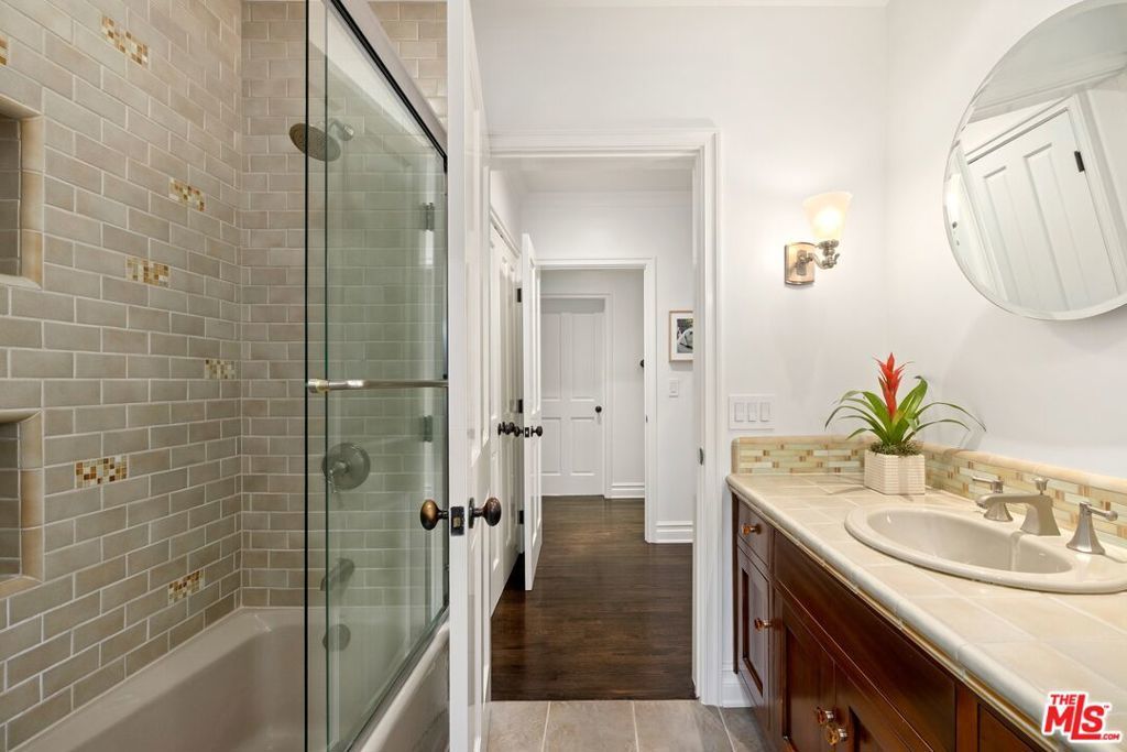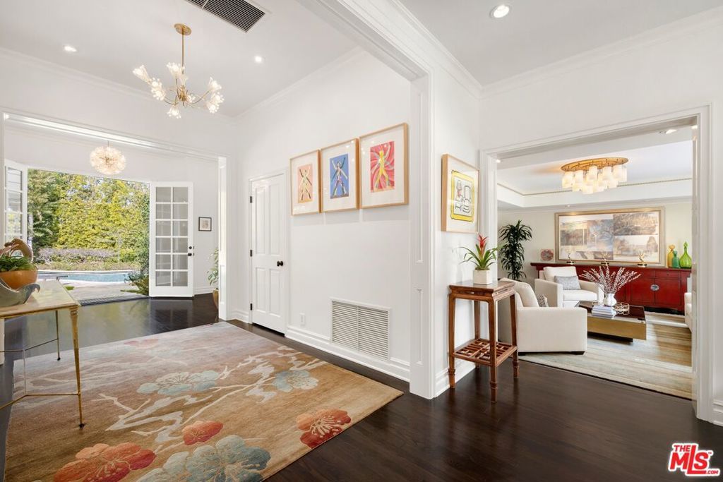Set on a coveted 14,971 square foot oversized corner lot in prime Brentwood, this gated East Coast-inspired estate blends classic charm with modern sophistication. Spanning 6,592 square feet, this designer home features 4 bedrooms and 6.5 bathrooms, thoughtfully conceived for both comfort and style. The first floor, teeming with sunlight throughout, boasts multiple living spaces with flexibility for personal lifestyle. Highlights include a state-of-the-art chef's kitchen- complete with an expansive butler's pantry, two dishwashers, and a wet bar, with built-in wine fridge, formal dining room, formal living room with fireplace, bedroom, media room (possible 5th bedroom), office (possible 6th bedroom), and laundry room with dog wash station. Upstairs, three spacious bedrooms await, including the stunning primary suite. Featuring vaulted ceiling, wood burning fireplace, private balcony overlooking the yard, two spa-like bathrooms with double-size shower, spa tub, radiant heated floors, dual walk-in closets, and skylights, this retreat is the perfect escape from it all. A home gym and family room complete the upper level. Outside, lush hedges frame a private oasis, where a solar-heated pebble tec pool and spa, stone fireplace, built-in barbecue, and pergola-shaded dining area create the ideal setting for relaxation or entertaining under the stars. Walking distance to all that Brentwood has to offer, dining, shopping, including The CountryMart, and famous Sunday Farmers Market. All while offering an unmatched sense of serenity, this Brentwood estate is upscale California living at its best. PLEASE EMAIL, TEXT or CALL LA#1 for all showings.