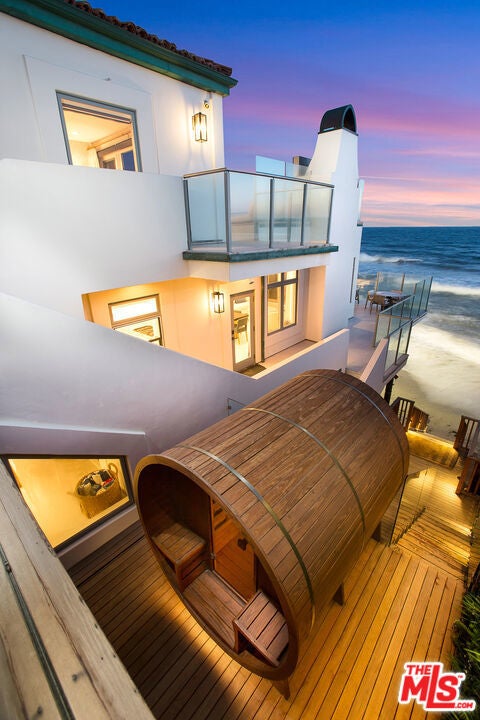 Breathtaking Oceanfront Modern Mediterranean Villa on the sand in Western Malibu! Located just 20 minutes from the closest and most convenient private airport to Malibu. Featuring staggering panoramic ocean views and direct access to a quiet stretch of coast, Yerba Buena Beach. Behind the gate lies a private courtyard with a panoramic ocean view barrel sauna, a large jacuzzi, and two massive outdoor decks overlooking the Pacific with a large built-in fireplace on the rooftop deck. Inside, this enclave is flooded with natural light and bright Spanish tones. The oceanfront master suite offers a peaceful retreat, and the home features 2 additional guest rooms and a movie theater, and marble kitchen with a center island. This smart home is an entertainer's dream with plentiful areas to relax and recharge. With a pristine PRIVATE sandy beach and world-class surf at your doorstep, proximity to the grand Santa Monica Mountains, and perfectly within reach of major cities yet completely removed from the tumult, it is the ideal beach getaway or year-round paradise.