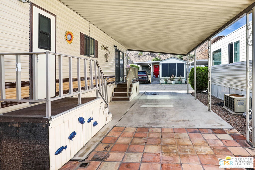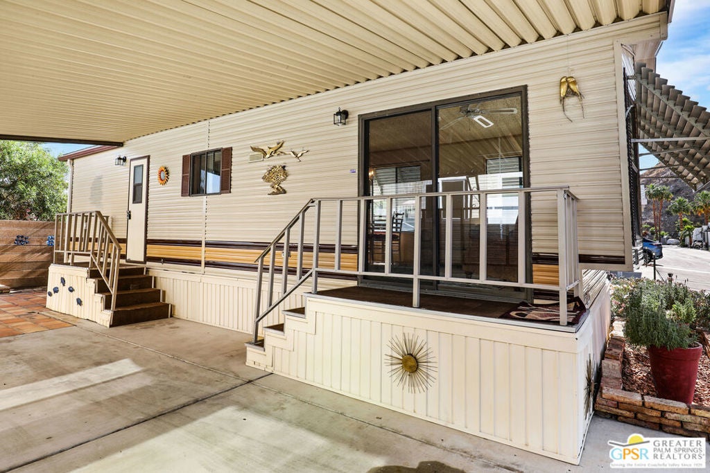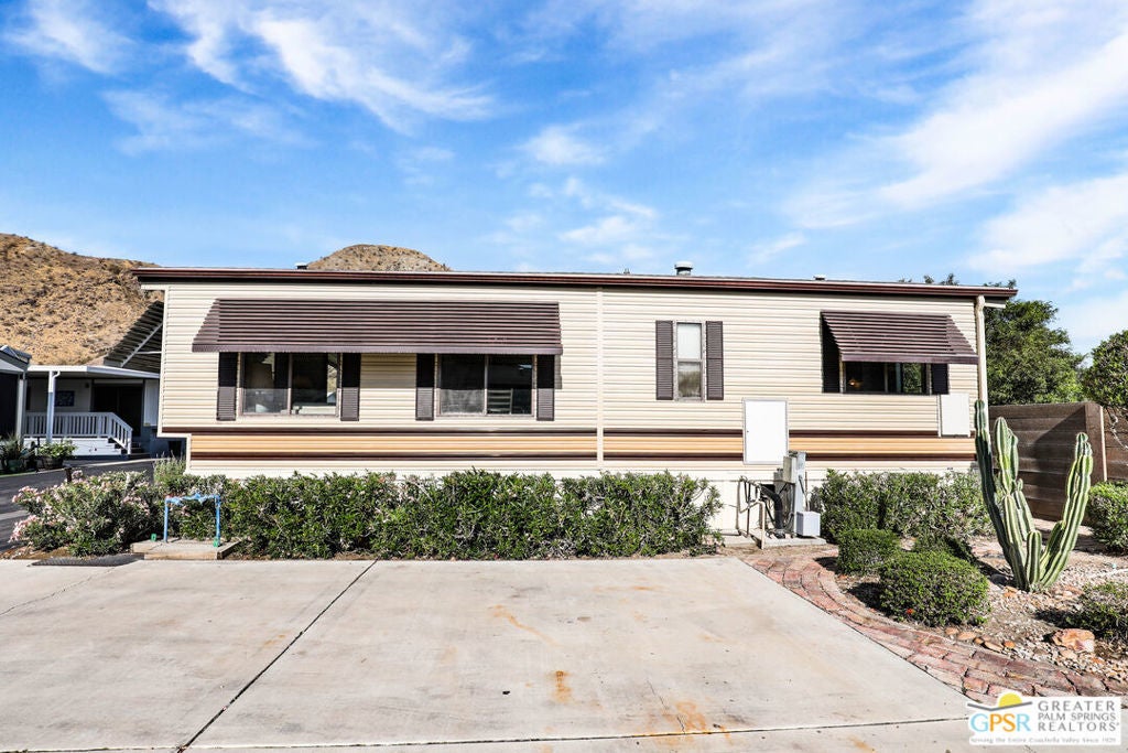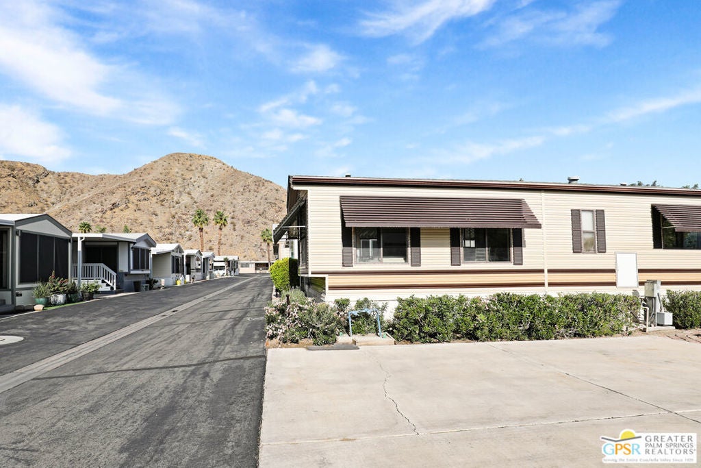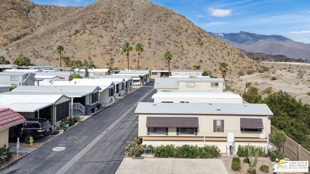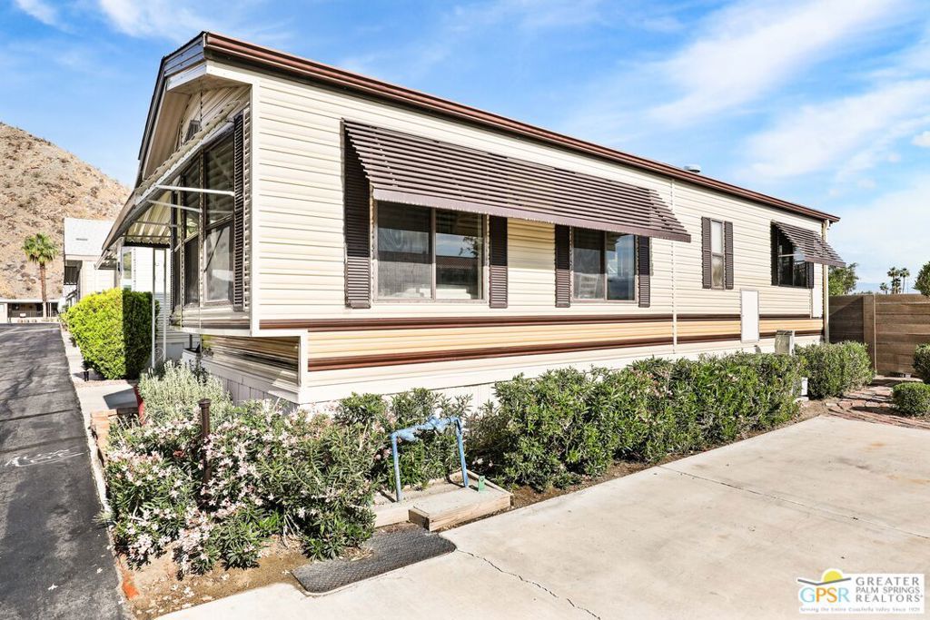 Desert Retreat Awaits - Tiny Home with Big Potential in 55+ Sungate Community! Welcome to Sungate, a vibrant 55+ senior community nestled at the foot of a stunning mountain range just two blocks from Agua Caliente Casino! This charming tiny home is move-in ready and brimming with potential for your personal updates and finishing touches. Step into an open-concept living area designed for ease and efficiency, featuring an abundance of natural light, a ceiling fan, and an inviting slider that connects seamlessly to the kitchen. Cook up something special with a propane range, newer refrigerator, and built-in microwave, all thoughtfully arranged to maximize function. The cozy 1 bedroom includes mirrored closet doors, built-in drawers, and built-in dresser drawers, offering both comfort and flexibility. Outside, enjoy a spacious covered carport with room for two cars parked tandem-style and ideal for relaxation, entertaining, or extra storage. Looking to expand your vision? Sungate's resort-style amenities include two sparkling pools, soothing hot tubs, on-site laundry, a library, and a lively community center with regular events. With an incredibly low Indian land lease of just $110.10/month and an HOA fee of only $232/month, this is an affordable opportunity you won't want to miss. Ideally located near Palm Springs International Airport, shopping, grocery stores, the Rancho Mirage Ritz Carlton, and iconic Frank Sinatra Drive, everything you need is right at your fingertips. Opportunities like this are rare! Schedule your private showing today and unlock the desert lifestyle you've been dreaming of!