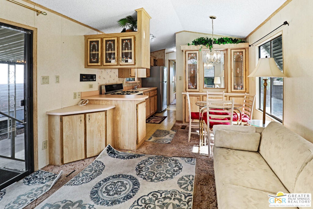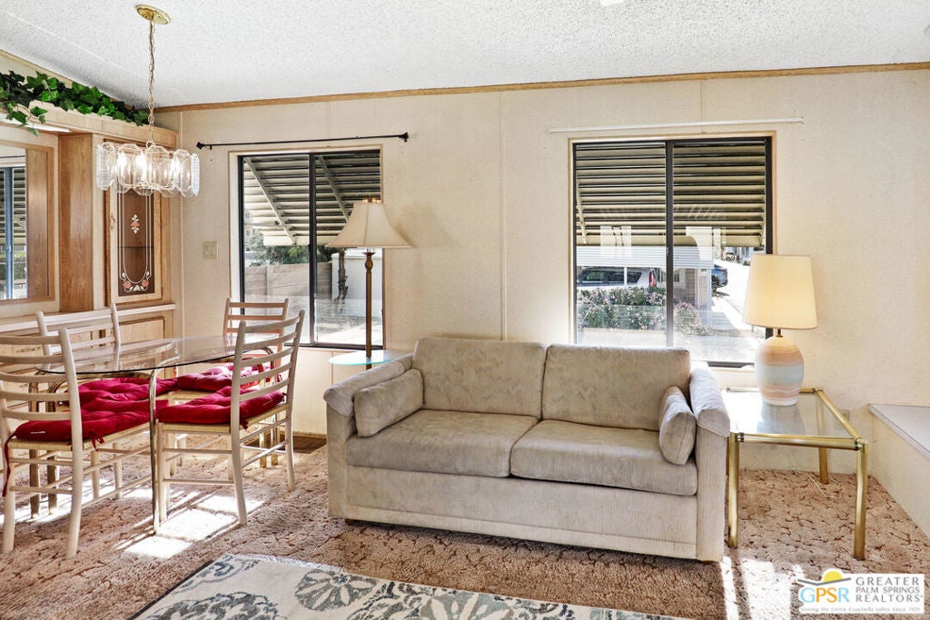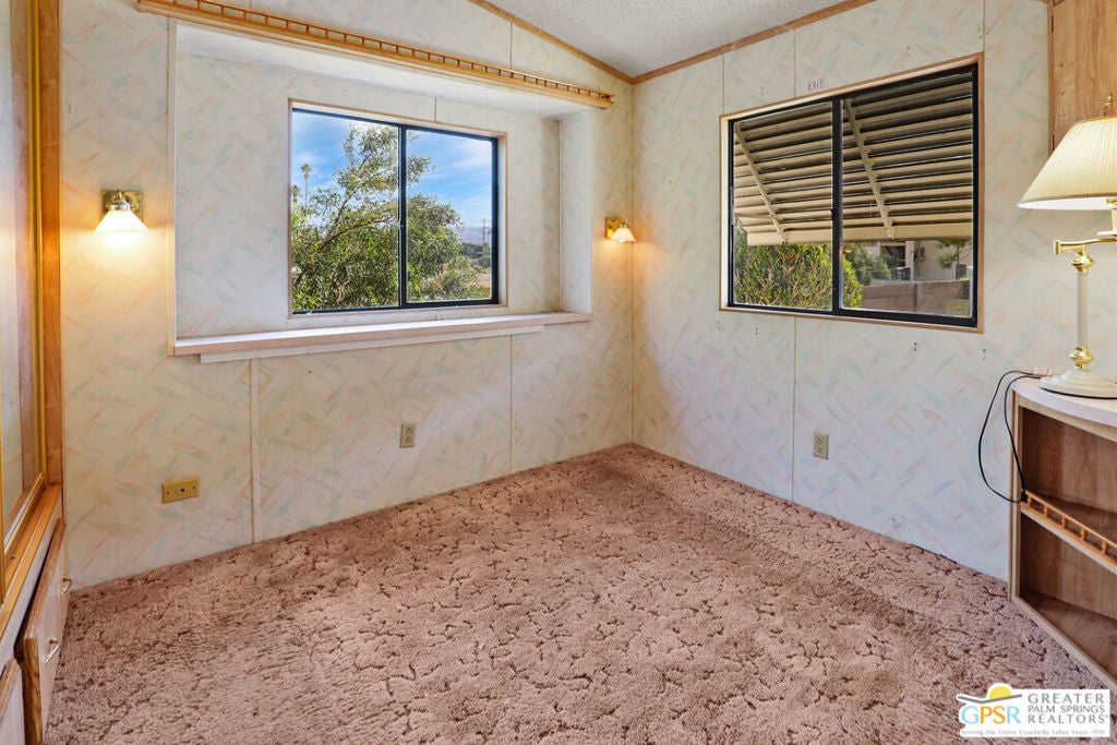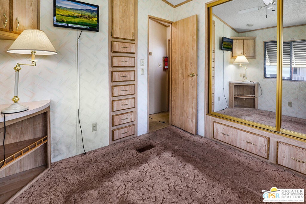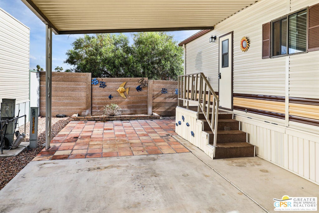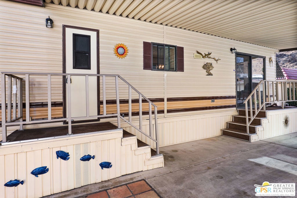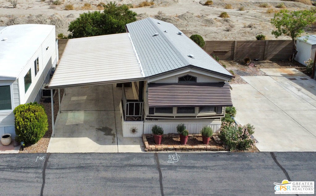 Desert Retreat Awaits - Tiny Home with Big Potential in 55+ Sungate Community! Welcome to Sungate, a vibrant 55+ senior community nestled at the foot of a stunning mountain range just two blocks from Agua Caliente Casino! This charming tiny home is move-in ready and brimming with potential for your personal updates and finishing touches. Step into an open-concept living area designed for ease and efficiency, featuring an abundance of natural light, a ceiling fan, and an inviting slider that connects seamlessly to the kitchen. Cook up something special with a propane range, newer refrigerator, and built-in microwave, all thoughtfully arranged to maximize function. The cozy 1 bedroom includes mirrored closet doors, built-in drawers, and built-in dresser drawers, offering both comfort and flexibility. Outside, enjoy a spacious covered carport with room for two cars parked tandem-style and ideal for relaxation, entertaining, or extra storage. Looking to expand your vision? Sungate's resort-style amenities include two sparkling pools, soothing hot tubs, on-site laundry, a library, and a lively community center with regular events. With an incredibly low Indian land lease of just $110.10/month and an HOA fee of only $232/month, this is an affordable opportunity you won't want to miss. Ideally located near Palm Springs International Airport, shopping, grocery stores, the Rancho Mirage Ritz Carlton, and iconic Frank Sinatra Drive, everything you need is right at your fingertips. Opportunities like this are rare! Schedule your private showing today and unlock the desert lifestyle you've been dreaming of!