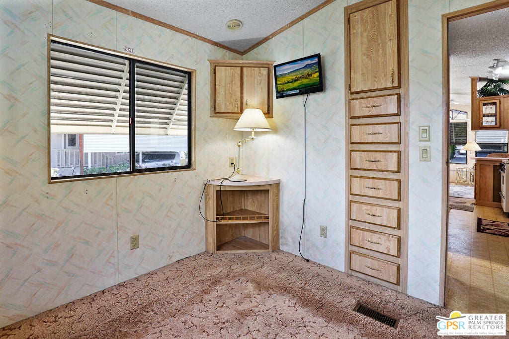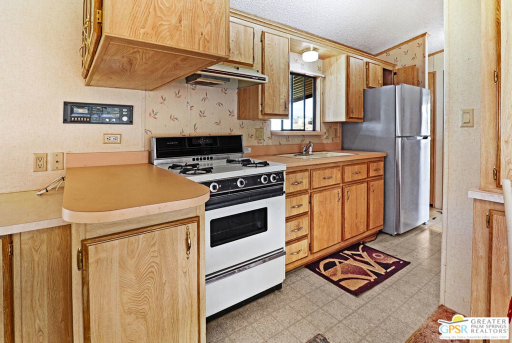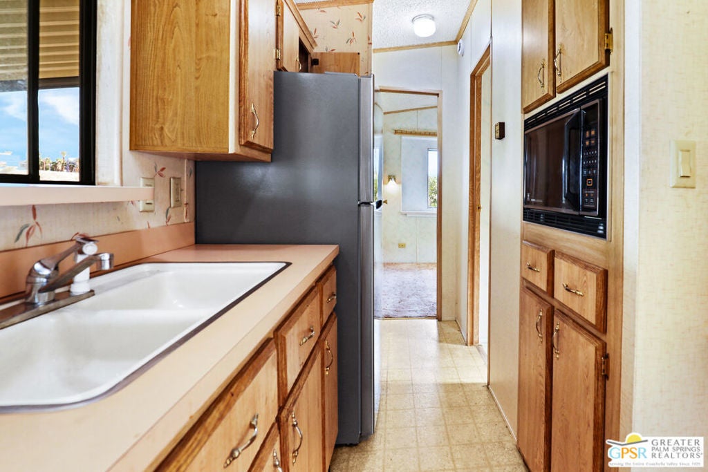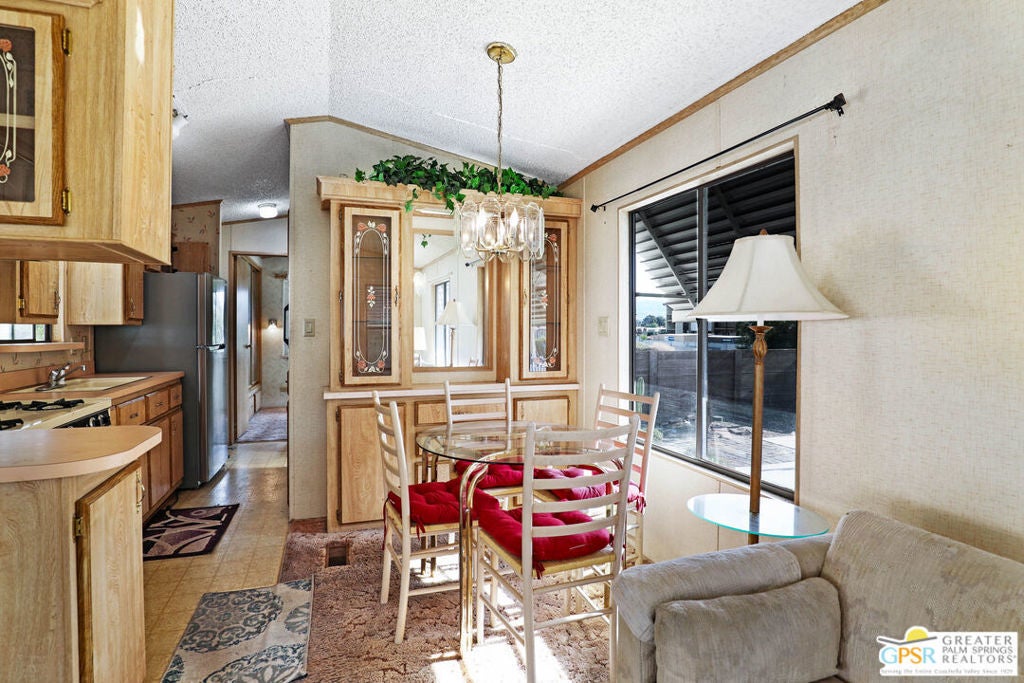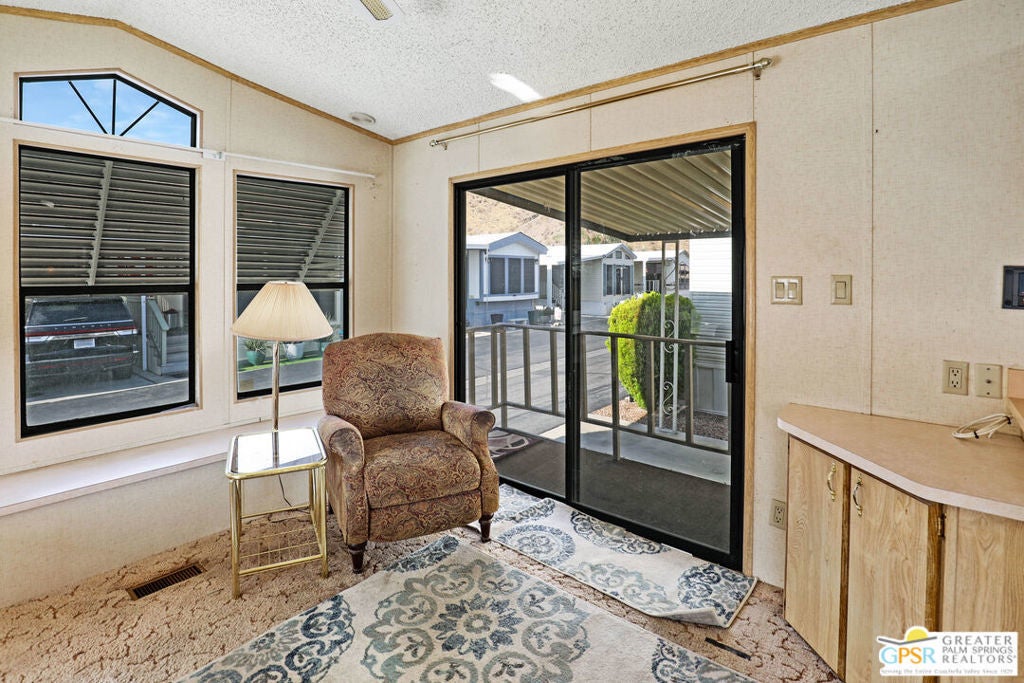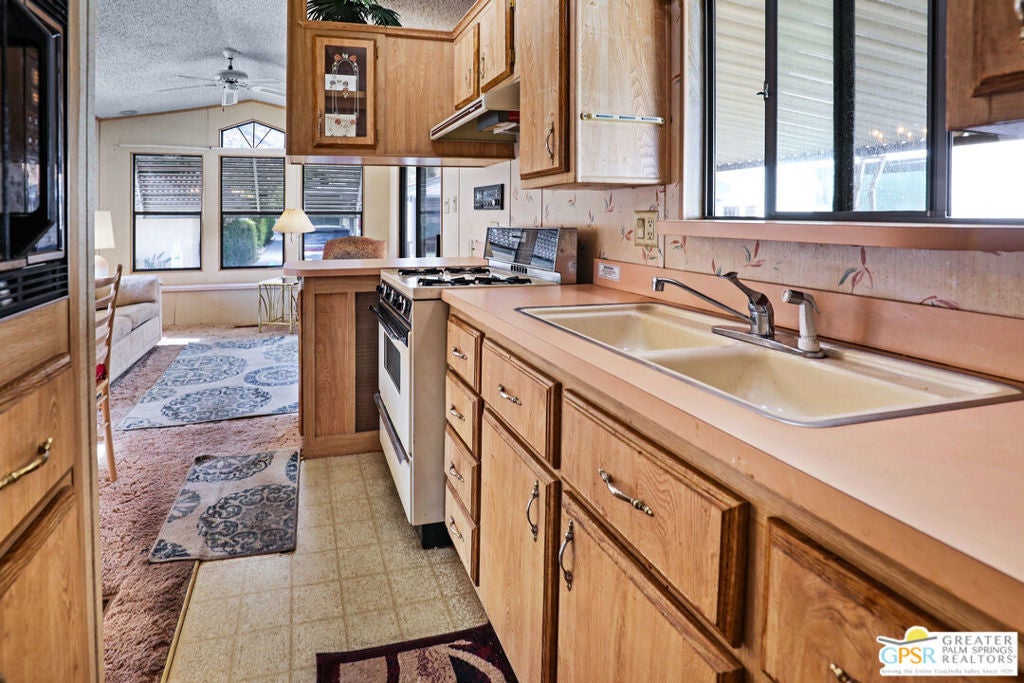 Desert Retreat Awaits - Tiny Home with Big Potential in 55+ Sungate Community! Welcome to Sungate, a vibrant 55+ senior community nestled at the foot of a stunning mountain range just two blocks from Agua Caliente Casino! This charming tiny home is move-in ready and brimming with potential for your personal updates and finishing touches. Step into an open-concept living area designed for ease and efficiency, featuring an abundance of natural light, a ceiling fan, and an inviting slider that connects seamlessly to the kitchen. Cook up something special with a propane range, newer refrigerator, and built-in microwave, all thoughtfully arranged to maximize function. The cozy 1 bedroom includes mirrored closet doors, built-in drawers, and built-in dresser drawers, offering both comfort and flexibility. Outside, enjoy a spacious covered carport with room for two cars parked tandem-style and ideal for relaxation, entertaining, or extra storage. Looking to expand your vision? Sungate's resort-style amenities include two sparkling pools, soothing hot tubs, on-site laundry, a library, and a lively community center with regular events. With an incredibly low Indian land lease of just $110.10/month and an HOA fee of only $232/month, this is an affordable opportunity you won't want to miss. Ideally located near Palm Springs International Airport, shopping, grocery stores, the Rancho Mirage Ritz Carlton, and iconic Frank Sinatra Drive, everything you need is right at your fingertips. Opportunities like this are rare! Schedule your private showing today and unlock the desert lifestyle you've been dreaming of!