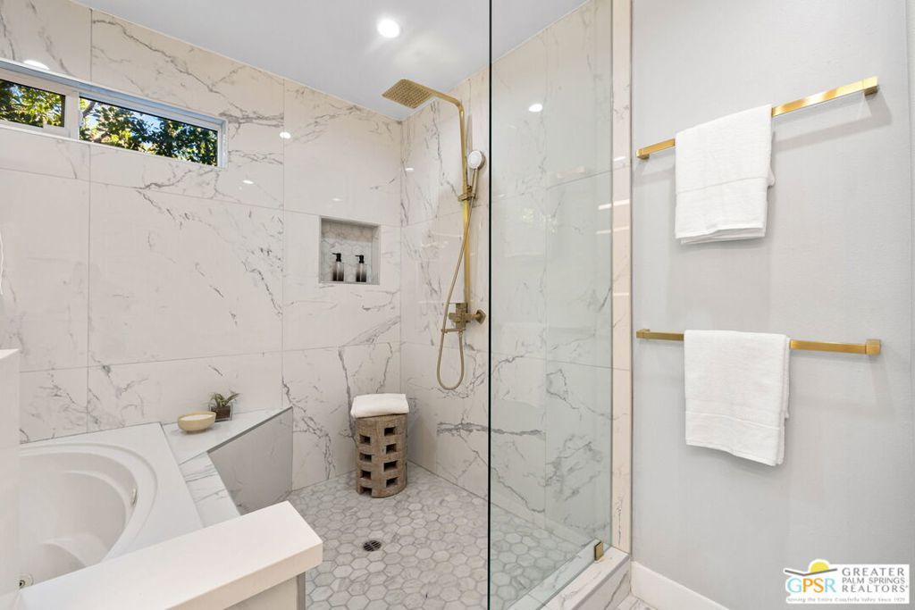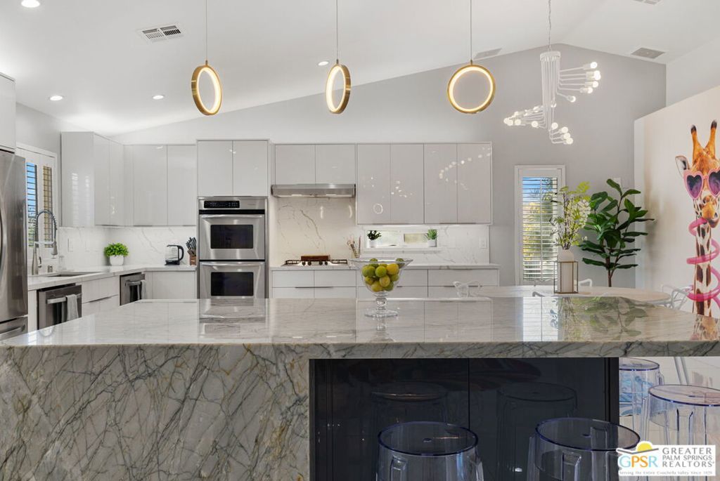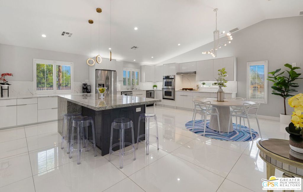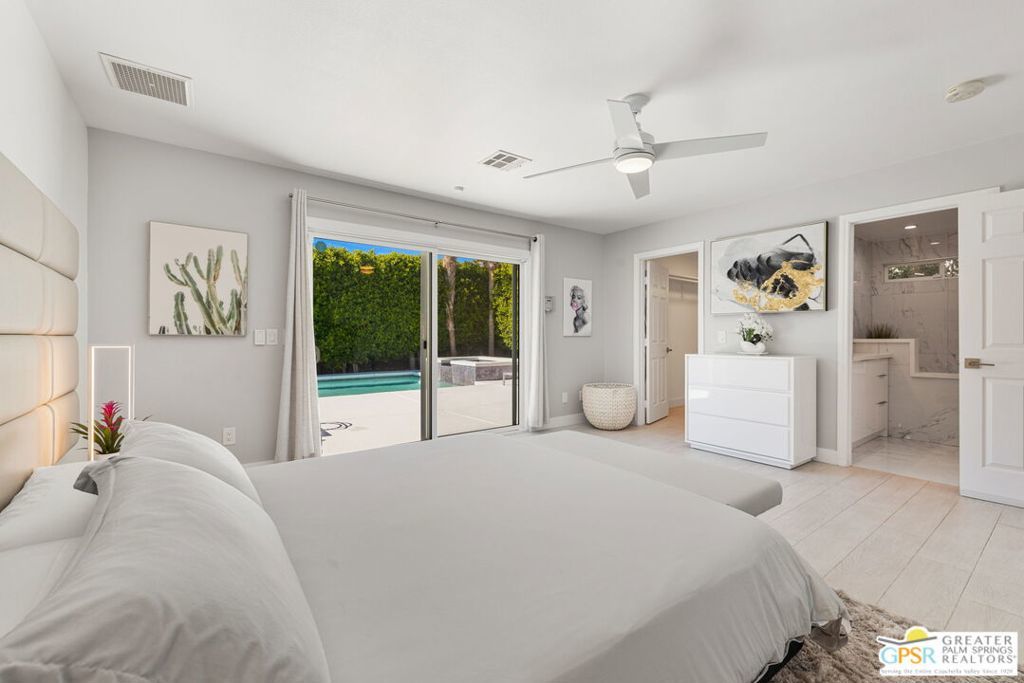 SHORT TERM RENTAL POSSIBLE. As of 11/06/2025 there are 2 parties on the waitlist for a regular short term rental permit. Junior short term rental permit available immediately. This home is perfect for owner occupancy or rental income generator! Welcome to 1811 N Los Alamos Road, a thoughtfully remodeled retreat where modern elegance and privacy merge beautifully. Enjoy the newly resurfaced saltwater pool & spa, lush ficus privacy walls & effortless indoor-outdoor living. Situated in Palm Springs' Gene Autry neighborhood, this exceptional 4-bedroom, 3-bath home spans 2,269 square feet on a private, walled, and gated corner lot of over 10,000 square feet. Step into a uniquely designed open floor plan with high vaulted ceilings that create expansive living and entertaining spaces, with a chef's kitchen as its centerpiece and ideal for gatherings with guests. A dream for any culinary enthusiast, the kitchen features ample counter space, a wine refrigerator, double ovens, two dishwashers, and an extra-large island with informal dining, along with a spacious formal dining area next to it. This residence offers two primary bedroom suites, each designed as a tranquil retreat with modern bathrooms and large walk-in closets, providing comfort and privacy for everyone. The west facing backyard is a private and serene paradise, surrounded by mature Ficus trees and complete with a heated saline pool and spa, a built-in BBQ area for outdoor dining, and a putting green for endless entertainment. Enclosed by walls and featuring palm trees, Moringa trees, and a Mexican lemon tree, the expansive front and side yards are perfect for pets to roam freely in a secure environment and relaxing in a hammock while savoring the beautiful San Jacinto mountain views. Additional highlights include an ADT security system with 24/7 monitoring and 7 wired cameras for enhanced security, leased solar panels for energy efficiency, and cable and/or fiber connections for reliable internet access. This Gene Autry location provides easy access to all Coachella Valley has to offer. For those that travel often, it is an easy jaunt to I-10 and Palm Springs International Airport. Enjoy diverse dining options nearby or explore local attractions such as golf courses, parks, tennis & pickle-ball courts, hiking trails, shopping centers & cultural venues all within 5-30 minutes of home. This property offers more than a home; it's a lifestyle destination. Don't miss the chance to own this exceptional Palm Springs residence!