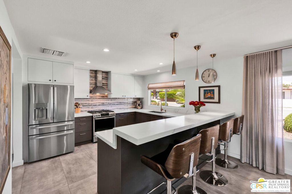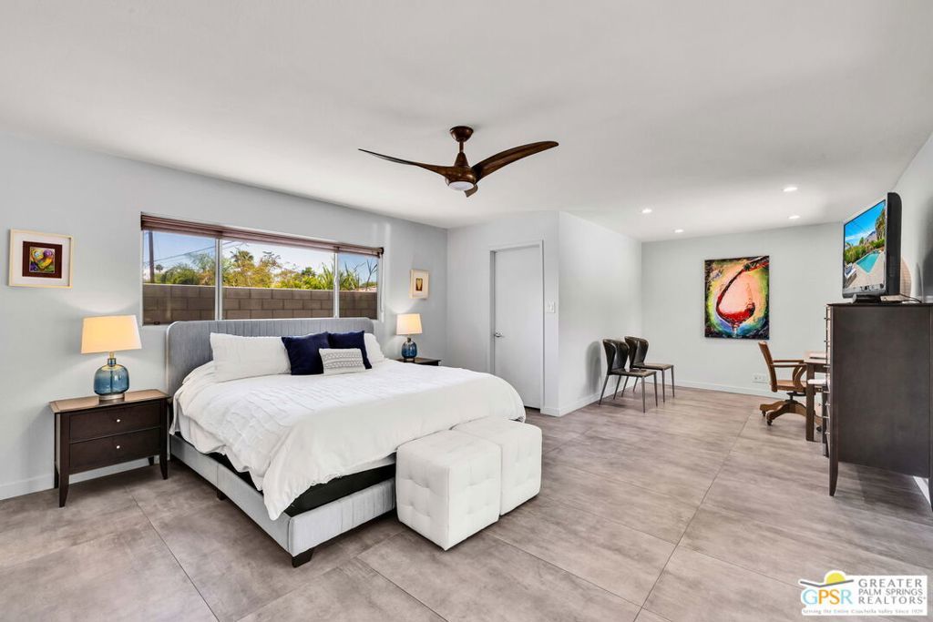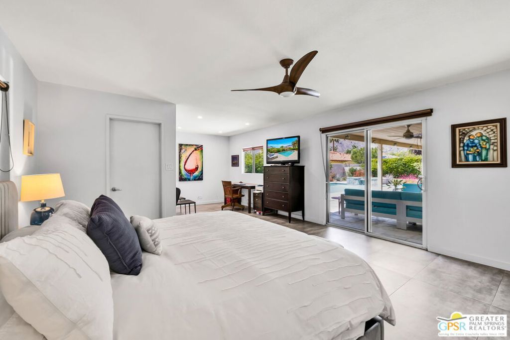 Your Palm Springs Dream Retreat in Movie Colony East: Tucked away in one of Palm Springs' most iconic and sought-after neighborhoods, Movie Colony East, this desert hideaway blends timeless charm with modern updates, creating the perfect escape for full-time living or weekend getaways. Set on an expansive 10,000+ sq. ft. lot, this updated 2-bedroom, 2-bathroom gem offers 1,630 sq. ft. of curated comfort and style. Inside, you'll find a thoughtful blend of materials; porcelain tile floors flow throughout the main living areas, while the bathrooms are dressed in elegant travertine tile. The heart of the home, a fully updated kitchen, features Quartz countertops, sleek custom cabinetry, and a statement backsplash, all anchored by premium appliances, including a Bosch dishwasher and GE Profile fridge and stove. The primary suite is a true sanctuary, complete with a generous walk-in closet and a flex space perfect for a home office, reading nook or yoga corner. Behind the scenes, smart upgrades ensure year-round comfort and efficiency: a newer HVAC system (2021), dual-pane windows and doors, a 200-amp electrical panel (2017), and 22 owned solar panels (installed in 2018) to keep your energy bills low and your impact light. Step outside and step into your own private resort-style backyard. Designed for sun-drenched days and starlit evenings, the outdoor space features a large pool, elevated spa, outdoor kitchen with built-in grill, sink, ice chest, and bar, plus a lush lawn, cozy fire pit, and plenty of space to entertain, unwind, or just soak in the mountain views. And there's more: This property doesn't just offer a beautiful lifestyle today, it holds exciting potential for tomorrow. Included with the sale are plans for an 800 sq. ft. expansion, envisioned to include a spacious family room, bar, dining area, laundry room, half bath, and a private studio casita with its own entrance, kitchenette, bathroom, and patio, ideal for guests, multigenerational living, or income-producing possibilities. Whether you're lounging poolside, sipping cocktails under the stars, or watching the sunset paint the San Jacinto Mountains, this home captures the essence of effortless desert living; stylish, serene, and ready for whatever you dream up next.