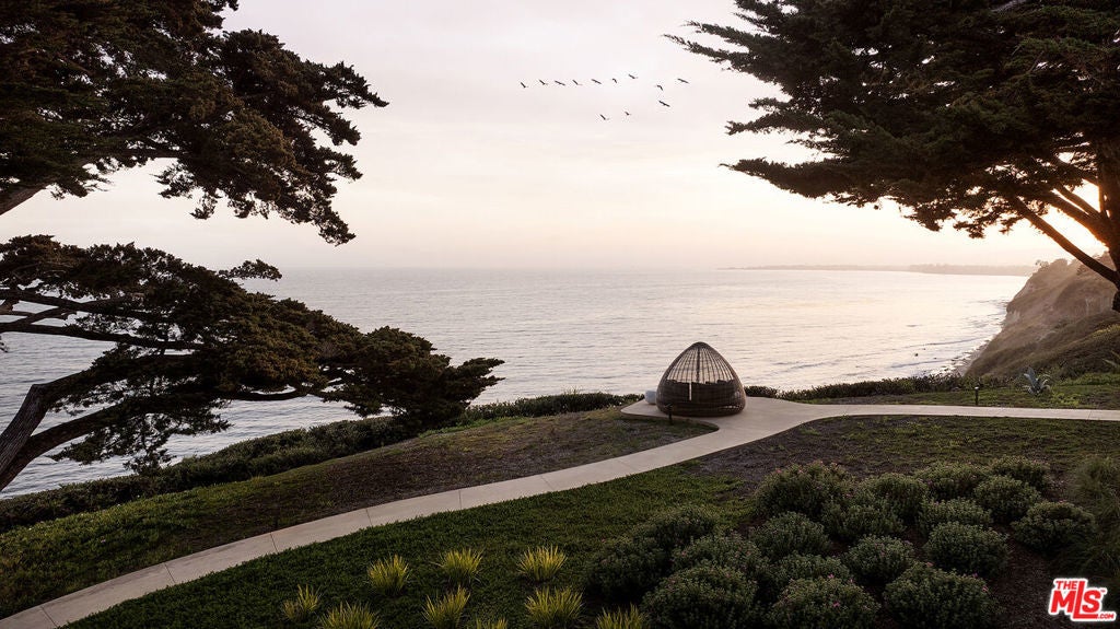 An exquisite four-acre bluff delivers a fully transformed, resort-inspired lifestyle positioned amidst boundless views of ocean and coast. Masterfully renovated with the finest materials and select finishes, this remarkable residence is a chic, sprawling haven for all ages, complete with three dedicated observation areas, park-like playground, and steps down to a private beach. Gated and concealed from the street, the private grounds include a large motor court with an abundance of parking, meandering pathways, and sprawling lawns. Double glass-paned steel front doors open to a gallery-style foyer with stone floors and paneled vaulted ceilings as architectural lines converge to frame a preview of what's to come. The vast double-height living room showcases the magnificence of the Pacific through a series of towering, floor-to-ceiling windows aside a travertine fireplace and custom staircase that elegantly swirls to the second level. An adjacent formal dining room is complete with art wall and tray ceiling for added drama and dimension. The family room has pocket doors and a massive picture window to highlight the home's natural setting. The chef's kitchen is equipped with state-of-the-art Miele appliances, beautiful center prep island, farm sink, and ocean-facing breakfast ledge. Nearby, a wet bar seats four and includes a pass-through to the outdoor entertaining spaces. Powder rooms are bespoke and curated. Upstairs is a pajama room, the ocean a centerpiece. The sumptuous primary wing includes a wonderful parlor, coffered ceilings, fireplace, and serene spa-inspired bathroom with dual-sink stone vanity, oversized glass shower, soaking tub, and intricate mosaic wall. There is also a media/gaming room adjacent to the secondary bedrooms, a gym with steam room, a wine cellar, mud room, and large theatre with billiards and card area. Outside, enjoy a premium resort experience with numerous patios, pool, spa, and full-size basketball/tennis court. For the young at heart, a playground is equipped with a sandbox, swings, jungle gym, slide, and in-ground trampoline! There is even an outdoor kitchen equipped with a restaurant-grade pizza oven for serving a large number of guests. Enjoy magical sunsets from the lounging cabana or gather around the fire pit for evening conversations oceanside. Welcome to this idyllic slice of paradise, sited just moments to Santa Barbara's historic downtown, numerous wineries and tasting rooms, country clubs, golf courses, the airport, and the boundless beauty of the California coast.