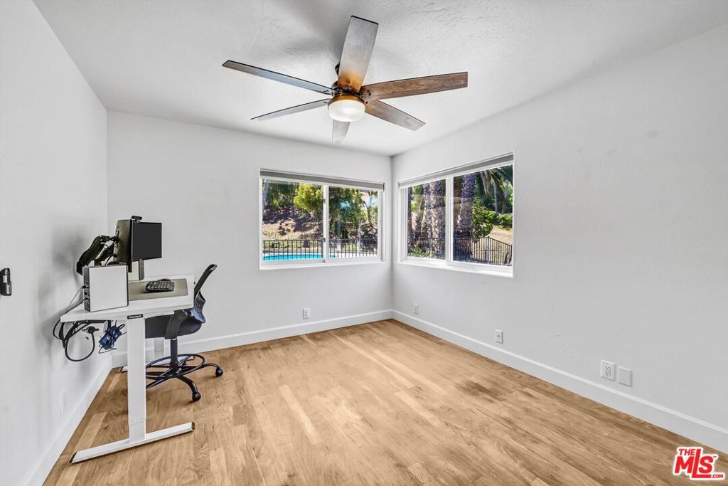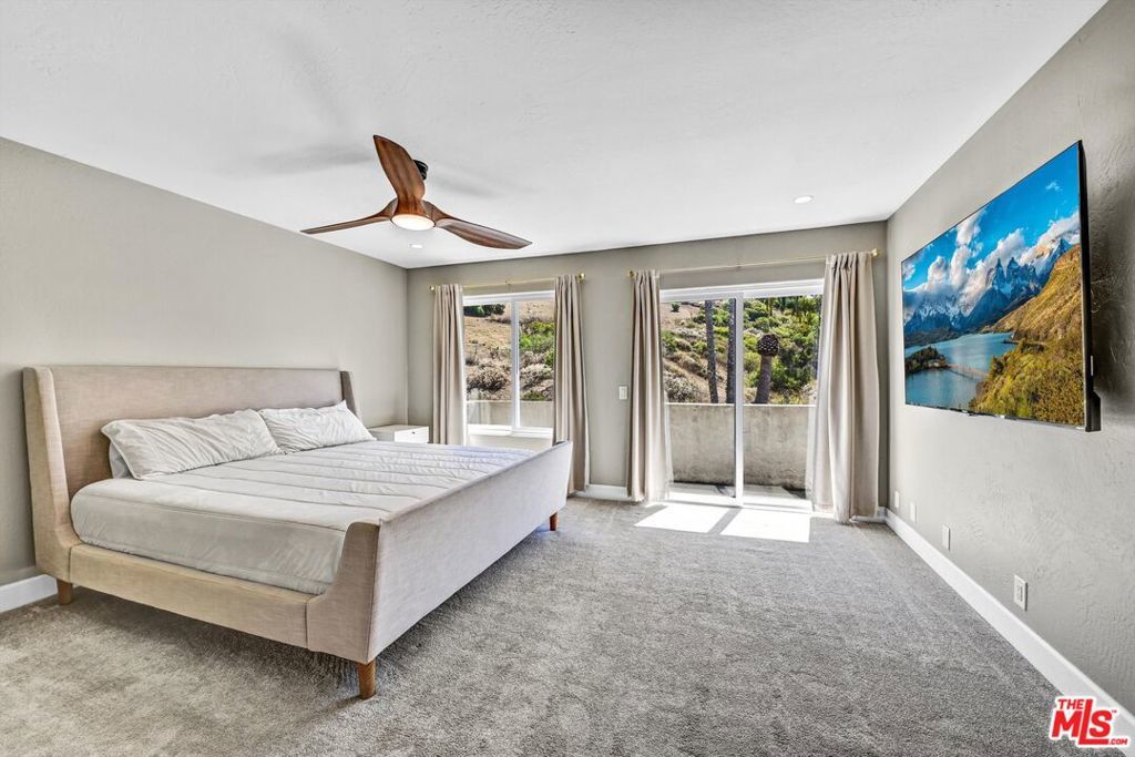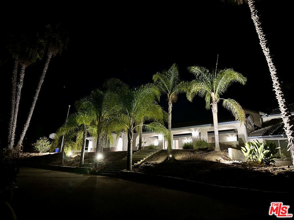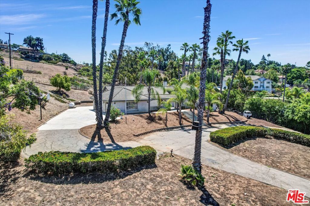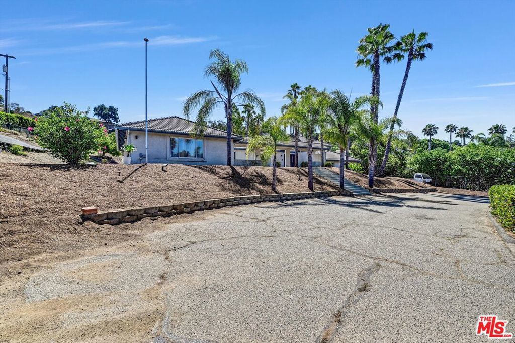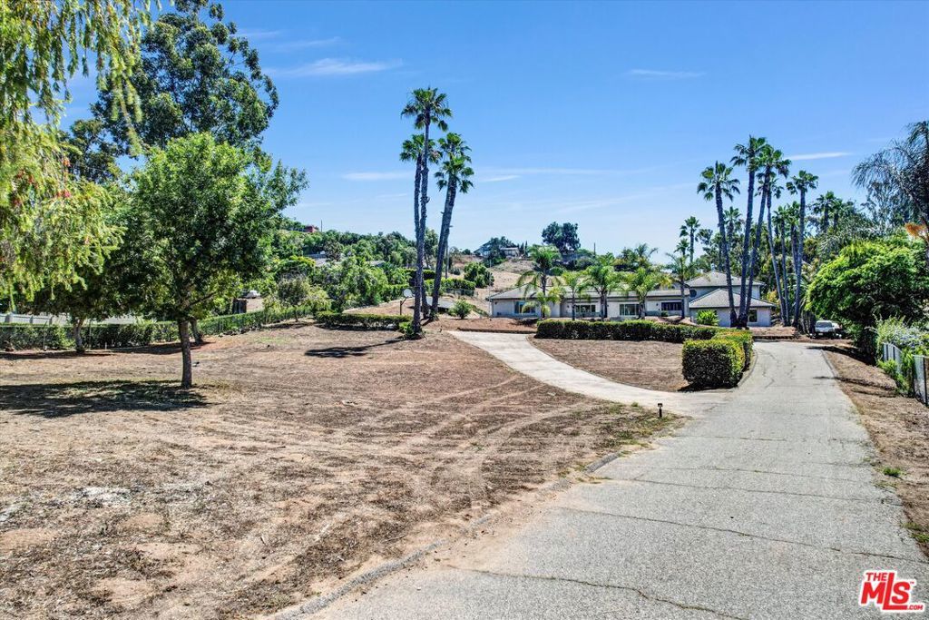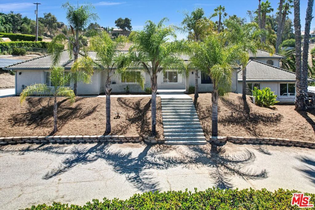 Discover the perfect blend of peace, privacy, and possibility in this beautifully maintained 4-bedroom, 3-bath home, nestled on a fully fenced 1.4-acre lot. Enjoy the best of both worlds, serene country living just minutes from Downtown Vista, top-rated schools, Brengle Terrace Park, and the beach. Step inside to an open-concept layout bathed in natural light, featuring expansive living spaces, designer lighting, and a seamless floor plan ideal for everyday living and entertaining. The heart of the home is a bright, all-white kitchen complete with a new stainless steel refrigerator, a welcoming space for casual meals and lively gatherings. The upstairs primary suite offers a private sanctuary with a recently remodeled en-suite bath and a personal balcony overlooking the pool and rolling hillsides. Downstairs, you'll find three spacious bedrooms, a modernized bathroom, and a flexible second living area perfect for guests, multigenerational living, or a home office setup. Step outside and experience your resort-style oasis: an in-ground pool, covered patio, and vast open yard with space for horses, RV/boat storage, or potential for an ADU. The third-car garage has been finished, offering a versatile space ideal for a home office, gym, or creative studio. Newly installed landscape uplighting beautifully showcases the palm trees and architectural features, creating a warm and inviting ambiance after sunset. The owned solar system and oversized 3-car garage add exceptional value, energy efficiency, and convenience. Whether you're a homeowner seeking space and versatility or an investor eyeing rental income and expansion potential, this unique property delivers endless opportunities. All minutes from Downtown Vista, top-rated schools, Brengle Terrace Park, shopping, and a short drive to the beach.