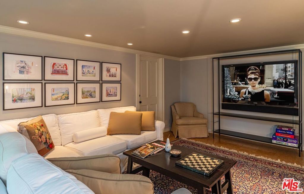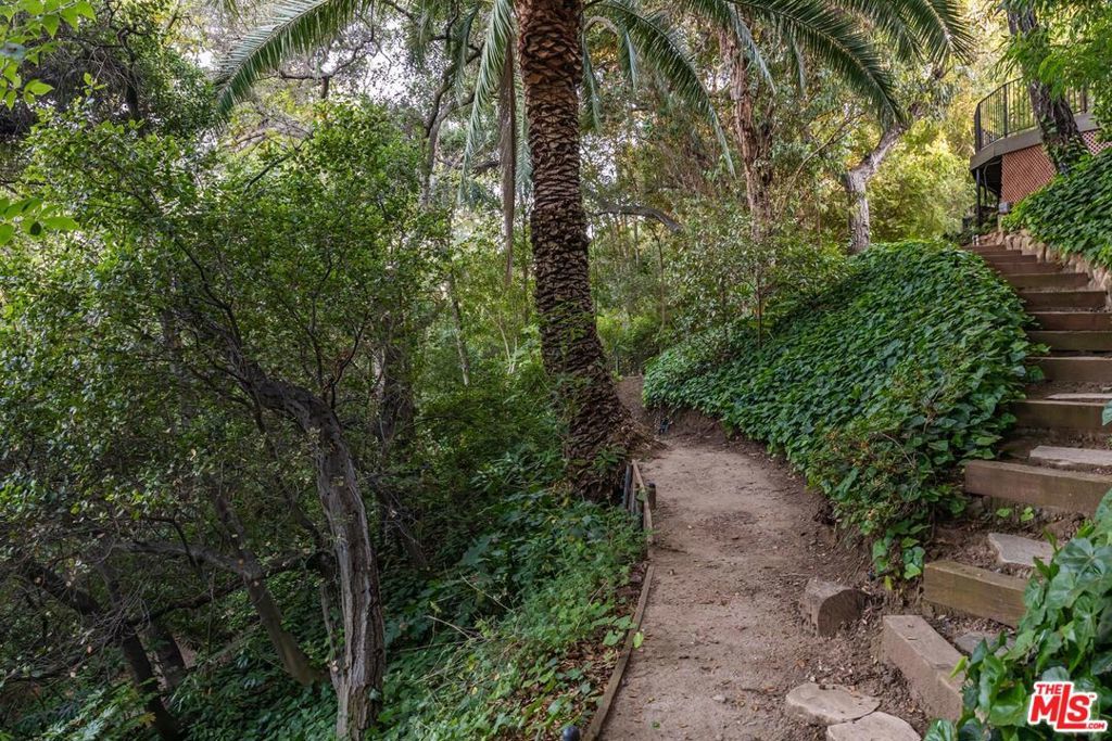 Step beyond the private gates into a world where cinematic legacy meets refined contemporary luxury. Originally constructed in the late 1930s, this Georgian-inspired estate has been extensively and thoughtfully renovated, seamlessly marrying its historic roots with elevated modern refinement. Once home to silver-screen icons Audrey Hepburn and Deborah Kerr, the residence rests on an exceptionally rare ~31,163 sq ft (~0.72-acre) lot in the heart of Brentwood, serene and secluded yet just moments from the city's vibrant pulse. Gracious symmetry, soaring ceilings, and impeccable architectural details anchor a luxurious yet welcoming space. A covered lanai featuring a fireplace and built-in heaters invites guests to explore rose-bordered pathways that balance formal elegance with tranquil ease. Enjoy effortless indoor-outdoor flow throughout the living room, while the wood-paneled conservatory, with its custom millwork, offers the perfect space for conversation or quiet retreat. The formal dining room, embellished with hand-painted Gracie wallpaper, exudes timeless sophistication, ideal for elegant gatherings or intimate celebrations. The sun-kissed chef's kitchen overlooks the pool and is appointed with premium stainless-steel appliances, a walk-in pantry, and adjoining guest or staff quarters. A refined library and flexible living spaces make the main level both functional and graceful. This home offers five bedrooms and six and a half bathrooms, designed with both privacy and luxury in mind. The upstairs primary suite is an ideal escape, complete with dual spa-like bathrooms, walk-in dressing rooms, and a private balcony with sweeping garden views. Two additional en-suite bedrooms upstairs, one with a fireplace and the other framed by verdant panoramas, offer serene overnight sanctuaries. A fourth en-suite bedroom is located on the main level, while a fifth bedroom, ideal for guests, staff, or a gym, is privately tucked away on the lower level. Outdoors, enjoy resort-style amenities including a heated pool, private putting green, expansive lawns, and a tree-lined hillside with winding garden trails, a rare and enchanting natural feature in Brentwood. Mature landscaping and thoughtful design make every corner of this estate feel secluded and serene. Located just steps from Kenter Canyon Elementary, one of L.A.'s highest-ranked public charter schools, this estate also offers access to a top-tier academic community. Historic charm meets modern reliability with a multi-zone HVAC system, whole-home gas generator, hot water recirculation, and an oversized two-car garage. Offered for the first time in over 30 years, this is more than a home; it is a narrative of elegance, history, and timeless allure.
