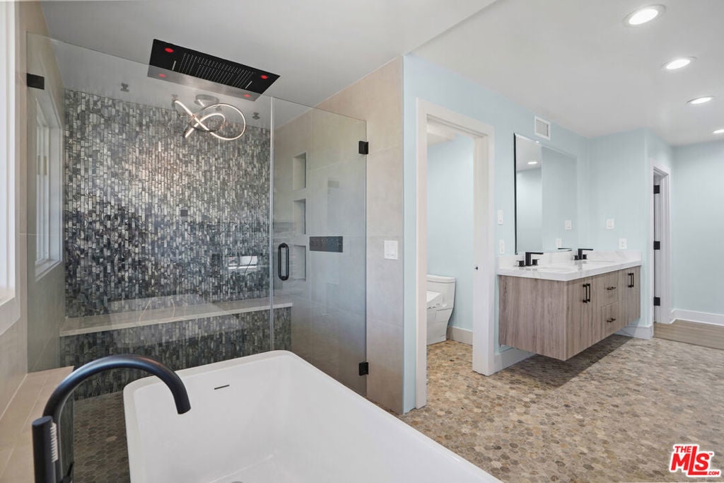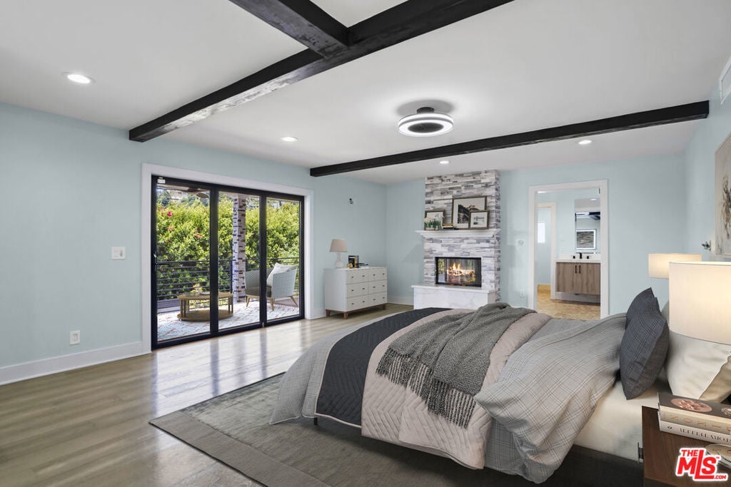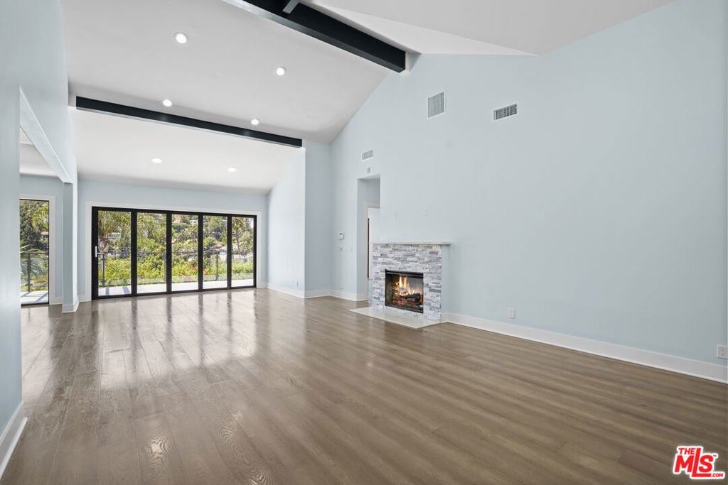 Newly remodeled 3+2.5 home located in the historic Hollywood Hills area, with views to the iconic Hollywood Sign. The main level offers an open floorplan of the living, dining and kitchen areas. In addition, the vaulted ceilings and French doors allow for lots of natural sunlight and a more spacious feel. Included in the main living space is a half bath, two bedrooms with sliding glass doors and 3/4 bathroom. All kitchen appliances are stainless steel Bertazzoni. The master suite can be found in the lower level offering a cozy gas fireplace, plenty of closet space and grand master bathroom with oversize shower and separate soak bathtub. The double decks are great to enjoy the picturesque views. Located only a short drive to shops, cafes, restaurants, Hollywood Blvd, Griffith Park, hiking trails and so much more.