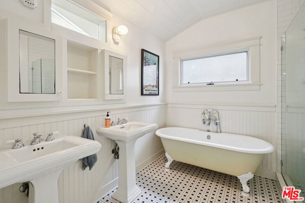 When an original character 1915 Venice Beach bungalow is exquisitely enhanced by a Payson Denney architectural extension, an enchanting residence is accomplished. A historic porch welcomes you in to an unspoiled living/dining area, anchored by an impressive concrete hearth and mantle- a soothing space wrapped in leaded glass windows and French doors. The second floor addition features a cozy creative nook, and a primary bedroom with balcony showcasing our LA sunsets through palm tree silhouettes. A perfect great room with a large, professional, eat-in kitchen and beautiful adjacent living room/den opens out to a newly refurbished sparkling pool/jacuzzi. The mature and manicured grounds are truly breathtaking, with blooming native CA landscaping, a conversational fire pit, covered outdoor dining room, and warm surfer's shower. The ultimate in indoor/outoor living, this incredible craftsman is a prize for the architectural enthusiast and a sanctuary for those seeking the epitome of beach living.