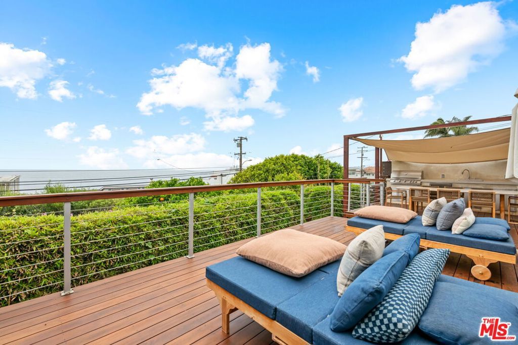 Experience the ultimate in beach living at this beautifully furnished, designer-done retreat on one of Malibu's most iconic stretches of sand. Positioned to capture sweeping ocean views, golden sunsets, and the rhythmic sound of waves, this light filled three bedroom, two bath sanctuary is the perfect coastal escape available now for long or short term lease. Inside, the soaring wood beamed ceilings and oak floors set a warm, relaxed tone in the open concept living and dining space, centered by a striking fireplace and framed walls of glass that invite the outdoors in. The kitchen is equally refined, with stainless appliances, custom cabinetry and artisan tilework. Both bathrooms have been thoughtfully remodeled with sleek modern fixtures. Step outside to a show stopping deck where covered and open lounge areas surround a built-in BBQ and generous outdoor dining space. The gated and fenced property also features a private grassy back yard perfect for pets or play and a two car garage with direct access into the home. Easy beach access to savor long Malibu days.