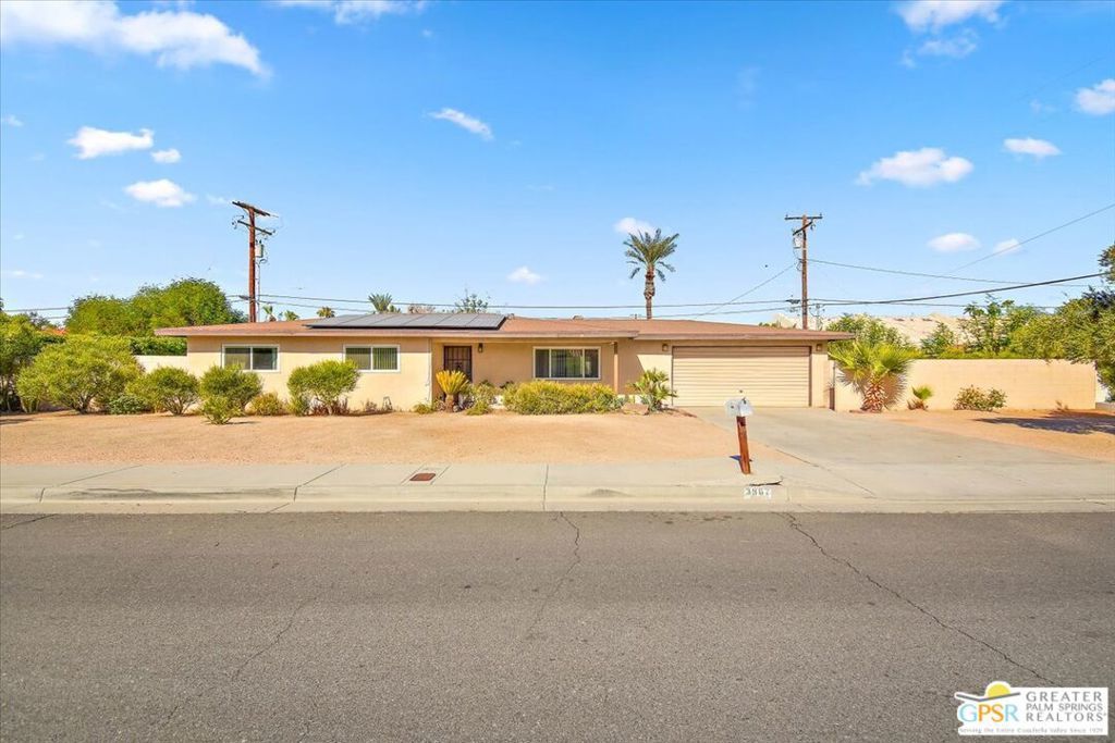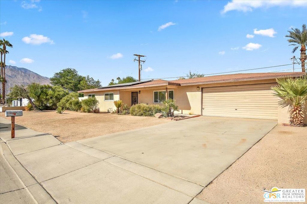 Welcome to 3962 E. Camino Parocela, a charming mid-century home nestled in vibrant South Palm Springs. This inviting 1960 property features 3 bedrooms, 2 bathrooms, and an attached 2-car garage, all set on an impressively oversized lot. With paid solar panels already installed, you can immediately enjoy energy efficiency and lower utility costs, providing both comfort and peace of mind. This home, brimming with character and potential, awaits your personal touch and creative updates, promising a rewarding project where you can bring your dream home to life. Its excellent structural layout and classic design offer an ideal canvas to cultivate a personalized sanctuary. Situated in a diverse and energetic neighborhood, you'll feel connected and inspired. Perfectly positioned near vibrant Demuth Park. Enjoy your days exploring this 61 acre park with a Community Center, dog parks, pickleball courts, jungle gyms for the little ones, sprawling grassy areas, and tranquil walking paths, making it an ideal environment to relax, recharge, and build community. Each day brings opportunities to unwind and revel in breathtaking mountain views from both the front and back yards, perfect for entertaining friends, hosting family gatherings, or simply savoring quiet moments under the clear desert skies. Desert living can make you feel rejuvenated, inspired, and deeply connected to the unique charm of Palm Springs. Don't miss this exceptional opportunity to craft your perfect desert oasis and embrace the quintessential Palm Springs lifestyle.