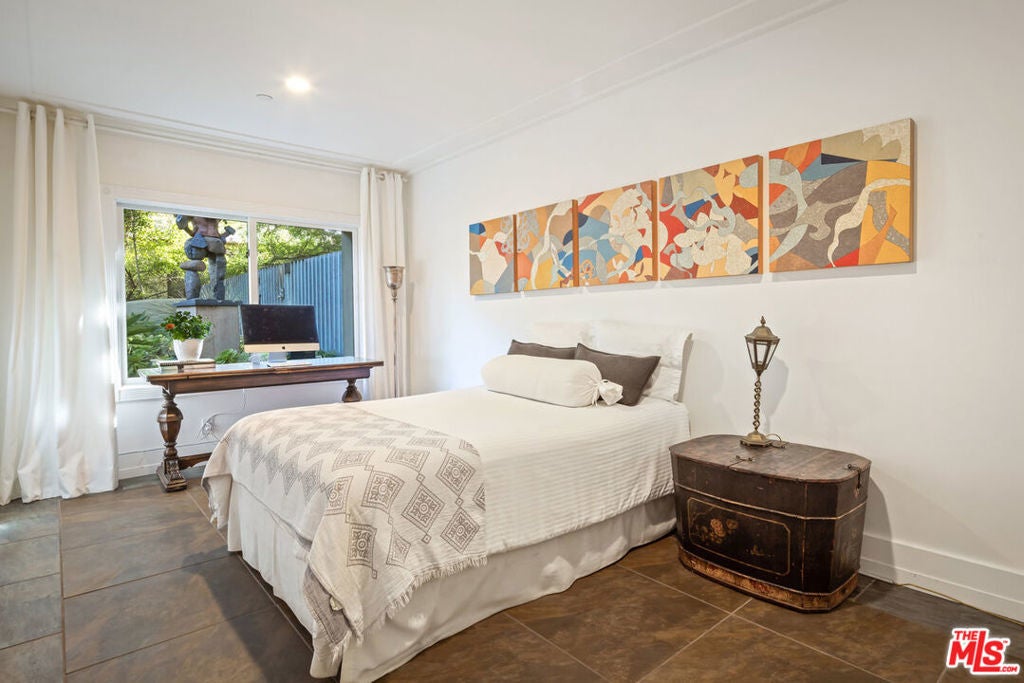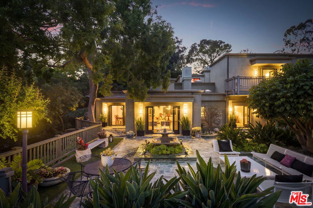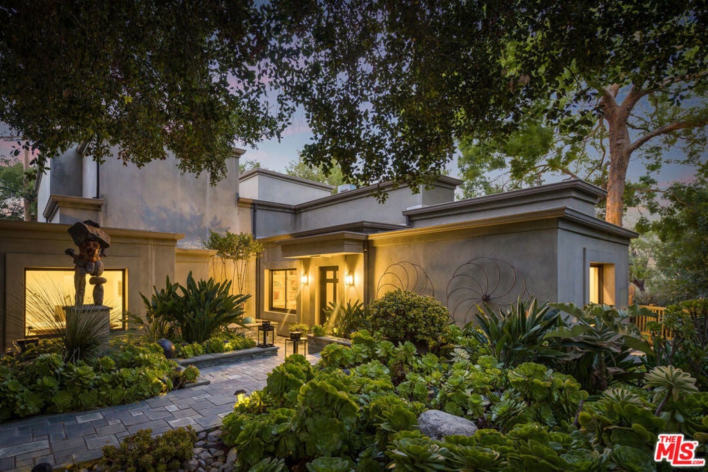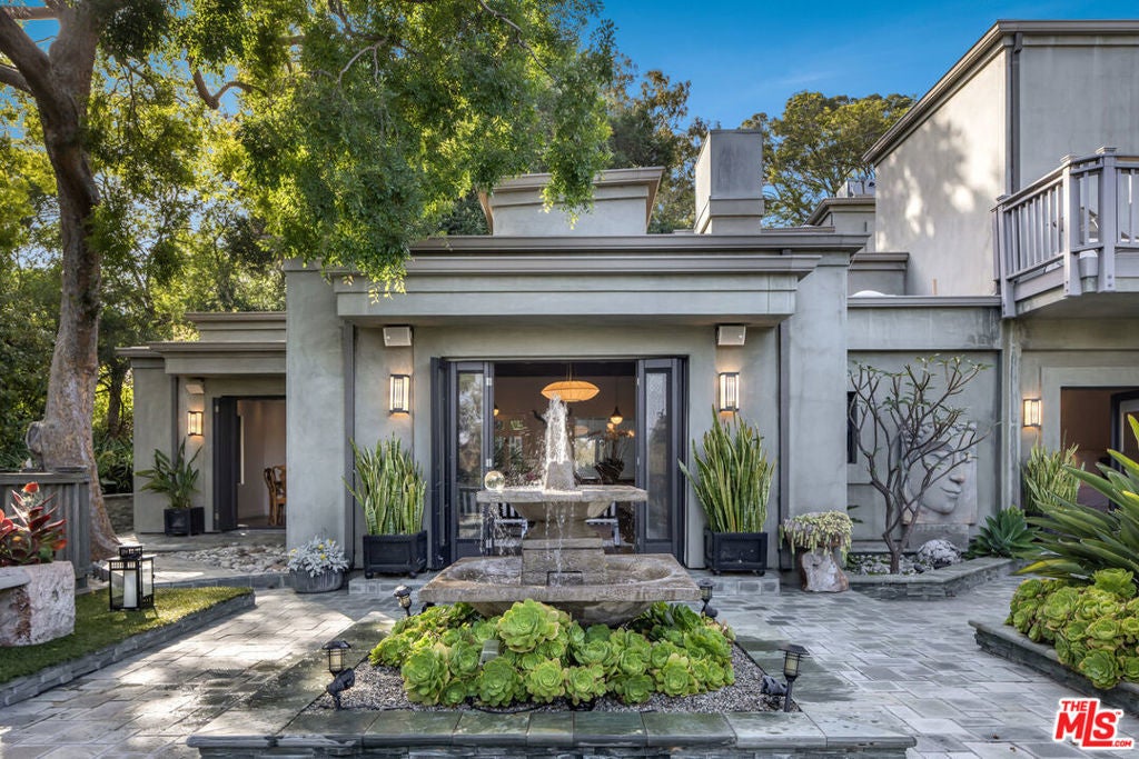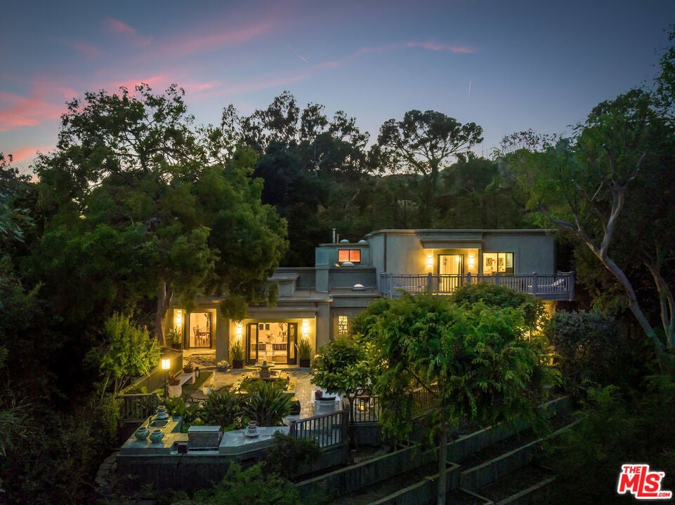 Beautiful contemporary retreat in the prime Woodrow Wilson neighborhood of the Hollywood Hills. Gated and private on a cul de sac, this striking showcase offers a gallery-like atmosphere perfect for creatives or art enthusiasts. The public rooms feature a gallery-like living room with fireplace and a formal dining room, which open to lush gardens and a bubbling fountain. The entire second floor is the ultimate primary bedroom oasis. A massive bright, open, and airy suite in the treetops with an expansive walk-in closet, large primary bath, and a private balcony with views. The room is elegant and serene with a top-quality entertainment and audio projection system. The rear garden is your private zen retreat that is ideal for entertaining or having a meditative moment of solace. With three bedrooms, three baths, and an abundance of charm, this unique and special home is not to be missed.