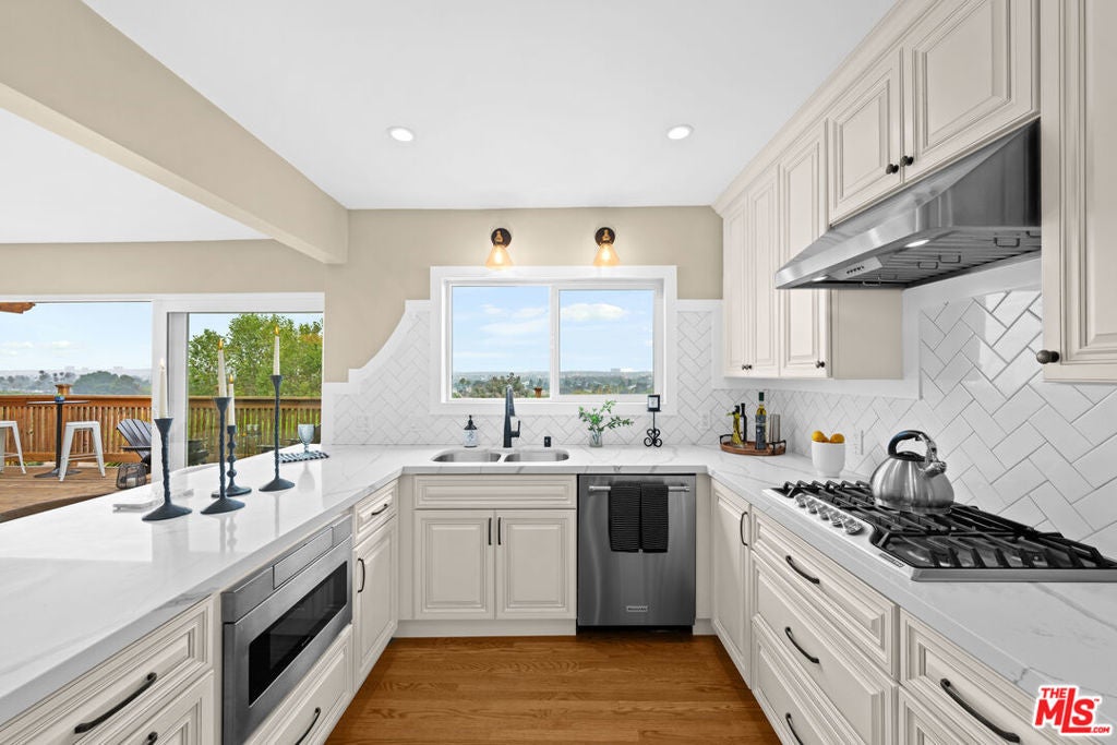 This beautifully remolded prestigious Baldwin Hills Estates home perfectly blends Comfort, Style, and Breathtaking Views, ideal for those seeking a 3-bedroom, 2.5 bath home offering the perfect blend of Luxury & the Centrally Located Convenience of being less than 7.3 miles to LAX, Kenneth Hahn Park, Culver City, Marina Del Rey, the SoFi Stadium, the Metro Rail & Beverly Hills. Step inside this 1500+ square foot modern retreat with expansive windows framing the dramatic multi-directional VIEWS overlooking DTLA, Century City, the Hollywood sign, Griffith Observatory, & the Santa Monica mountains by day & sparkling lights by night. Upon entry you can feel the warmth of natural light streaming through the sliding glass doors, illuminating the mountainous silhouettes & elegant wood flooring & spacious open-floor plan that creates a true sense of California home living. The gourmet kitchen is both stylish and functional, featuring abundant soft-close cabinetry, granite countertops, stainless steel appliances and clean & modern finishes-ideal for cooking & entertaining. The integrated ceiling speaker system throughout the home offers designated listening with a clean & minimalist look. The kitchen breakfast bar is perfect for morning coffee & casual meals with friends. The generous living and dining area flows seamlessly onto a private north-facing expansive deck through the wall of sliding glass doors. From here, enjoy sweeping views of city lights, & snowcapped mountains in December, next to the warmth of your Fireplace on a clear crisp day. The primary bedroom offers tranquility & comfort, with direct access to your private terrace & pergola, perfect for sunset dining or morning coffee. The primary bedroom ensuite is complete with a custom-designed closet that maximizes storage & organization, along with a spa-like bathroom showcasing full height tile surround, built-in bench seating, a rainfall showerhead & glass enclosure. Just down the hall, the 2nd modern full bathroom serves as a relaxing sanctuary, boasting a separate walk-in shower with built-in bench seating, 2 shower niches & a jacuzzi soaking tub. There is ample built-in bath storage in addition to the hallway linen closet located right outside of the bath. The efficiently designed laundry area features washer & dryer neatly concealed beneath a sleek granite countertop offering additional multifunctional use without compromising style and space for all your essentials. There is an elegant designated guest powder room for access without disrupting private spaces. An Attached 2 car garage for optional non element contact with automatic door & custom cabinetry allows for easy parking. With breathtaking views & an extradinary blend of design, space, & setting-this Baldwin Hills gem is truly one-of-a-kind. Are you ready for your keys? (professional photos & video soon to come)
