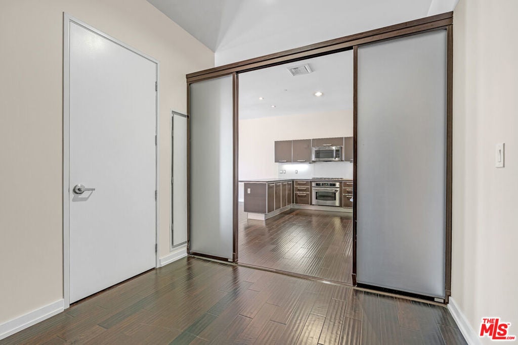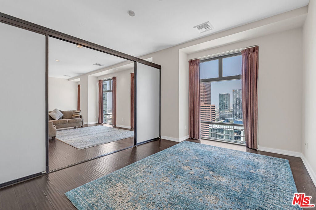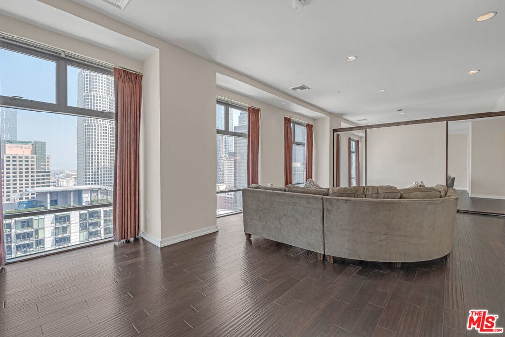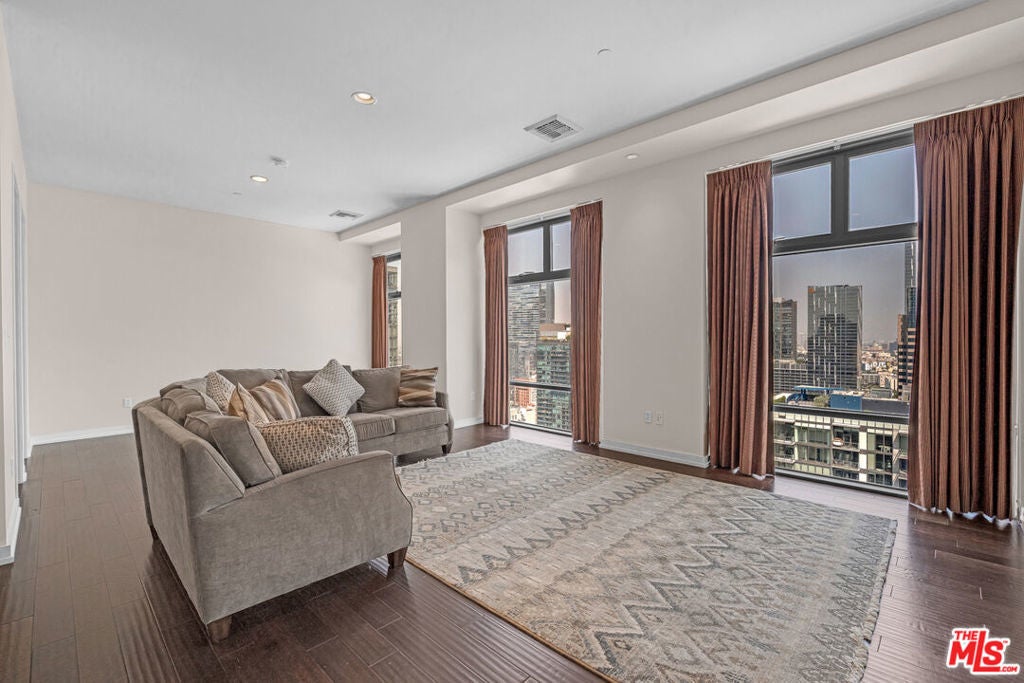 Breathtaking city light views of Downtown Los Angeles! Private entrance to an open floor plan delightful and relaxing DTLA loft, this home has 2 spacious bedrooms with the potential to be 2 bedrooms or office, 2 full baths with modernized details throughout. This charming, chic expansive open floor plan invites with an gorgeous European inspired gourmet kitchen with Italian cabinets, corian countertops and GE Monogram appliances. The great room welcomes with spectacular views featuring floor to ceiling windows while embracing a luxurious dining area to entertain and display an exquisite gallery. Hardwood floors embrace the loft allowing for comfort and relaxing ambiance while enjoying mesmerizing views. High ceilings expose the open feel to enjoy captivating evenings enjoying the amazing L.A. nightlife. Two individual parking spaces in a secure garage with 24-hour onsite security, new fitness center, movie theater and large entertainment room located off the main lobby. Located across the street from Whole Foods, CVS Pharmacy and Ralphs just two blocks away. Close shopping, restaurants and near 101, 10 and 110 freeways.