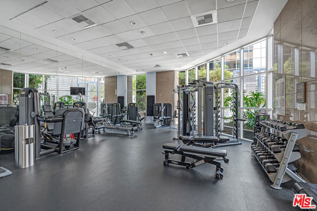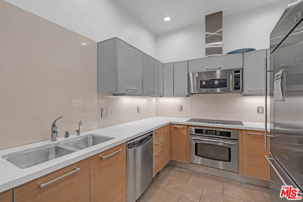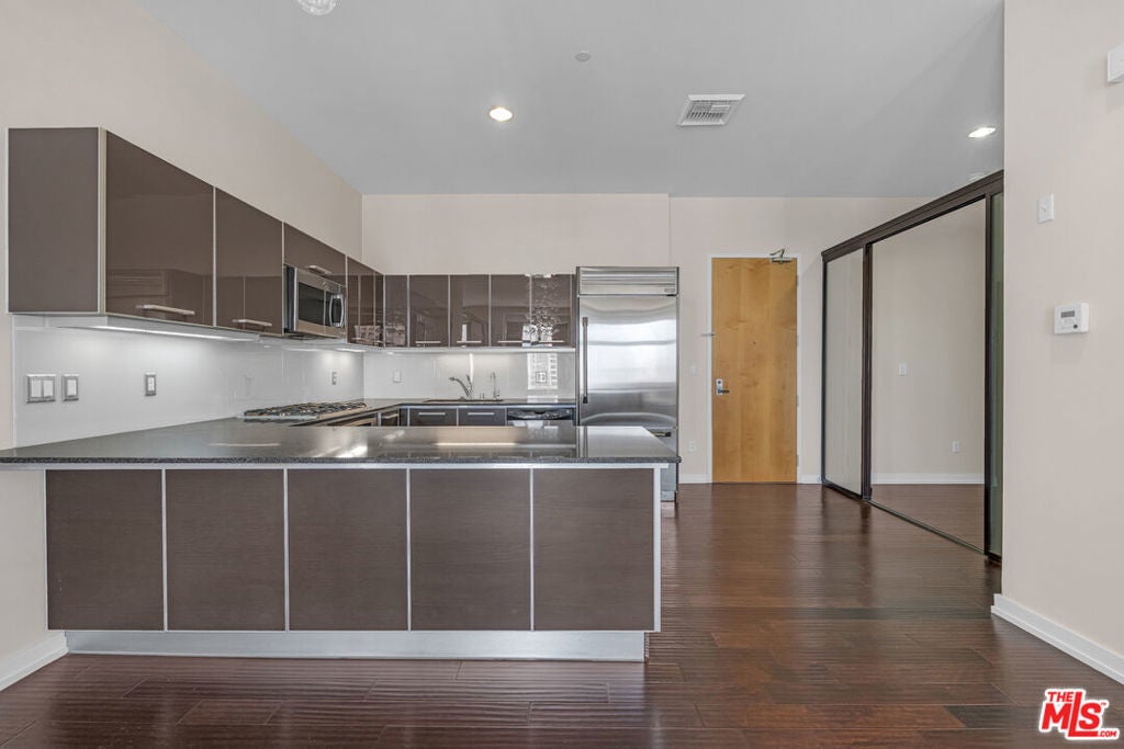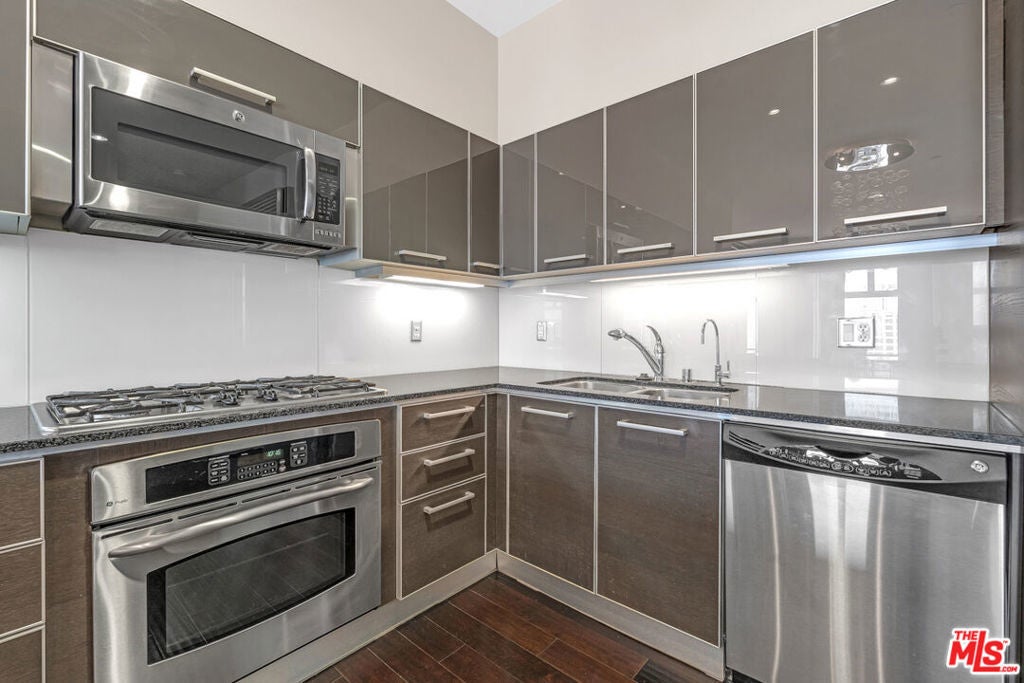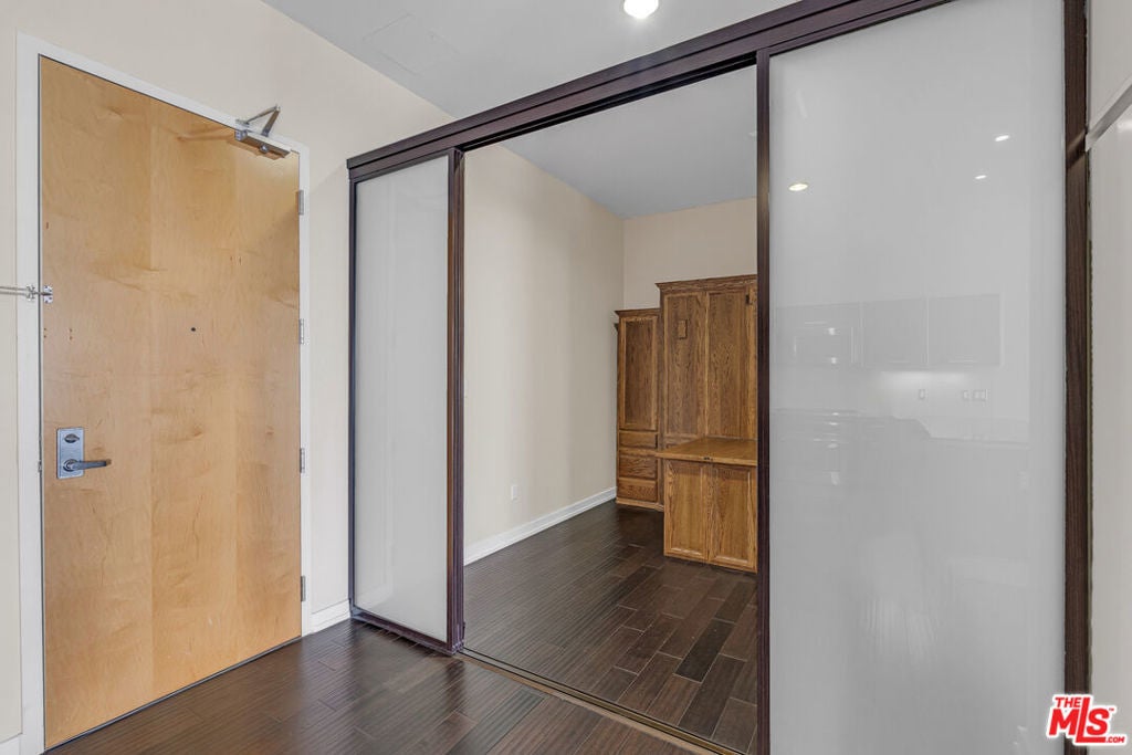 Breathtaking city light views of Downtown Los Angeles! Private entrance to an open floor plan delightful and relaxing DTLA loft, this home has 2 spacious bedrooms with the potential to be 2 bedrooms or office, 2 full baths with modernized details throughout. This charming, chic expansive open floor plan invites with an gorgeous European inspired gourmet kitchen with Italian cabinets, corian countertops and GE Monogram appliances. The great room welcomes with spectacular views featuring floor to ceiling windows while embracing a luxurious dining area to entertain and display an exquisite gallery. Hardwood floors embrace the loft allowing for comfort and relaxing ambiance while enjoying mesmerizing views. High ceilings expose the open feel to enjoy captivating evenings enjoying the amazing L.A. nightlife. Two individual parking spaces in a secure garage with 24-hour onsite security, new fitness center, movie theater and large entertainment room located off the main lobby. Located across the street from Whole Foods, CVS Pharmacy and Ralphs just two blocks away. Close shopping, restaurants and near 101, 10 and 110 freeways.