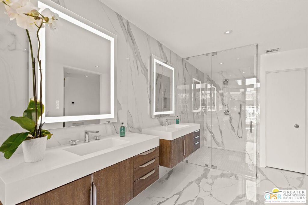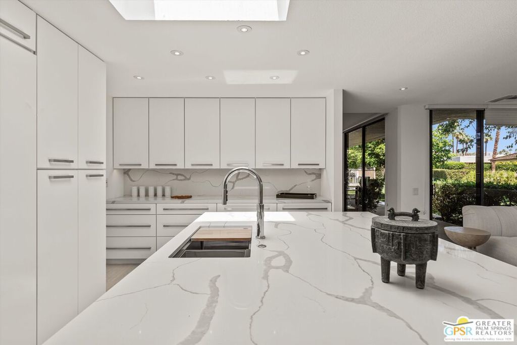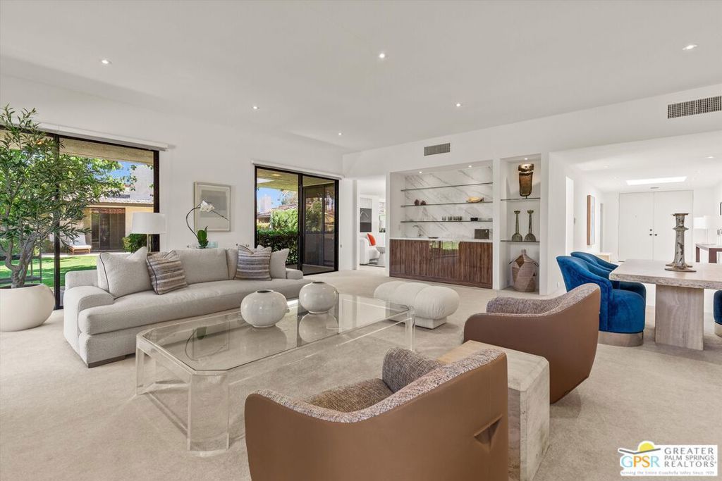 The Shaughnessy Sanctuary in the Springs Country Club with Immediate occupancy available! Sophisticated re-design meets carefree living: Experience a masterpiece of refinement in this meticulously remodeled 2,950-square-foot residence. Hidden within the tranquil inner sanctuary away from main streets and traffic, this highly sought-after floor plan has been reimagined for the modern epicurean. From the ten-foot ceilings and marble fireplace to the wall-to-wall designer upgrades, every inch of this home exudes comfort without the burden of high-maintenance upkeep. PLUS, save big-time on double pool/spa service, maintenance and heating fees with use of HOA's (rarely used) pool just around the hedge. The ultimate in sophisticated "lock-and-leave" living. The gourmet kitchen is a focal point of function and style, featuring a skylit breakfast island and a premier Fisher & Paykel appliance suite, solid quartz surfaces, including column refrigeration and dual ovens. The intelligent layout offers maximum privacy with three separated full ensuite bedrooms (all king-sized compatible), including DUAL primary suites and a versatile guest wing/media office positioned off the foyer. A Private Oasis Without the Overhead: Step into your Tuscan-inspired 20x25 private courtyard a low-maintenance haven perfect for sunbathing or a safe pet retreat. While the courtyard offers space for a future private spa, owners can maximize their lifestyle budget by utilizing the adjacent HOA-maintained pool and spa. Enjoy pristine waters and mountain vistas without the duplicate expenses of private pool heating, cleaning, or weekly maintenance services. Situated on a quiet cul-de-sac near the spectacular 48,000 SF Clubhouse, this home offers a "ready-now" lifestyle in one of the desert's most prestigious communities. The monthly HOA fee includes: 24/7 guard gated community, roof maintenance (flat section last done in 2021), exterior painting every 6 years, wi-fi internet, Two DVR boxes with HBO & Showtime, social events, 9 tennis courts, 12 pickleball, 2 bocce ball, golfing, swimming and fitness center with 46 community saltwater pools and spas, 5 Lap pools! Plus, use of the Clubhouse and Oasis Cafe.
