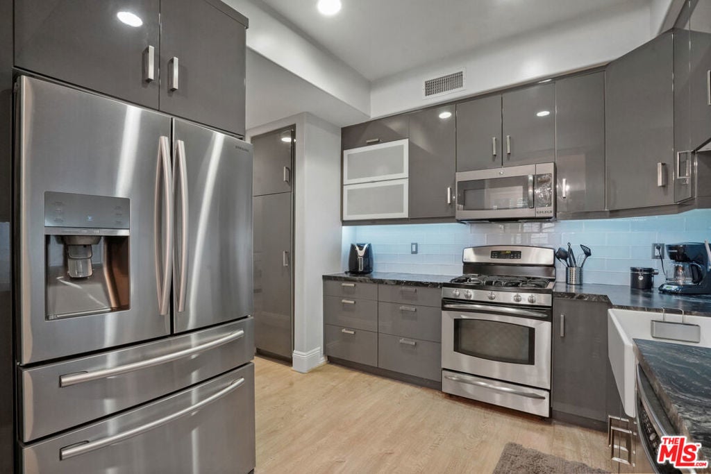 Offered either Furnished or Unfurnished. Welcome to this stunning, designer-made condo with high-end finishes, in the community of Pacific Palisades, nestled conveniently between the vibrant energy of Santa Monica and the laid-back charm of Malibu. This spacious 2 bed, 2.5 bath 'designer done' sanctuary, boasts an abundance of natural light and a breezy atmosphere, which epitomizes coastal living. Step inside a carefully curated space adorned with designer furniture, exquisite decor, Nest thermostat, an Alarm you can activate, captivating original artwork, and custom finishes that create an ambiance of refined elegance. The heart of this Apt. is a renovated, high-end kitchen, equipped with top-of-the-line appliances, custom cabinetry and a built-in pantry, making meal preparation a delightful experience. The en-suite primary bedroom is light and bright with a fireplace, multiple storage / custom closets, a small office off to one side, plus a built-in desk and a lovely, tiled patio with water feature. The primary bath is a luxurious retreat, featuring a rejuvenating shower, bidet, and a freestanding tub, perfect for unwinding after a long day. Washer Dryer closet in unit. Soft-touch drawers and custom cabinetry throughout ensure effortless organization and functionality. Outside, inviting patios adorned with Italianate tiles offer a serene setting for alfresco dining, morning coffee, or simply soaking in the SoCal sunshine. Whether you're a culinary enthusiast or simply enjoy the finer things in life, this condo is move-in ready, providing everything you need for a comfortable and convenient lifestyle. From crockery and cutlery to appliances, every detail has been meticulously considered to offer the utmost convenience and sophistication. Experience the epitome of coastal luxe living in this inviting custom space. Property is a short distance to world class hiking trails, beautiful beaches, fine dining, high-end shopping, with the bustling streets of Santa Monica and the pristine shores of Malibu just moments away. *The Building and Condo have both been extensively remediated and cleaned by a professional hygienist following the Palisades Fire. The condo has been painted, air filters changed, etc. Please note that the Caruso Village is scheduled to re-open in 2026. Please also note that the living room couch, coffee table and primary suite bed is no longer included in the furnishings. Be part of the re-birth of this incredibly special community. Available for immediate occupancy. Minimum 1 year lease term. No Pets Please. Excellent credit and a FICO score of 750+ required.