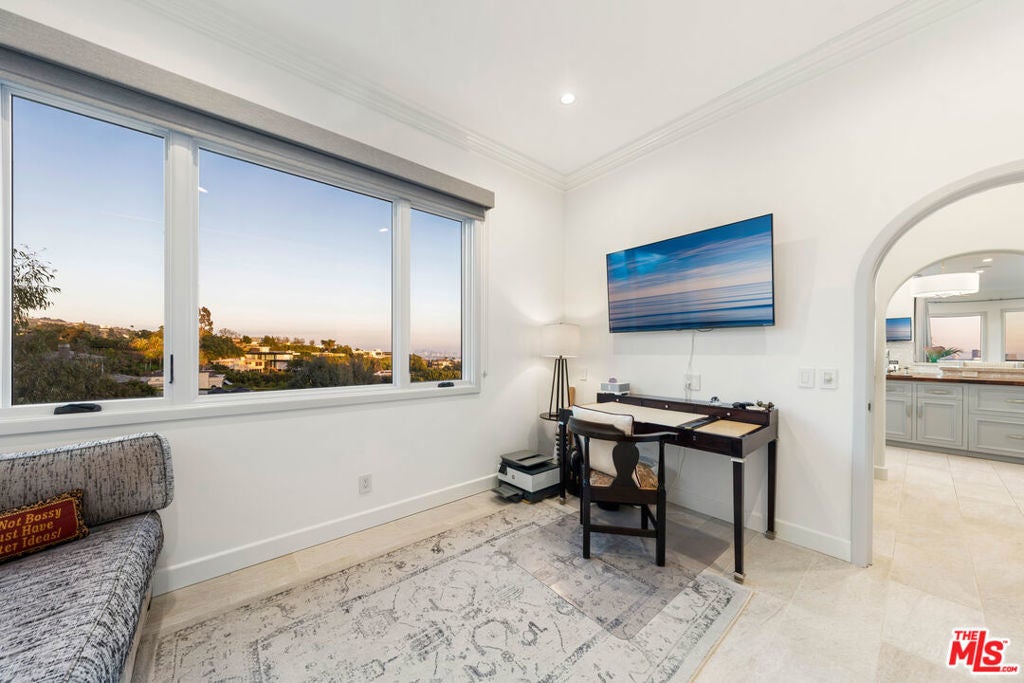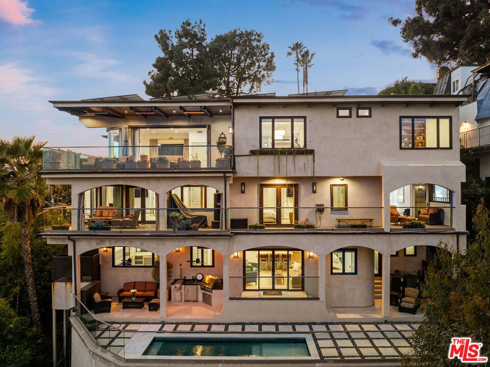 NEWLY REMODELED, THREE-STOREY, 4,800 SQ FT HOME WITH SPECTACULAR DOWNTOWN TO OCEAN VIEWS! A home of casual elegance. Designed for entertaining, but with quiet privacy on each level and views from every room. The residence includes ~ 2 Primary Bedroom Suites ~ 2 Additional Bedrooms ~ 2 Living Rooms ~ Exercise Room ~ 2 Offices ~ Sound Studio for Recording or Podcasting ~ Pool ~ Home Theater System ~ Multiple Heated Decks for Viewing the City ~ Fire Pit and Fountain Entertainment Area ~ Outdoor Barbecue and Entertainment Area ~ Elevator ~ Solar System ~ Garage Tesla Charger ~ AND ONLY 5 MINUTES NORTH OF SUNSET BLVD