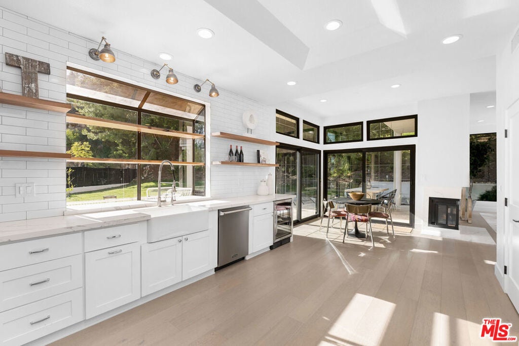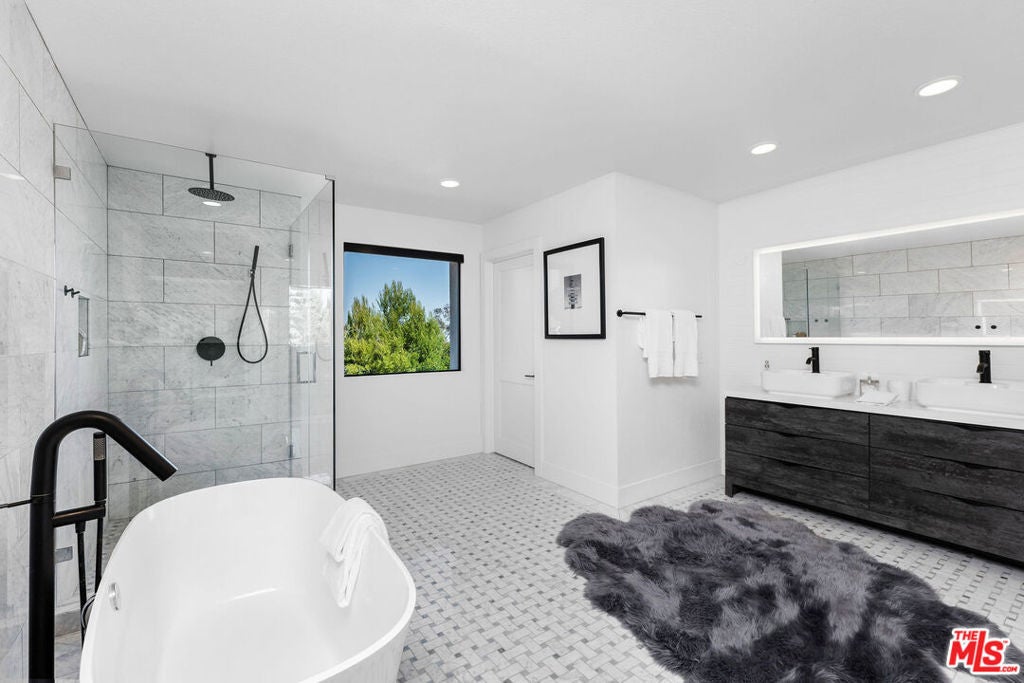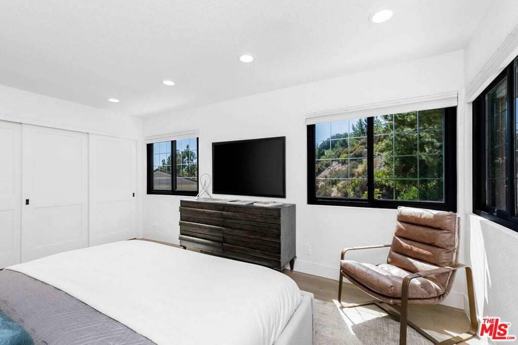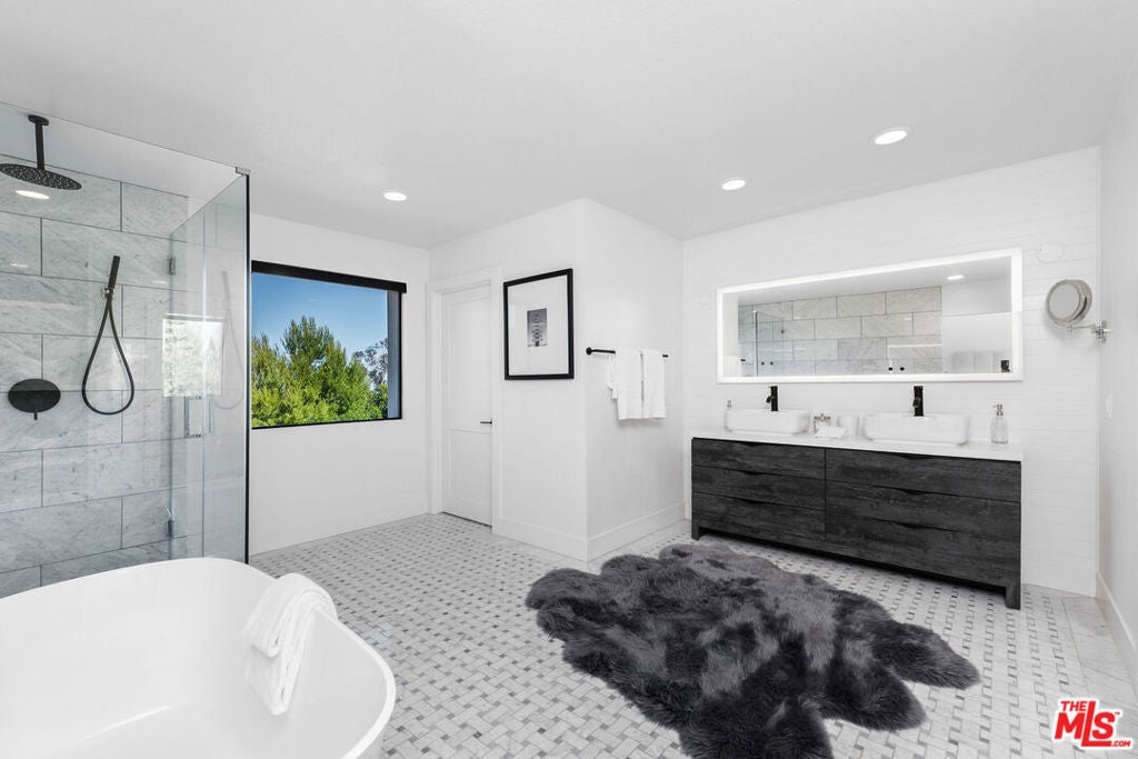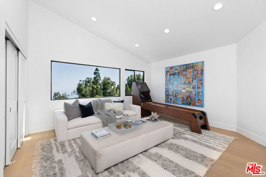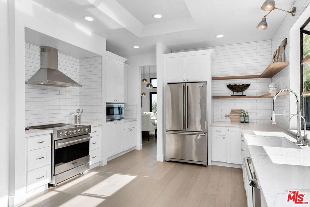Modern renovated contemporary 4-bedroom home with stunning views and luxurious finishes throughout. Enter through the jaw-dropping two-story foyer with grand staircase to a home that is perfect for both entertaining and relaxing after a long day in the city. This home features engineered french oak wide plank flooring throughout, a chef's kitchen with Viking appliances, and ample-sized bedrooms, three up and one down. The large master suite has two private balconies and an en-suite bathroom featuring an oversized walk-in closet, rain shower and a Victoria + Albert bathtub. Additional features include a 3-car garage at the end of the long private driveway, laundry room and a peaceful backyard oasis. Located in the picturesque Sea View Estates with multiple ways to get in and out of the neighborhood. In surprising proximity to the city for commuters, Malibu Pier and Country Mart, Calabasas, and the beach! Furniture in photos is not accurate.