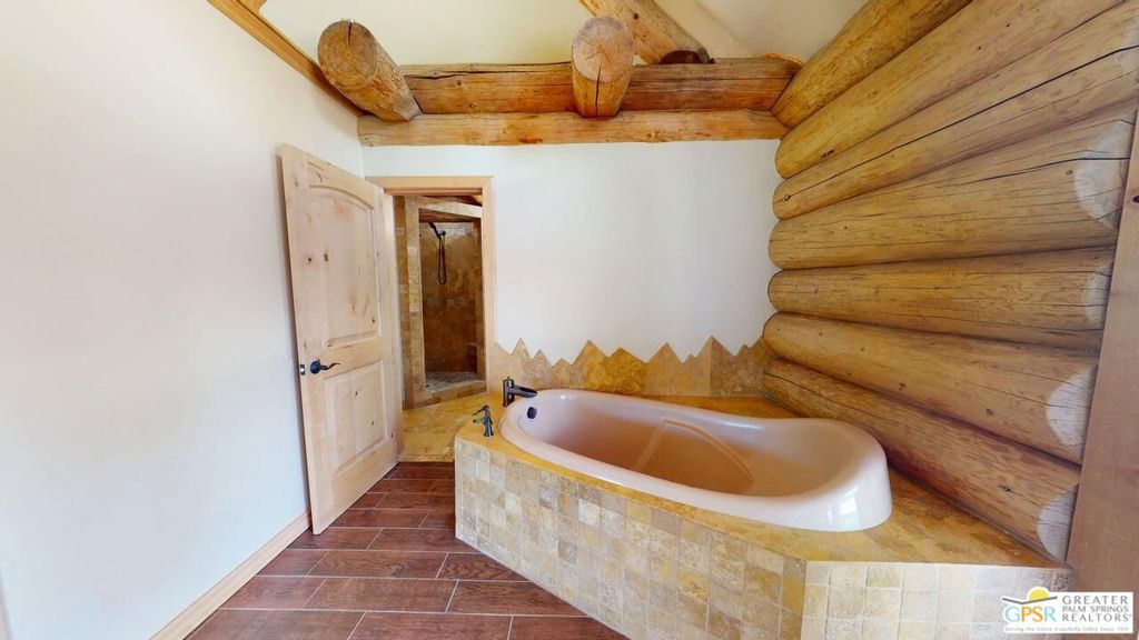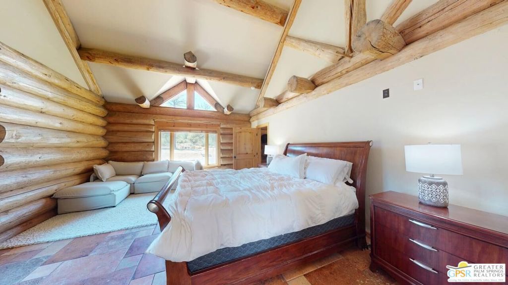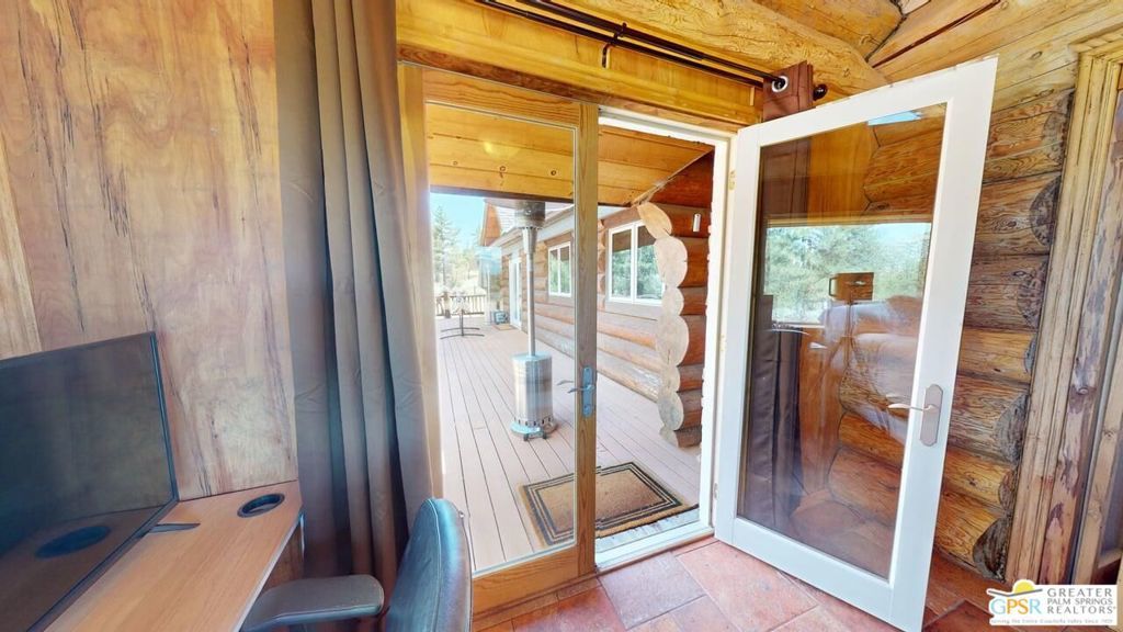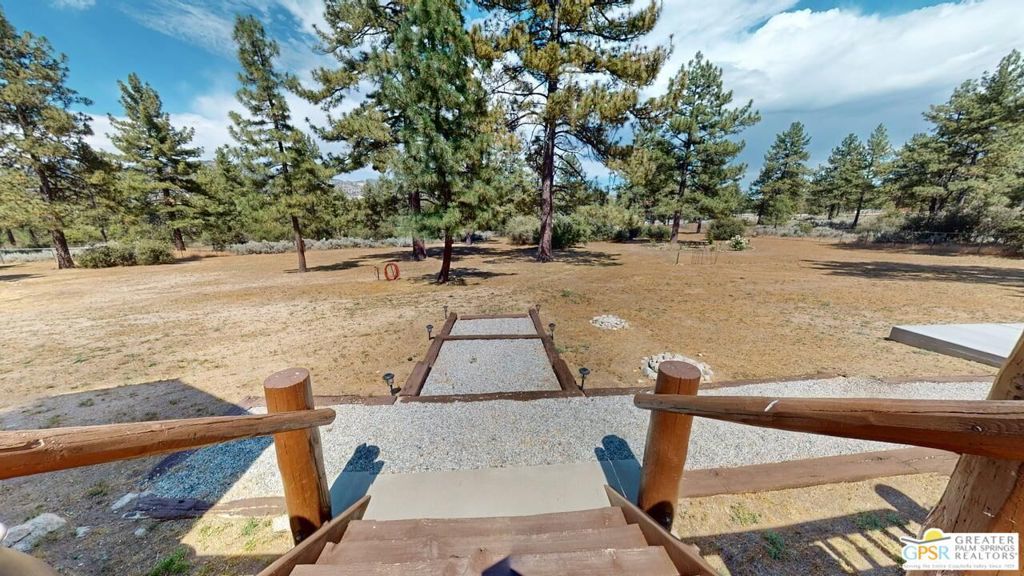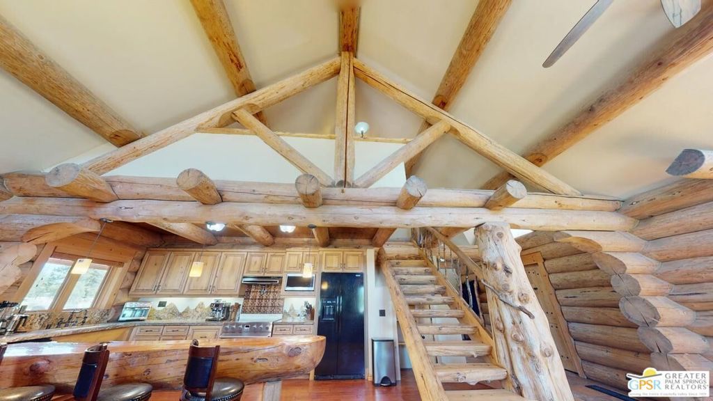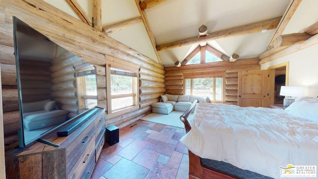 ALL OFFERS WILL BE CONSIDERED for this one-of-a-kind Log Home. It will be a special place for you to call home. Whether used for full-time residency or as a second home, the serenity of this open concept 4.5 acres, is sure to please the most discerning buyer. The Log Home includes a large entry foyer which sets the stage for all the interior spaces of this home. To the left of the entry is the large Great Room with wood burning fireplace, Dining area and Kitchen featuring a whimsical breakfast bar made entirely of a free form log - stunning! The two-story plus high ceilings and the use of the natural log walls lend themselves to the unique character of this special residence. The Great Room is light and bright just perfect for both intimate gatherings or large-scale parties. The views of the mountains in the distance are incredible. The kitchen features granite counters with custom designed backsplashes that depict the mountains - very clever - plus the new electric range/oven, pot-filler and vent hood, double door refrigerator, microwave oven, dishwasher and a semi-hidden pantry closet under the stairs to the loft complete the open kitchen. There is a free form log bar in the corner of the Great Room as well. To the right of the front door is access to the large Primary First Floor Suite with extremely high ceilings and a ceiling fan and access to the combination dressing room/spa room and then on to the primary ensuite bath. The stall shower has beautiful stone work. The double vanity, with granite counters, is great as well. The views from the bathroom and primary suite are exquisite, as they are from the other rooms in this well designed home. The dressing/spa room offers direct access to the north facing deck with room for outdoor entertaining and the outdoor spa, just a few steps away. At the other end of the home, the French doors off the Great Room lead to the first floor bedroom, which could also be used as an office or study. This room also offers access to the north facing deck. Besides the first floor bathroom - with the stackable laundry closet - up the stairs is the additional lofted bedroom - extremely light and bright featuring lovely views to the north. The property is well maintained with pastures for a myriad of uses and the electronically operated iron gate sets the stage for what awaits owners and visitors to this massive property. Located within a 45 minute drive to Palm Desert - El Paseo - shopping and dining and the property is about a 25 minute drive to Idyllwild/Pine Cove. The Paradise Valley Cafe, at the corner of Hwy 371 and Hwy 74 is a great dining location just a few miles to the east of the property. The community has it's own clubhouse known as the Garner Valley Property Owners Association also located on Devils Ladder Road. Easy to show. Welcome to your new Mountain Home!