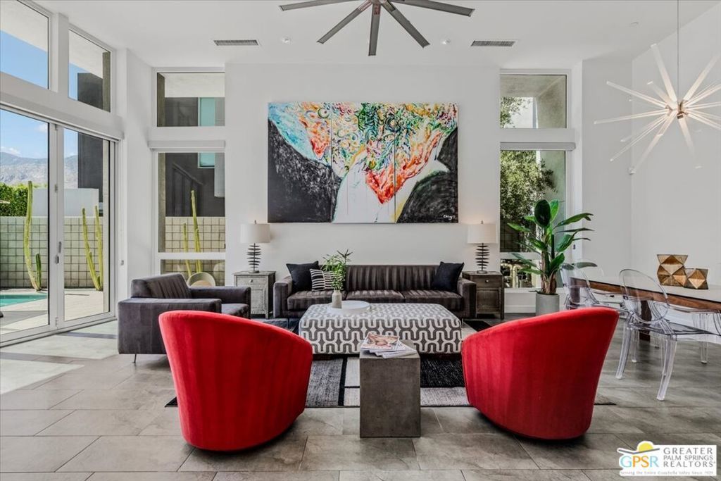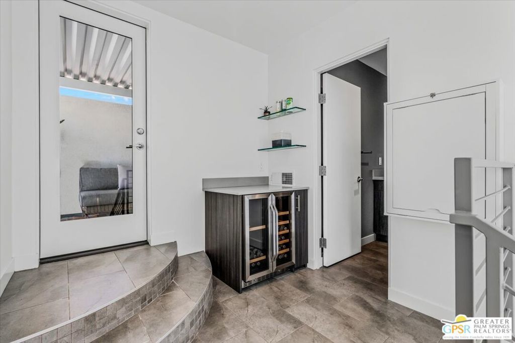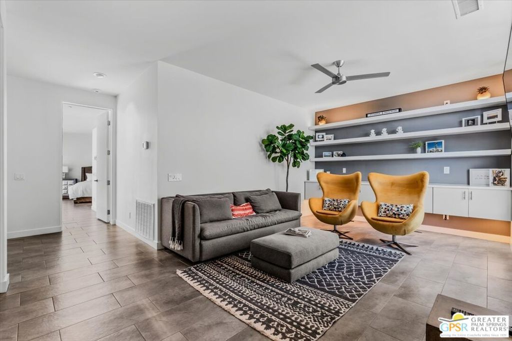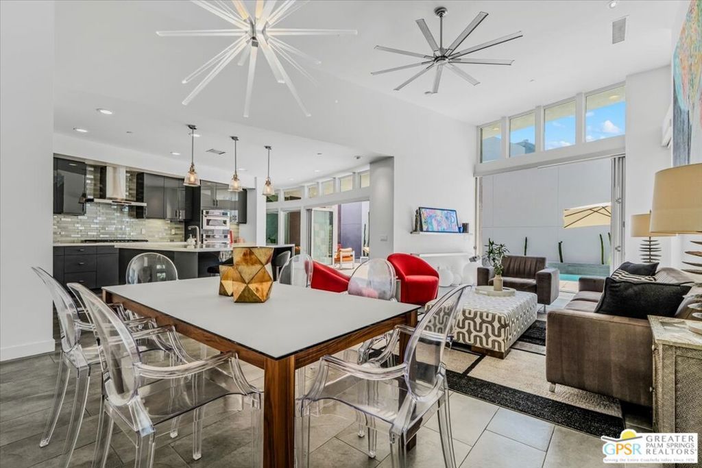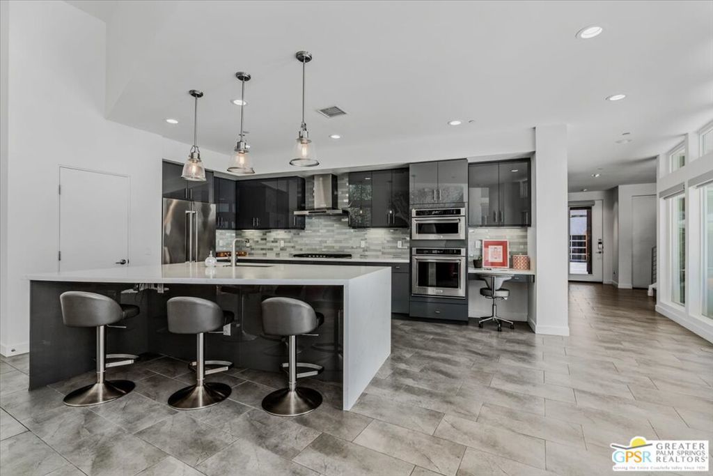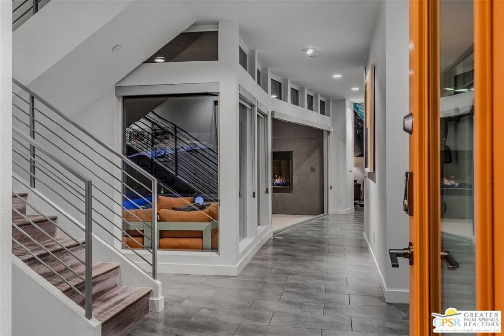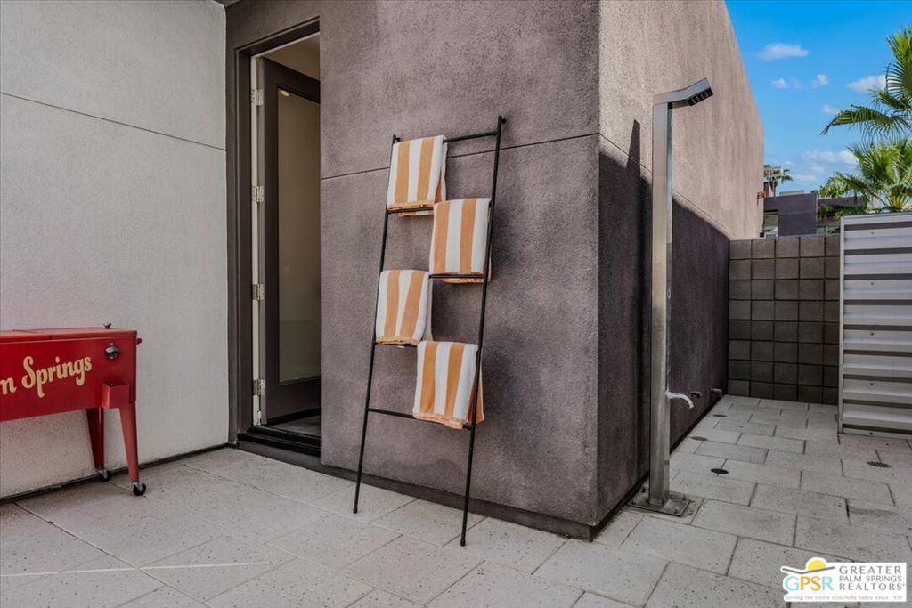 Experience the ultimate in luxury living at this stunning modern home in the highly sought-after SOL community in Palm Springs. With only 46 homes in this exclusive enclave, this spacious 2-bedroom + large loft, 4-bathroom residence blends sophistication with comfort, offering the best in desert living. The open-concept design features a chef's kitchen with high-end appliances, ideal for entertaining, and Fleetwood accordion sliders that seamlessly merge indoor and outdoor spaces, filling the home with abundant natural light. The downstairs bedroom is a private retreat, complete with an en-suite bath featuring a double shower, a large closet, and a serene private patio. Upstairs, the second bedroom boasts two walk-in closets and grand pocket sliders revealing breathtaking views. The versatile loft on the second floor can be transformed into a TV room, office, gym, or even a third bedroom. Take in panoramic views from the third-floor rooftop deck, perfect for hosting with its own bathroom and wine/beverage fridge. Outside, enjoy the private pool and spa, gas fireplace, and outdoor shower a perfect setting for relaxing or entertaining under the desert sky. Additional highlights include owned Hot Purple Energy solar panels (21 panels), a whole-house filtration system, a security system, and custom window treatments. The SOL community also offers a private dog park, electric car charging, and is just a short walk from downtown Palm Springs' vibrant shopping, entertaining, and dining scene. Don't miss the chance to own a piece of Palm Springs paradise!