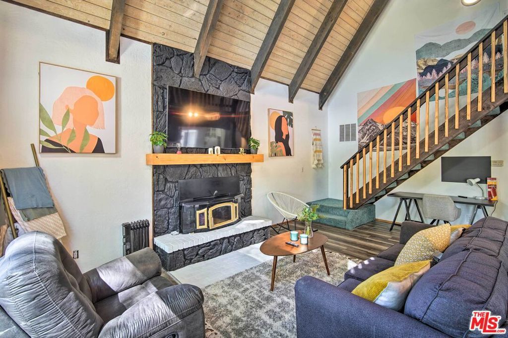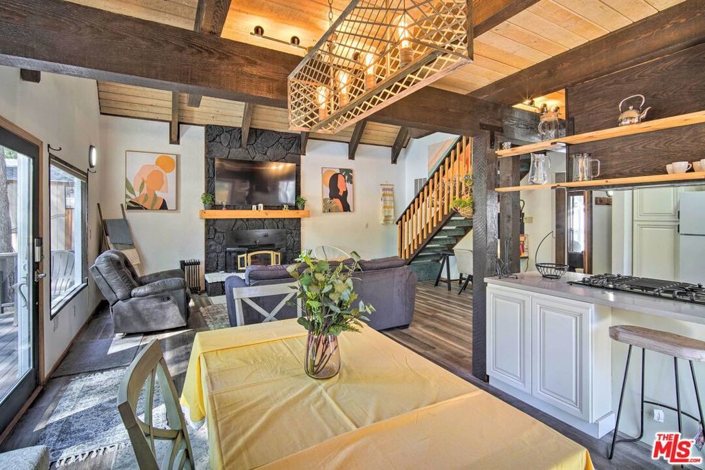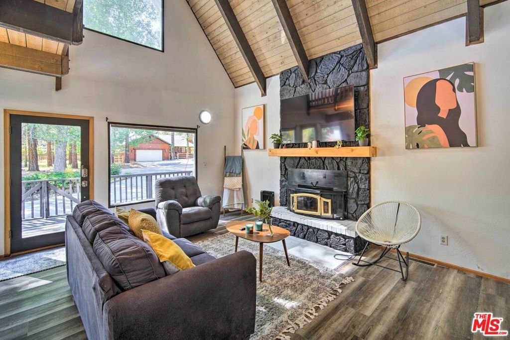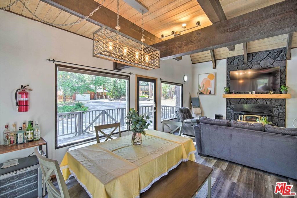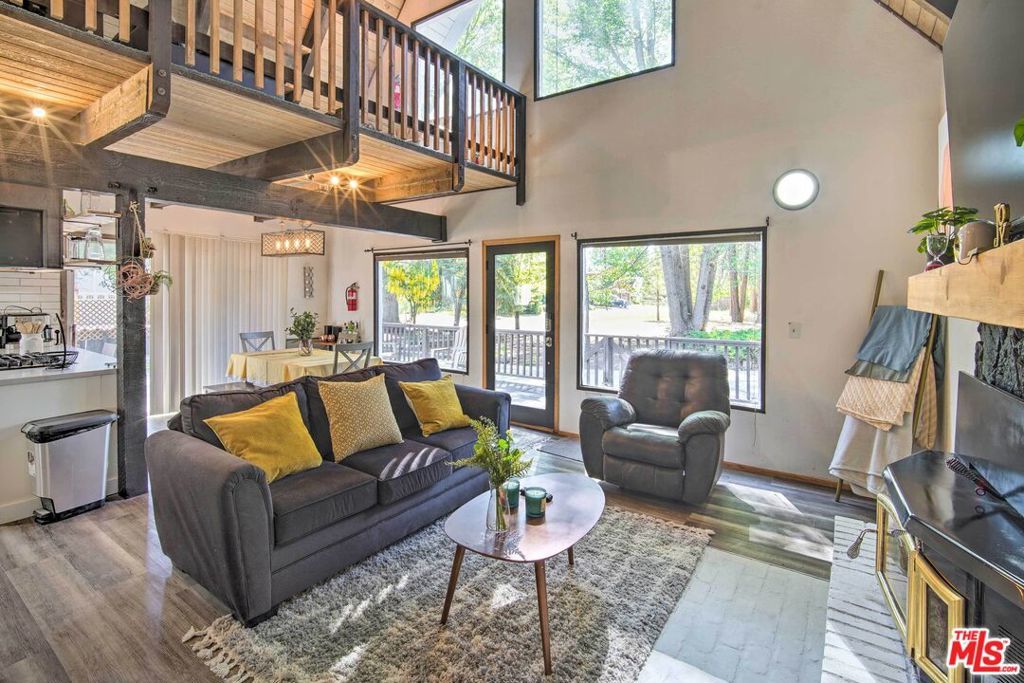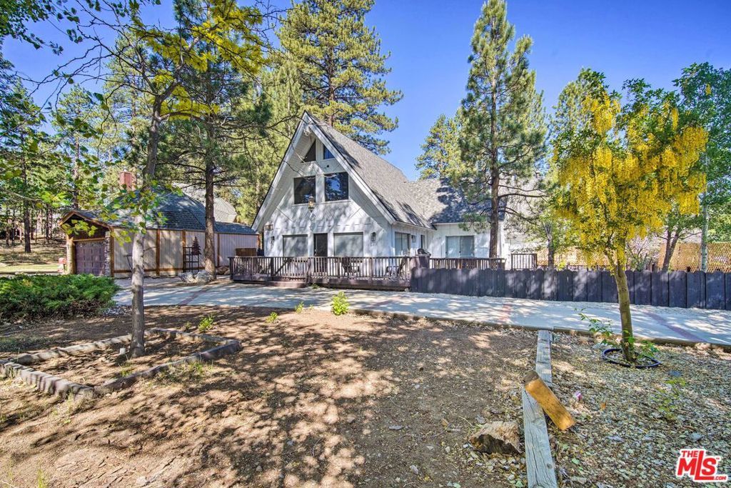 Welcome to your mountain getaway! This beautifully maintained A-Frame home offers the perfect blend of cozy charm and modern comfort. Nestled among the pines in scenic Big Bear, this 3-bedroom, 2-bathroom retreat spans 1,607 square feet and is the ideal home base for year-round adventure. Step inside to soaring vaulted ceilings, a dramatic wall of windows that flood the space with natural light, and an inviting open-concept layout. The living area features a wood-burning fireplace for those snowy winter nights, while the spacious kitchen opens seamlessly to the dining area perfect for entertaining or family gatherings. Enjoy two bedrooms on the main level plus a full bath, while the upstairs primary suite offers added privacy with its own bath and loft-style views of the living space below. Outside, the expansive deck is perfect for sipping morning coffee, grilling with friends, or stargazing after a day on the slopes or lake. Whether you're looking for a full-time residence, a weekend escape, or a turn-key short-term rental investment, this A-Frame delivers classic mountain vibes with all the amenities of home. With Big Bear Lake, ski resorts, hiking trails, and the Village just minutes away, this home checks all the boxes for lifestyle, comfort, and income potential. Please note this is a short sale