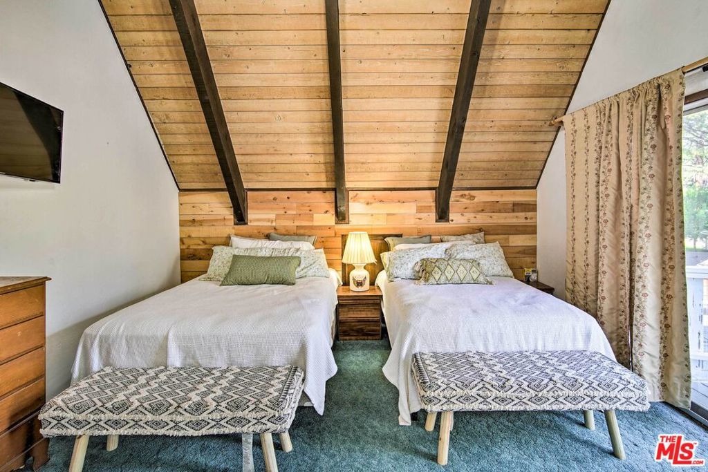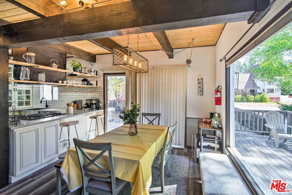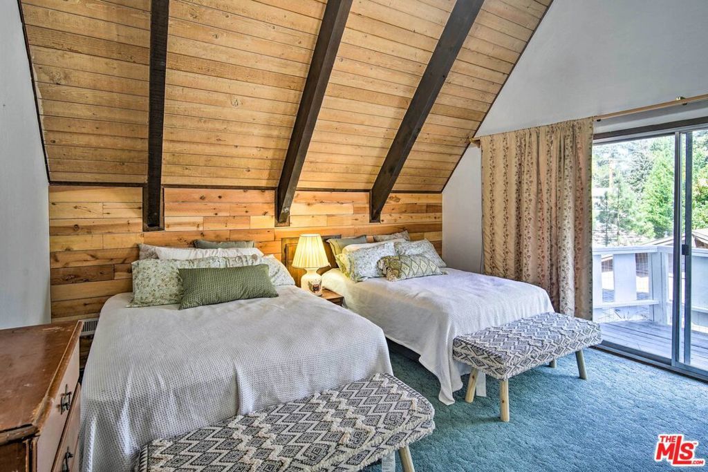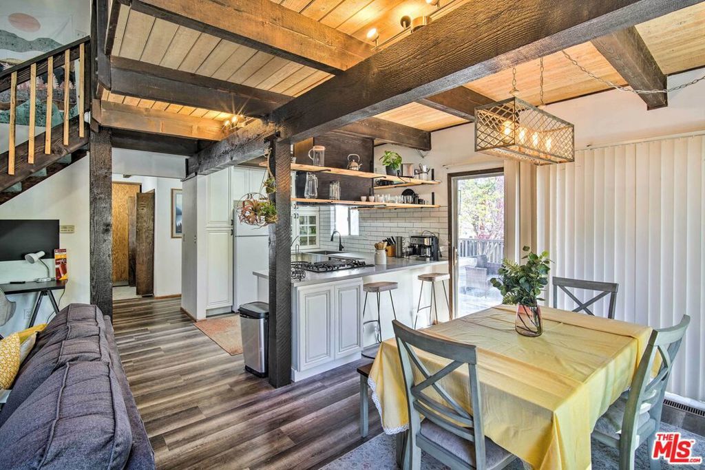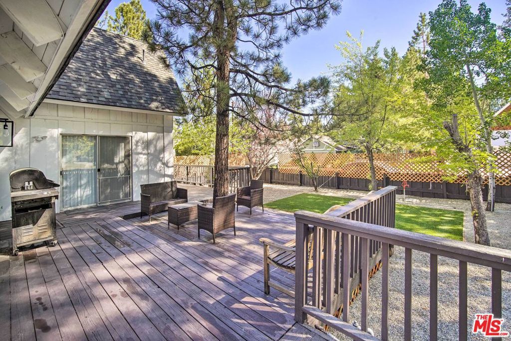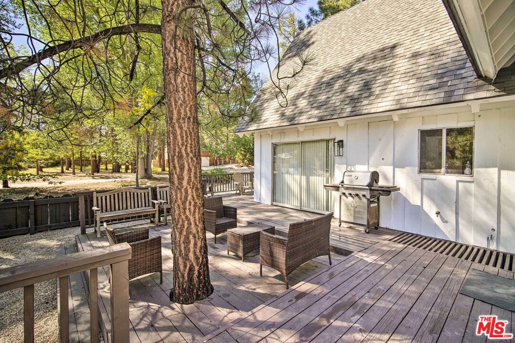 Welcome to your mountain getaway! This beautifully maintained A-Frame home offers the perfect blend of cozy charm and modern comfort. Nestled among the pines in scenic Big Bear, this 3-bedroom, 2-bathroom retreat spans 1,607 square feet and is the ideal home base for year-round adventure. Step inside to soaring vaulted ceilings, a dramatic wall of windows that flood the space with natural light, and an inviting open-concept layout. The living area features a wood-burning fireplace for those snowy winter nights, while the spacious kitchen opens seamlessly to the dining area perfect for entertaining or family gatherings. Enjoy two bedrooms on the main level plus a full bath, while the upstairs primary suite offers added privacy with its own bath and loft-style views of the living space below. Outside, the expansive deck is perfect for sipping morning coffee, grilling with friends, or stargazing after a day on the slopes or lake. Whether you're looking for a full-time residence, a weekend escape, or a turn-key short-term rental investment, this A-Frame delivers classic mountain vibes with all the amenities of home. With Big Bear Lake, ski resorts, hiking trails, and the Village just minutes away, this home checks all the boxes for lifestyle, comfort, and income potential. Please note this is a short sale
