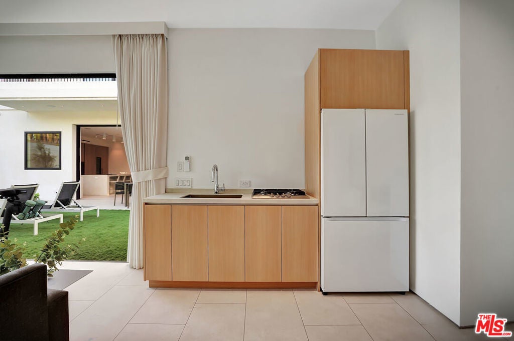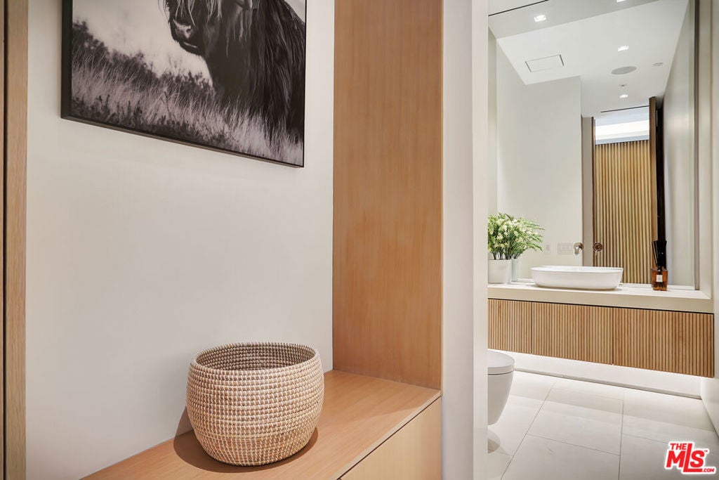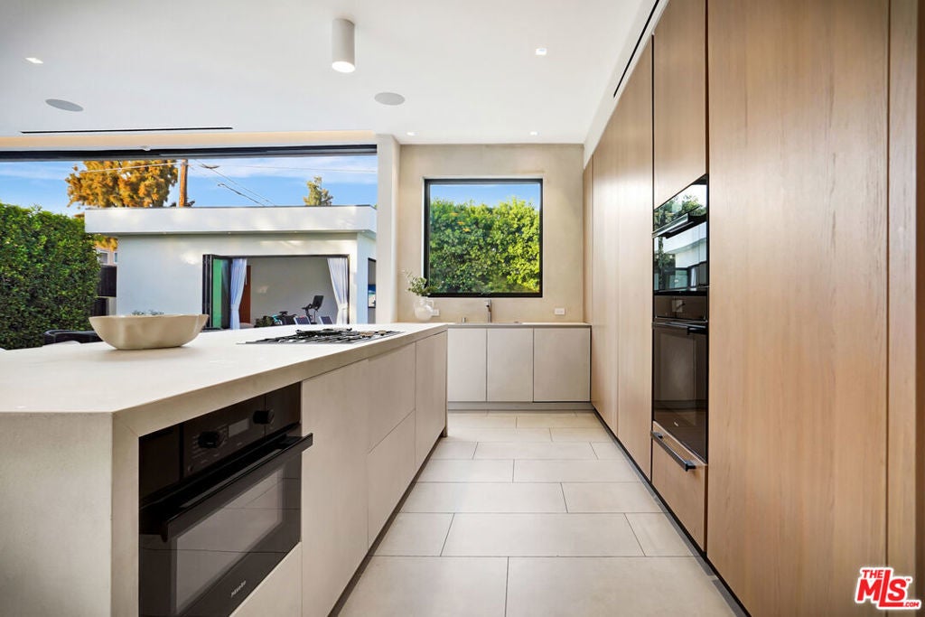 Modern Luxury in the Heart of LA, 5 Bedrooms | 5 Bathrooms + 1-Bedroom Guest House | Saltwater Pool + Spa | Designer Finishes | Smart Home Technology Welcome to this strikingly elegant, architecturally significant modern estate, a masterclass in design and sophistication. this residence is located just moments from shopping and dining .Meticulously crafted with the finest materials and innovative technology, this 5-bedroom, 5-bathroom residencecomplete with a fully detached 1-bedroom guest houseoffers a lifestyle of effortless elegance and comfort.Step inside and be enveloped by soaring 12-foot ceilings, custom real white oak slats and hidden-panel wood walls, soundproof Fleetwood windows, and a seamless blend of indoor-outdoor living. Floor-to-ceiling glass walls open the home to lush outdoor spaces, blurring the boundaries between inside and out.At the heart of the home lies a state-of-the-art chef's kitchen, featuring sleek Italian cabinetry, dual Miele dishwashers, and a striking porcelain island with integrated hidden phone chargersdesigned for both gourmet entertaining and everyday functionality.The open-concept living and dining spaces are adorned with designer furnishings by B&B Italia, curated dcor, and a Lutron lighting system that allows for ambiance at the touch of a button. A Bose surround sound system flows throughout every room, including the guest house, offering a premium audio experience inside and out.Retreat to the luxurious primary suite, complete with a private terrace, and a spa-like en-suite bathroom showcasing Italian natural limestone, a steam shower, soaking tub, his-and-hers vanities, and a separate water closet. A concealed, full-wall wardrobe features integrated lighting.Each of the additional bedrooms and bathrooms are thoughtfully designed with the same attention to detail featuring rich wood paneling, Graff fixtures, and imported stonework that elevate everyday living.The resort-style backyard is a sanctuary of tranquility and style, boasting a saltwater pool and spa, a fully integrated entertainment system, and multiple outdoor lounging and dining areas ideal for hosting or relaxing under the stars.The detached guest house is equally impressive, offering a private bedroom, full bath, and a chic kitchenette, perfect for guests or extended stays.