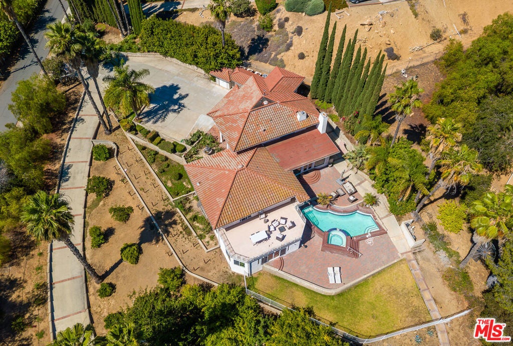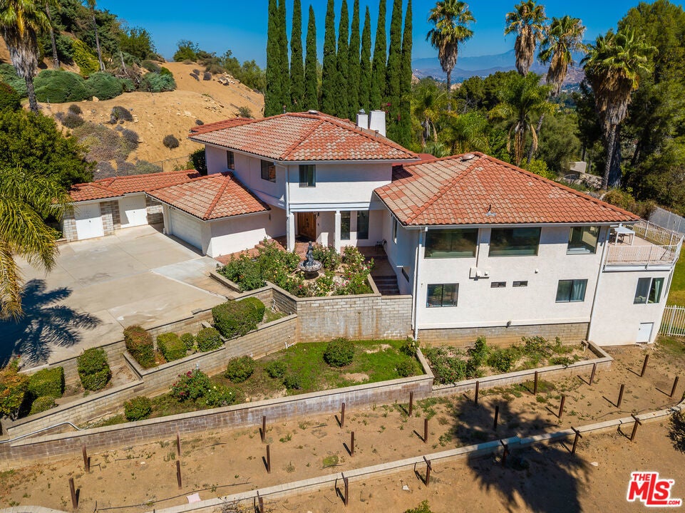 **Impressive Grand Estate with Rental Income Opportunity** Discover this impressive grand estate, ideally located on a hilltop, providing a peaceful sanctuary with panoramic views of the city and mountains. This property is an exceptional investment opportunity, currently occupied by a reliable tenant. Buyers can choose to retain this source of income or transform this stunning residence into their personal oasis.This beautiful home features 4 spacious bedrooms, 5 bathrooms, and a dedicated office, all meticulously maintained and designed for comfortable living. The main level is an entertainer's dream, featuring a custom bar, a welcoming fireplace, and expansive windows that frame captivating views of the pool deck, mountains, and flourishing palm trees. The warm ambiance is enhanced by elegant wood-beamed ceilings that add character to the space.The primary suite serves as a private retreat with large sliding glass doors that open to a luxurious balcony and sun deck. It also includes a generous walk-in closet and a beautifully appointed en-suite bathroom. The kitchen showcases superior craftsmanship and flows seamlessly to a large deck, perfect for enjoying stunning vistas of the surrounding landscape and pool. Nestled on over an acre of landscaped grounds, the property boasts a delightful fruit garden featuring orange, lemon, pomegranate, and grapefruit trees, perfect for those who appreciate fresh produce. The extensive driveway offers ample parking and easy access, complemented by additional outdoor storage solutions for convenience. Designed for versatility, this estate includes a separate bonus room that can function as a gym, extra bedroom, playroom, or family room ideal for multi-generational living and flexible use. This grand residence provides an unparalleled blend of natural beauty and functional living space, making it a perfect choice for both savvy investors and families seeking a remarkable home.