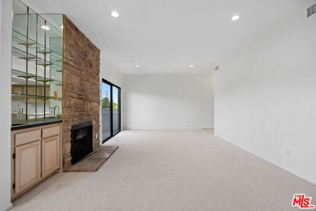 Welcome to your dream penthouse in Sherman Oaks! This bright and airy 2-bedroom, 2-bathroom top-floor condominium shares ONE WALL and offers a perfect blend of comfort, space, and convenience all at an incredible value. Step inside to soaring high ceilings, recessed lighting, and a floor-to-ceiling stone fireplace that brings warmth and character to the spacious living room. Enjoy a drink from the wet bar or unwind on your private balcony. The kitchen is perfect for both everyday living and entertaining, featuring a breakfast bar, pantry, and generous cabinet space. The primary suite boasts a large walk-in closet and ample room to create your personal sanctuary. Spacious in-unit laundry room with washer & dryer, central A/C & heat. Secure building with 24-hour surveillance cameras. Fresh paint, new carpet, and tile floors in entry and hallway. Enjoy the beautiful pool, jacuzzi, gym, and 2 tandem parking spots in a covered garage, plus ample guest parking. HOA includes hot & cold water and earthquake insurance for added peace of mind. All of this is located just moments from Westfield Fashion Square, Hazeltine Park, shops, cafes, Chandler Elementary School, and easy freeway access. Don't miss this opportunity to own a penthouse unit in one of the Valley's most desirable neighborhoods. Schedule your private tour today!