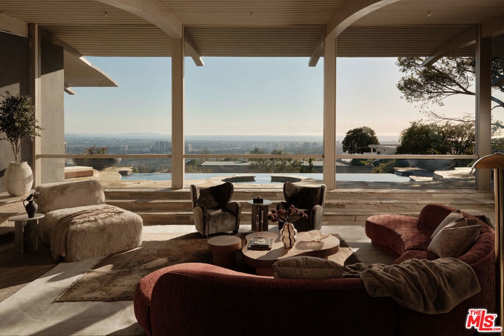 Perched high within the legendary hills of Trousdale Estates, where architecture becomes art and the horizon feels endless, a residence conceived by visionary architect Harry Gesner takes form. Bold, sculptural, and unmistakable, 624 Cole Place is a master expression of mid-century modern design, positioned to capture panoramic jetliner views from Beverly Hills to Catalina Island and across the valley. From arrival, the home emerges from the hillside with quiet authority. Signature rooflines soar overhead, and walls of glass dissolve into the horizon as natural light moves freely from dawn to dusk. Gesner believed architecture should live in conversation with nature, and here the skyline becomes a permanent part of the interior experience. Each space unfolds with intention, offering its own perspective and relationship to the view. From intimate corners to grand entertaining spaces, the city reveals itself in layers, constantly shifting, always spectacular. Daily living becomes cinematic. Hosting feels effortless. Even silence feels elevated. Outside, expansive terraces float above the landscape, while the pool provides a front-row seat to Los Angeles by day and a glittering sea of lights by night. It is Southern California indoor-outdoor living at its most refined. Offered for the first time in over two decades, the residence reflects a level of architecture that tends to be held, not traded.