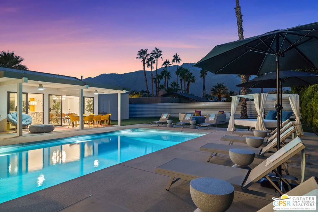 Fully renovated, turnkey vacation home in prime Palm Springs location! Welcome to 888 E El Conquistador, your fully furnished desert retreat just minutes from the heart of downtown Palm Springs! This stunning 3-bedroom, 2-bath home has been completely updated and is being sold fully equipped. Everything you see stays, making it a true turnkey opportunity for investors or second-home seekers. Already backed by a strong property management team that will help you navigate the rental process for seamless operation, offering a hassle-free investment opportunity. Currently a top-performing short-term vacation rental, this completely remodeled property boasts a brand new pool, spa, fire pit, HVAC system, roof, reverse osmosis water filtration system, and dual-paned windows and doors, offering peace of mind and modern comfort. Inside, the open-concept layout flows effortlessly from a stylish kitchen with waterfall terrazzo countertops, to spacious living areas designed for entertaining or relaxing in style in front of the new, gas fireplace. Step outside to your private backyard paradise featuring a sparkling pool and spa, ample seating around the fire pit or outdoor living room, and breathtaking mountain views, ideal for soaking up the sun or enjoying evenings under the stars. This move-in-ready gem with fully owned solar (including battery storage with two Tesla Power walls, and a Telsa EV charger as well!) checks all the boxes. Ideal for both homeowners and investors. Act quickly to take advantage of peak rental season demand. Don't miss this opportunity!