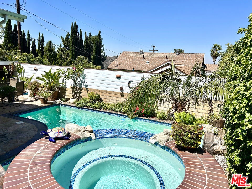 Tucked away in the peaceful hills of Tujunga, this beautifully updated 3-bedroom, 2-bathroom home: a rare opportunity to own a private slice of Southern California paradise. From the moment you arrive, you're greeted by a sense of calm and seclusion, enhanced by the quiet location, mature landscaping, and mountain views that frame the property like a painting. Whether you're a growing family, a remote-working professional, or a couple seeking a place to both entertain and recharge, this home offers a balance of warmth, functionality, and lifestyle. You will immediately feel at home in the inviting living room, where a classic fireplace and original floors blend seamlessly with the rest of the home. Natural light pours in through oversized windows, creating a cozy-yet-open atmosphere that flows effortlessly into the heart of the home. The kitchen is perfect for catering to groups of all sizes, and has ample storage, perfect for everyday cooking or hosting memorable gatherings. All three bedrooms are thoughtfully positioned to provide privacy and comfort. The primary suite is a true sanctuary, featuring vaulted ceilings, a spacious en-suite bathroom with direct access to the stunning backyard retreat. Imagine stepping out of your bedroom each morning for a peaceful swim or soaking in the spa under the stars at night. This is California living at its best. Downstairs, a versatile basement area provides over 400 square feet of flexible space, ideal for a home office, guest suite, gym, media room, or creative studio. There's also a third full bathroom and laundry area, making this lower level a completely functional extension of the main living space.But the crown jewel of this property is the resort-style backyard. Designed for both relaxation and celebration, it features a sparkling heated pool and spa with waterfall, multiple seating and lounge areas, and beautiful hardscaping that invites alfresco dining and outdoor fun year-round. Whether you're hosting weekend BBQs, pool parties, or simply enjoying a quiet sunset with a glass of wine, this space delivers the lifestyle most people only dream about. Additional features include a two-car garage with high ceilings (can be converted to a large ADU), gated driveway parking, updated central HVAC, and a fully fenced yard offering privacy and security.