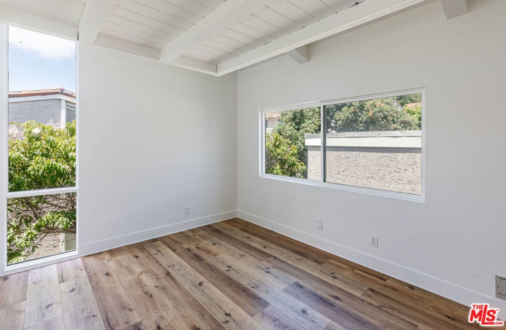This fully renovated 2-bedroom, 2.5-bathroom townhome in the gated Malibu Villas blends modern design with coastal charm. Bright, open interiors feature wide-plank wood flooring, vaulted ceilings, and a cozy fireplace, flowing seamlessly to multiple outdoor spaces surrounded by lush greenery ocean views. The recently updated chef's kitchen boasts quartz countertops, custom cabinetry, and stainless-steel appliances. Upstairs, the primary suite offers vaulted ceilings, generous closet space, and private balcony access, while secondary bedrooms provide versatility for guests or a home office. Malibu Villas residents enjoy a pool, spa, clubhouse, and gated entry, all just minutes from Paradise Cove, Zuma Beach, and Malibu Country Mart.