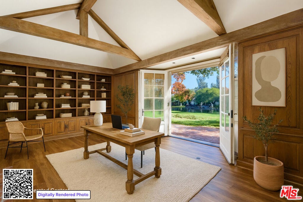 Tucked within the guarded gates of Montecito's prestigious Birnam Wood enclave, this timeless residence enjoys one of the community's most desirable locationsjust moments from the Birnam Wood Golf Club and surrounded by natural beauty. A separate one-bedroom, one-bath guest cottage with its own entrance offers private accommodations for visitors or extended family, complementing the main residence with comfort and versatility. The home's grounds evoke the charm of an English garden, with mature oaks, blooming roses, fruit trees, trimmed hedges, and other flora. Multiple seating areas create a serene, park-like ambiance, while sweeping views of the lake and Santa Ynez Mountains provide a dramatic backdrop. Classic details such as beautiful crown molding and luxuriously stained wood paneling create an air of Old-World sophistication within the residence. The living room features a cathedral ceiling, custom built-ins, and rich wood tones, while an adjoining enclosed porch bathes in sunlight and overlooks the golf course and its lake. A companion formal sitting room offers the same captivating views. The dramatic dining room invites formal repasts with its soaring ceiling, exquisite fabric-lined walls, a statement chandelier, and floor-to-ceiling windows. French doors open to a garden-view terrace. Nearby, the kitchen blends charisma and functionality with hand-stenciled cabinetry and a combination prep-and-serve island perfect for casual meals and relaxed conversation with the chef. A whimsical chandelier and custom range hood mural add a touch of personality, while large windows invite natural light and garden views. A large office provides a quiet retreat with its fireplace, built-in bookshelves, and cathedral ceilingan ideal space for working from home or enjoying privacy. The grand primary suite, a peaceful sanctuary, hosts French doors opening to the gardens, an exceptionally spacious closet, and a lavish bathroom with a large soaking tub swathed in Italian marble. The suite's built-in desk adds function and flexibility, creating a quiet space for reading or reflection. A spacious three-car garage adds convenience. This distinctive property pairs gracious indoor living with extraordinary outdoor spaces in one of Montecito's most exclusive enclaves, all while convenient to the singular amenities this special community offers.