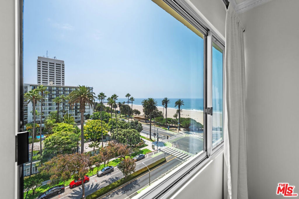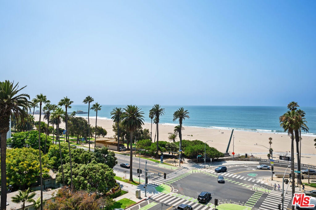 Prime location. Magnificent ocean and city view from every room. This single level unit in a prestigious full service building features: Open floor plan, hardwood floor, redone primary bathroom, kitchen with granite counter top, large balcony, 24/7 concierge/front desk, pool, guest parking, onsite manager. Walking distance to the beach, 3rd St Promenade shops, restaurants, theaters, Trendy Montana Ave, easy freeway access.