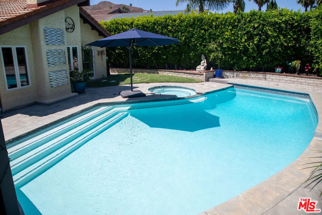 Prime Granada Hills Beauty with Pool & Entertainer's Backyard! This stunning 4-bedroom, 2.5-bath, home offers stylish living in one of Granada Hills' most desirable neighborhoods. Step inside to a bright, open floor plan with a spacious formal living room and cozy fireplace, family room, and a formal dining area that flows seamlessly to the backyard. The primary suite features a walk-in closet, double-sink vanity, and a serene retreat feel. The updated kitchen is a chef's delight with a center island, white Caesarstone countertops, and travertine backsplash. In the back is a private entertainer's paradise covered patio, updated swimming pool and patio, views to Studio City and Downtown Los Angeles, BBQ area, and a grassy play area for year-round gatherings. Local schools are award winning California Distinguished Schools and considered some of the very best in Los Angeles county. Close to parks, shopping, and dining, this move-in ready gem blends comfort, style, and convenience.