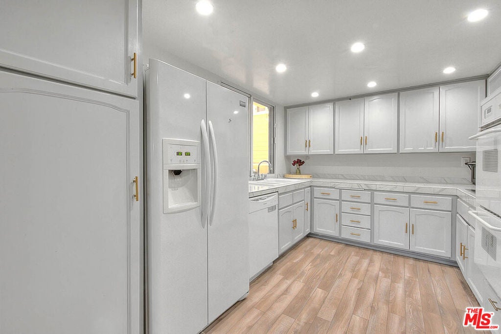Welcome to this stunning townhome in the highly sought-after, gated community of Briarwood in Inglewood.This beautiful home features two large bedrooms and three bathrooms, all with gorgeous countertops and flooring. The cozy, yet spacious, living and dining area boasts beautiful floors and an open, bright feel. The stunning kitchen is also open and features stylish cabinets, beautiful quartz countertops, and modern flooring. All bedrooms are conveniently located upstairs.Step out onto your private patio to enjoy views of the surrounding trees and SoFi Stadium. This lovely, move-in ready townhome is just a short walk from all the excitement Inglewood has to offer, including SoFi Stadium, the Kia Forum, and the new Intuit Dome. It is centrally located with easy access to beaches, LAX, and major highways. The community also offers a refreshing swimming pool for residents.This incredible property won't last long!