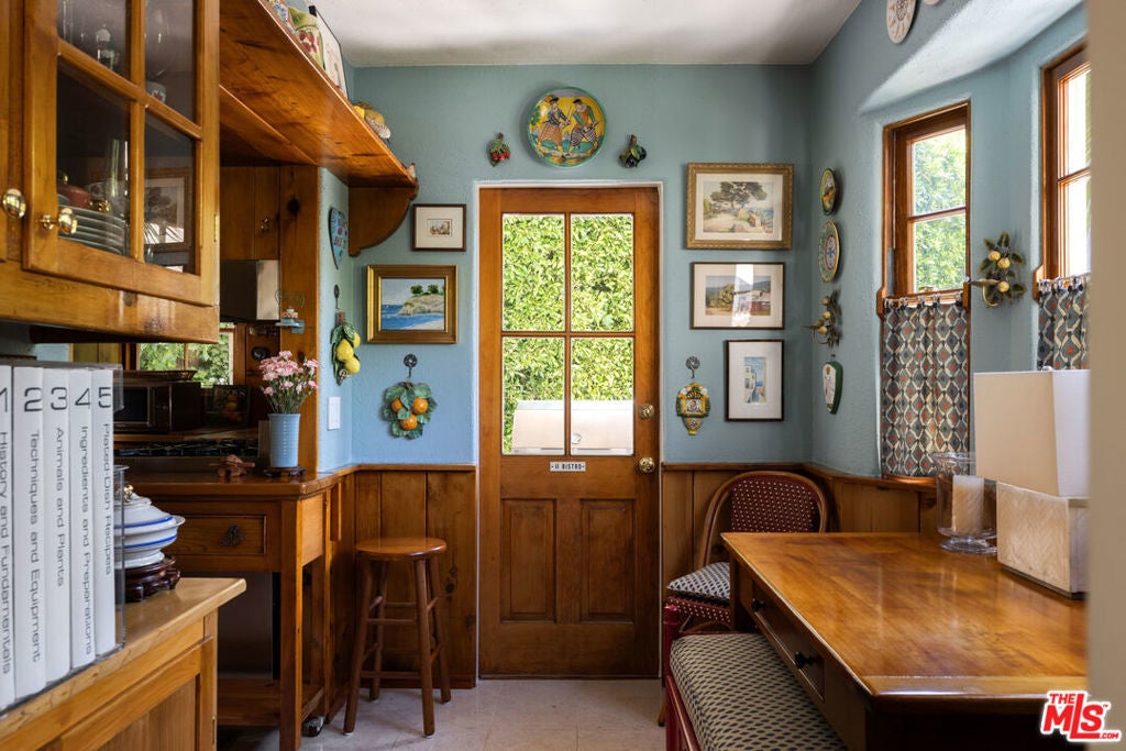 Tucked behind gates on a quiet cul-de-sac, this enchanting English-style home, designed in the spirit of famed architect C.F.A. Voysey, is a rare hidden gem just moments from Sunset Boulevard. The three-bedroom, 2.5-bath residence blends 1930s charm with thoughtful modern updates. Leaded glass windows flood the living spaces with warm light, while the formal dining room and character-rich chef's kitchen showcase exquisite woodwork and timeless craftsmanship. Upstairs, the romantic primary suite features a fireplace, spa-like bath, and a bedroom converted into an expansive walk-in closet. A second ensuite bedroom with steam shower offers comfort and privacy for guests. Surrounded by lush gardens designed by Getty Villa landscape architect Deborah Richie-Bray and featured on HGTV's Landscaper's Challenge, the home feels like a private storybook retreat. Fully re-plumbed, updated and thoughtfully reimagined to retain it's rich in period detail, this is a true Old Hollywood treasure in one of L.A.'s most iconic neighborhoods.
