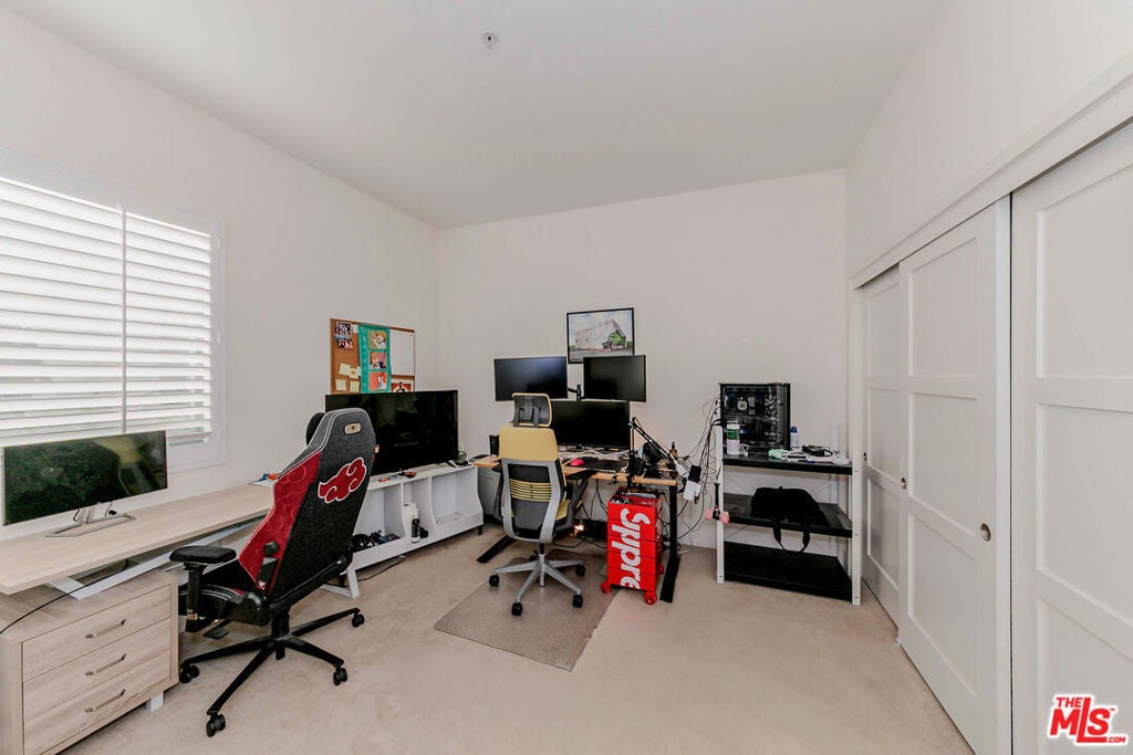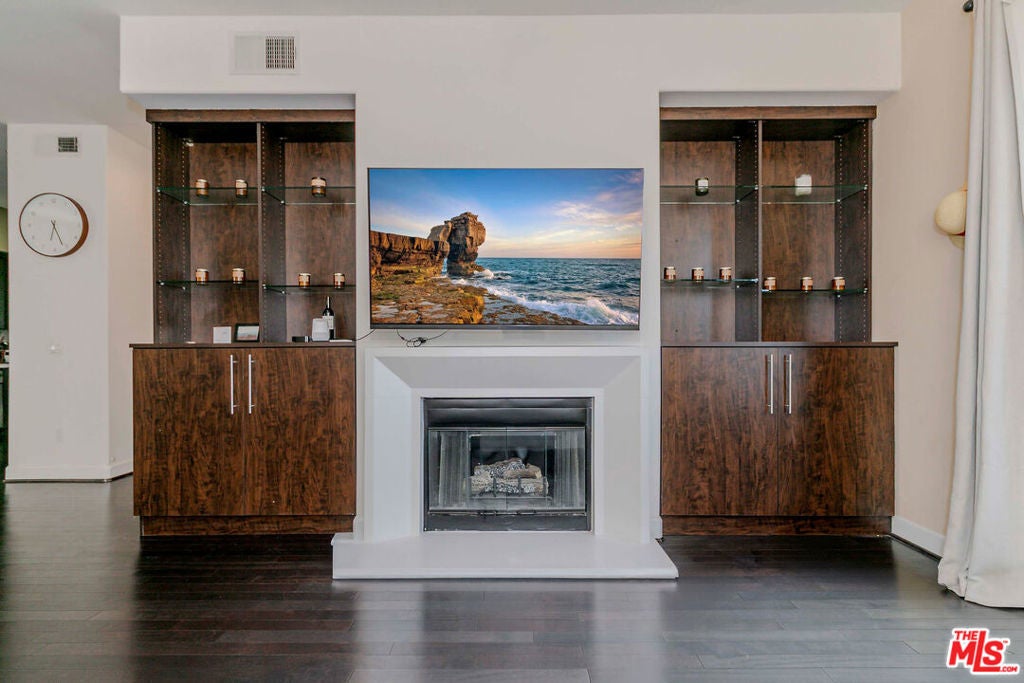 Experience sophisticated urban living in this stunning, light-filled penthouse perched on the top floor. This spacious, single-level residence offers 3 generously sized bedrooms, 2 full bathrooms, plus a convenient powder room, spanning an impressive 1,850 sq ft. Highlights include elegant wood flooring, custom built-ins, soaring ceilings, and walls of windows that flood the space with natural light. The gourmet kitchen is a chef's dream, featuring Caesarstone countertops, mosaic tile backsplash, and sleek stainless steel appliances. Enjoy a full-sized laundry room and energy-efficient tankless water heater for modern convenience. Step out onto the beautiful balcony to savor breathtaking views of the San Gabriel Mountains. The luxurious master suite boasts a custom-designed, expansive walk-in closet perfect for any wardrobe and a spa-like bathroom retreat. Additional storage is available on the same floor, and the unit's prime location adjacent to the elevator provides easy access, as do the reserved parking spaces. Meticulously maintained and showcasing a clean, contemporary architectural style, this exceptional penthouse effortlessly combines elegance and comfort for a truly elevated lifestyle.