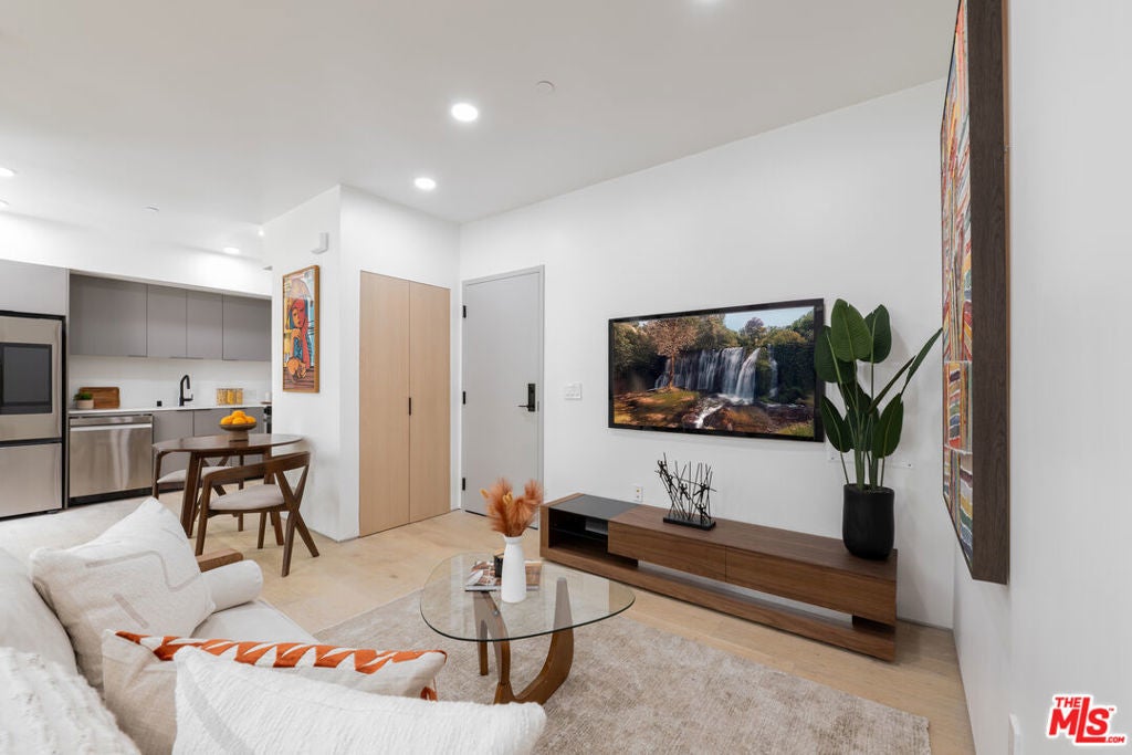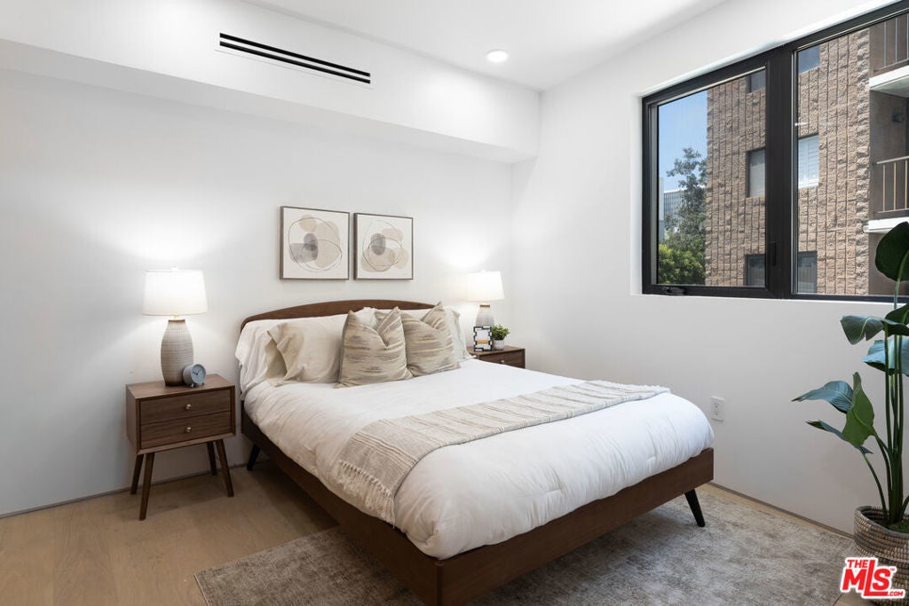 2025 Ultra-Modern Boutique Condominium in Prime Westwood. A brand-new 2025 architectural gem, this boutique building of only 15 residences is just minutes from UCLA and Westwood Village-perfect for students, faculty, or professionals seeking elegance, convenience, and walkability.This 4th-floor 1BR/1.5BA residence offers open-concept living with oversized black-framed windows, oak hardwood floors, custom built-ins, and refined luxury tile finishes. The designer kitchen showcases European cabinetry, quartz countertops, and premium Thermador appliances in select units, creating a stylish space for everyday living or entertaining. The bedroom includes an en-suite bath with a bathtub/shower combination.Residents enjoy secure parking, elevator, an elegant high-ceiling lobby, and exclusive top-floor penthouse units with private rooftops offering breathtaking city and mountain views. Set on a quiet, tree-lined street, the location offers effortless access to campus, cafes, fitness studios, shopping, and transit, with Beverly Hills, Century City, and Santa Monica just minutes away.Experience modern design, boutique exclusivity, and a Westwood lifestyle at its finest.
