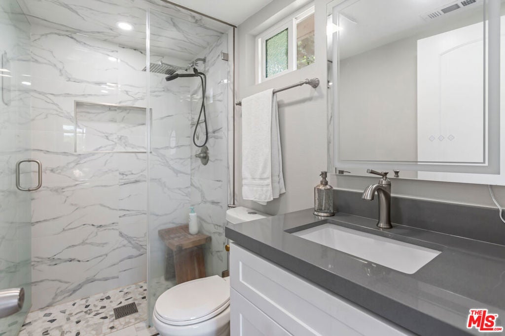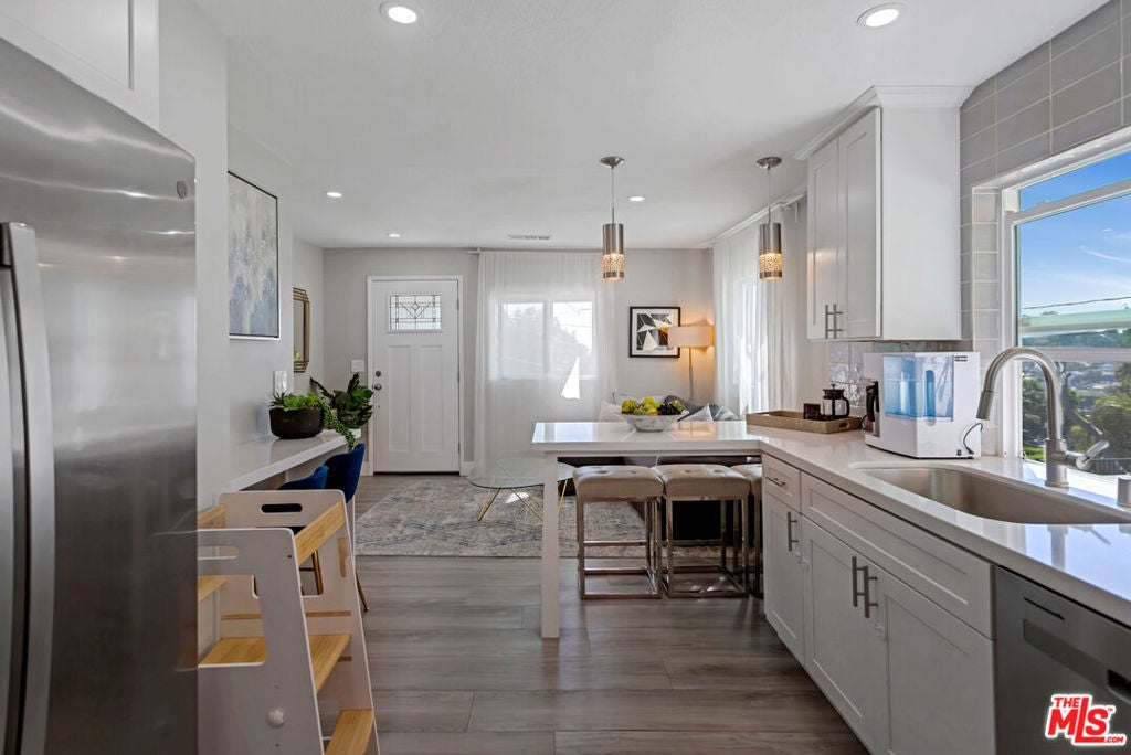 SUPER MOTIVATED SELLER- ACCEPTING ALL OFFERS. "A house on the hills for under $1M." Perched in the serene hills of up-and-coming El Sereno, this secluded mini-compound offers expansive views of city lights and the San Gabriel Mountains. Just minutes from Cal State LA, freeways, dining, shopping, Downtown LA, and Hollywood studios, the location perfectly blends quiet hillside living with vibrant city access. The property features a main house with 2 beds, 2 baths, a dedicated office with its own bathroom below the main level, and a detached 1-bed/1-bath unit above the garage- ideal as a guesthouse, studio, or rental for nearby Cal State LA students (approx. $1,600/month potential). Modern black iron railings surround the property and lead to a balcony where panoramic views greet you before stepping inside to a bright, open floor plan. The contemporary kitchen shines with stainless-steel appliances, custom countertops, and sleek finishes. Both bedrooms feature fully renovated bathrooms with tiled walls, glass shower doors, brushed nickel fixtures, and quartz counters- one en suite, one in the hallway. The detached unit offers a kitchenette, full bath, recessed lighting, and laminate flooring. The lower-level office provides the perfect work-from-home setup. Outdoors, entertain on a spectacular deck with concrete flooring, a custom BBQ island, and breathtaking skyline views. Plug in you EV (with available charging on site) and drive or walk to top-rated IB schools- Farmdale Elementary, El Sereno Middle, and Woodrow Wilson High- offering a complete IB pathway from K12. A rare hillside find under $1M with versatility, income potential, and upgrades throughout. An added bonus: the property is located in a census tract eligible for a special loan program. Up to a $7,500 grant from the lender, no PMI, and only 5% down. Contact the listing agent for more information.