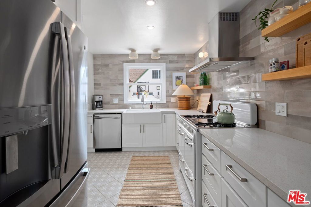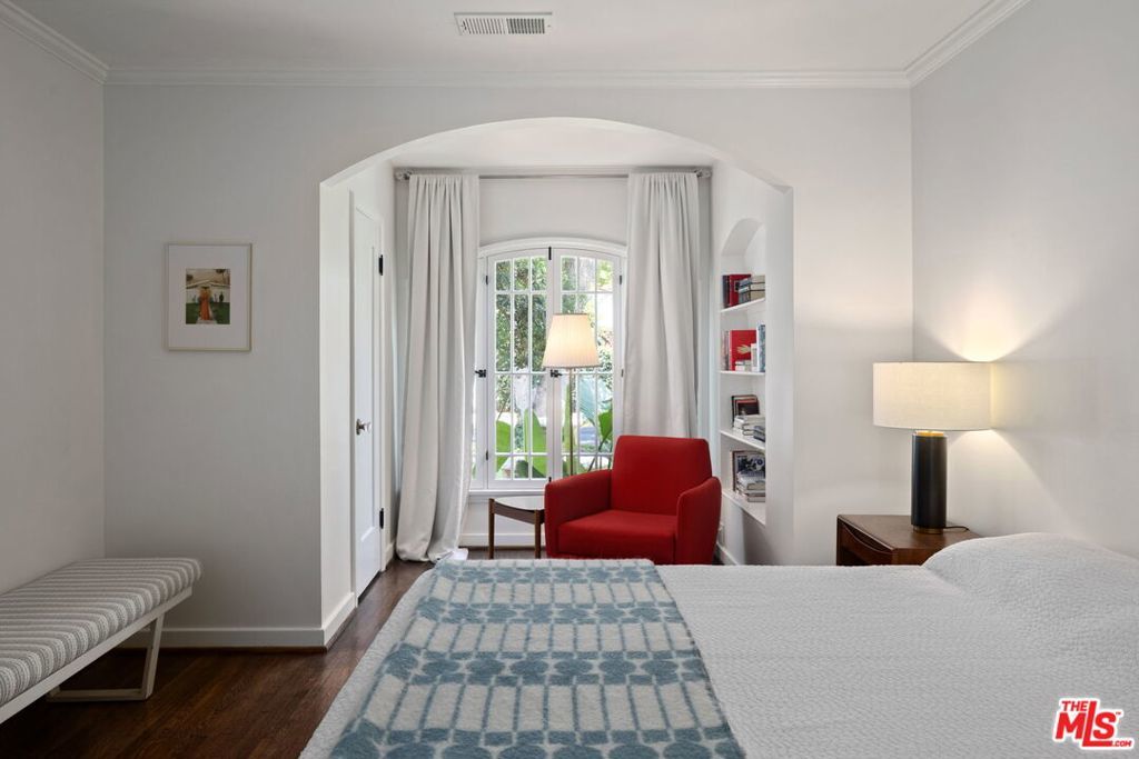 Beautifully remodeled c.1926 Tudor-style cottage nestled in the heart of Toluca Lake. 3 + 2 plus 1 + 1 guesthouse. Original details have been lovingly preserved incl. graceful arches, latch windows, built-ins, Red Oak flooring and high ceilings. Fireside living room and bright open dining room with crown molding and French doors flow to spacious cov'd brick patio--perfect when you want to move the entertaining outdoors! Modern kitchen with sophisticated muted palette, quartz tops, open shelving, gorgeous tile backsplashes and floor, refurbished vintage stove, farm sink, dining area, pantry and laundry. Main suite incl. upgraded bathroom, walk-in closet and access to patio. Bonus unfinished flex space above garage! Private entrance and separate covered patio for 634 sq. ft. guesthouse complete with carriage house doors, full kitchen, dining area, living room, and garage W/D. Brick drive to carport; approx. 7K sq. ft. lot.