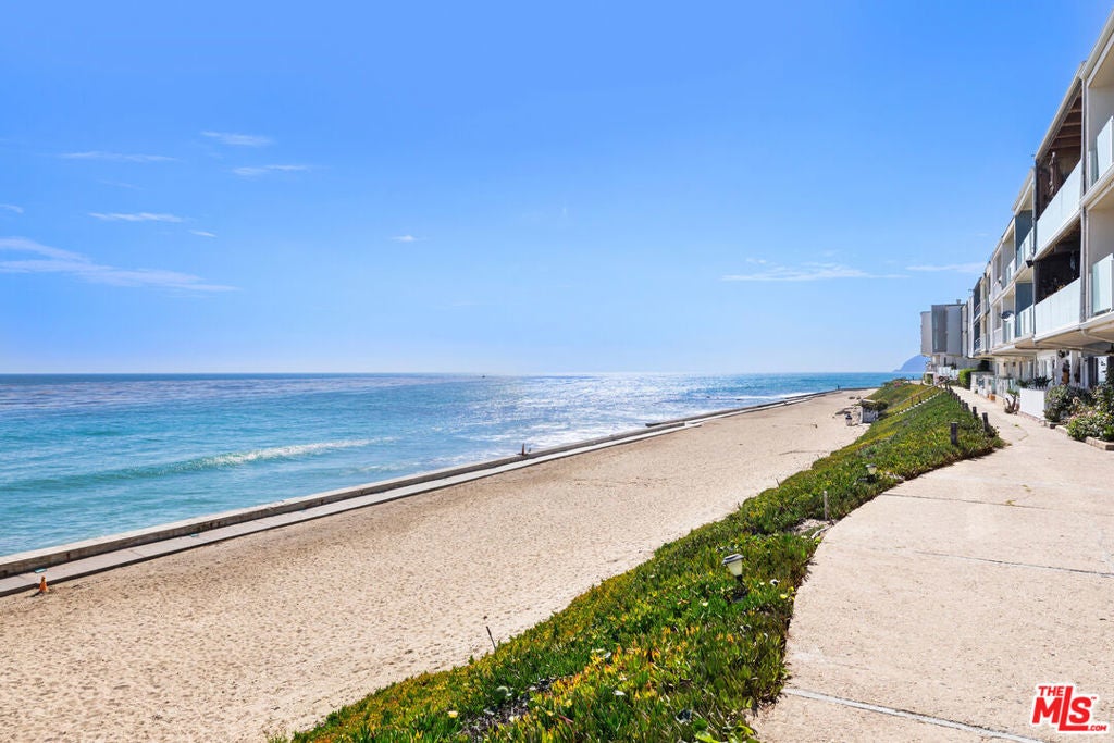 Price reduction! The most fantastic beach retreat! It's a corner unit with double ocean views. This one-bedroom charmer is a high-end remodeled condo featuring the highest quality finishes, fixtures and appliances. The gourmet kitchen features a Smeg refrigerator, a Big Chill oven and Big Chill induction cook top. The Carrera marble countertops, custom cabinets and Waterworks faucet complete the chic look. The floors are a beautiful hardwood, and they run throughout the living room, bedroom, and office space. The two bathrooms feature Restoration Hardware faucets on showers and sinks. They also include fan-heater units by Panasonic. In addition they are both equipped with wonderful designer floor tiles. The sliding glass doors leading to the two decks are also new, both upstairs and downstairs. There is also a newer washing machine. Luxuriate on the deck to the sounds and sight of the magnificent ocean. The beach is just a stone's throw away--enjoy it in style in your own vacation paradise. The sounds of the waves and the smell of the ocean are both included! Now is the time to come to Malibu!