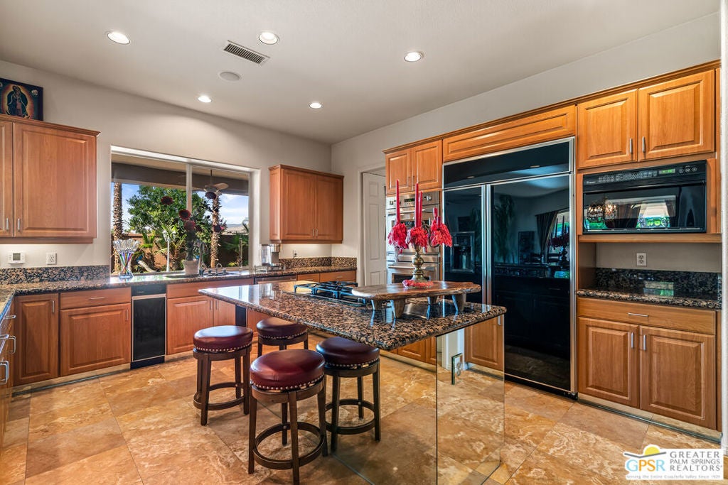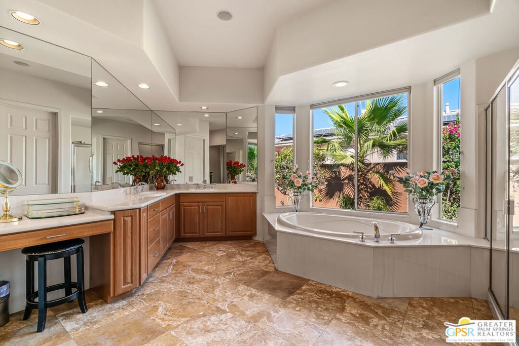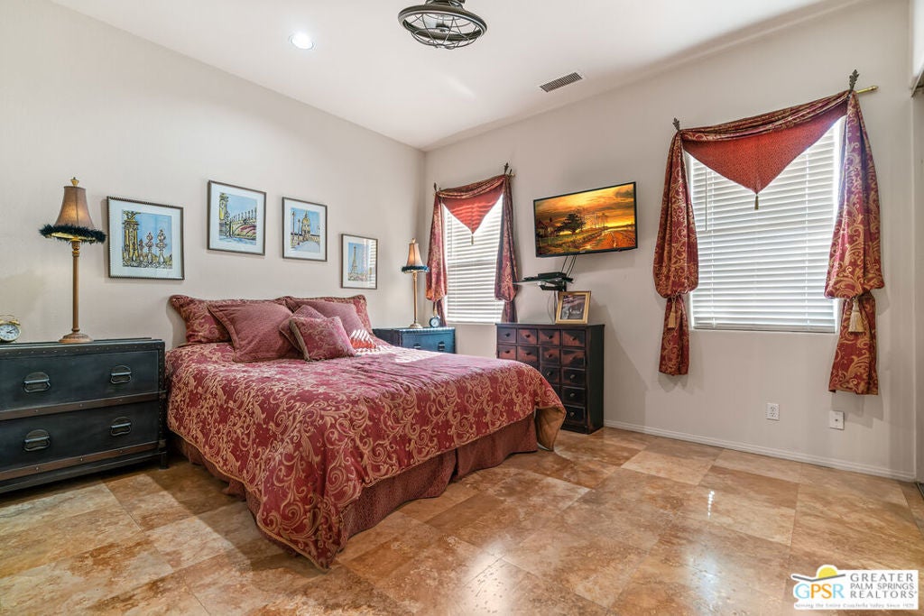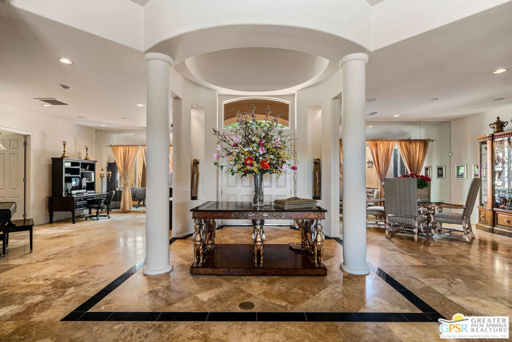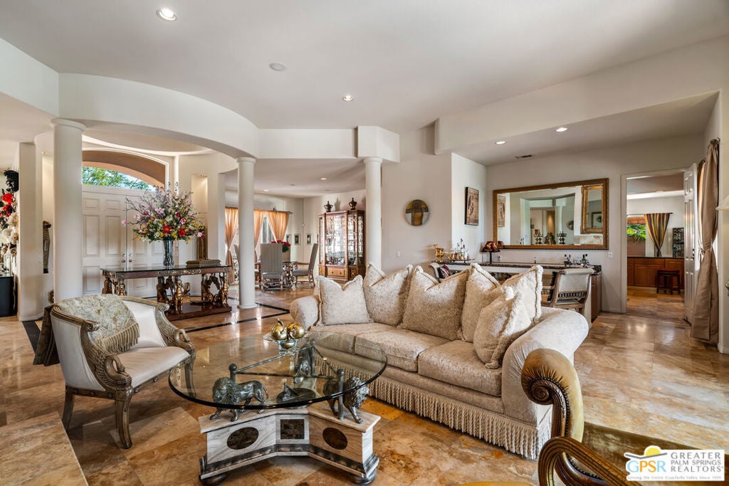"The Ultimate Entertainer's Paradise" Welcome to 18 Calais Circle, an entertainer's dream in the prestigious Versailles community of Rancho Mirage! This single-level 4,456 sq. ft. estate with 5 bedrooms and 5 bathrooms (all en-suite), offers everything you need for luxury living and unforgettable gatherings. All on a quiet cul-du-sac with no rear neighbors.. Why vacation when you can live in a private resort every day? Step inside to an open floor plan with soaring ceilings, travertine floors throughout, and three elegant fireplaces. Every detail has been thoughtfully designed for comfort and style. The heart of this home? The resort-style backyard--featuring an oversized pebble tec saltwater pool and spa, resurfaced patio decking, expansive covered patio, and a full outdoor kitchen and bar complete with two commercial refrigerators, dishwasher, ice maker, and oven. Perfect for large parties, family celebrations, or corporate retreats! Enjoy Imperial Irrigation (low utility costs), a Culligan water system, whole-home surround sound, and a state-of-the-art security system with 8 cameras. The artificial turf front and back means low maintenance and year-around curb appeal. Fresh paint in most rooms and on the outside and back walls. Epoxy flooring in the 3 car garage. Move in ready and just reduced to $1,659,000, this is twice the house for half the price compared to nearby new builds. This home is unmatched in value. HOA is only $270/month. Make this your dream home for the holidays!! Open most Sundays noon to 3pm. Call agent for details. Cooperative and motivated Sellers will make property available for showings. Don't miss this home!