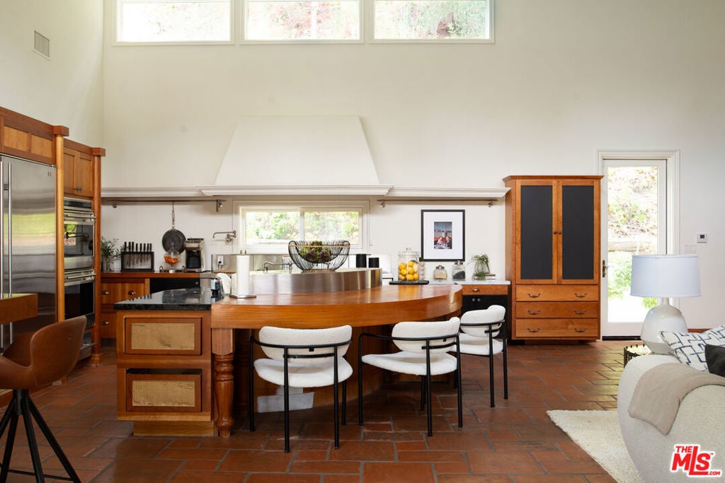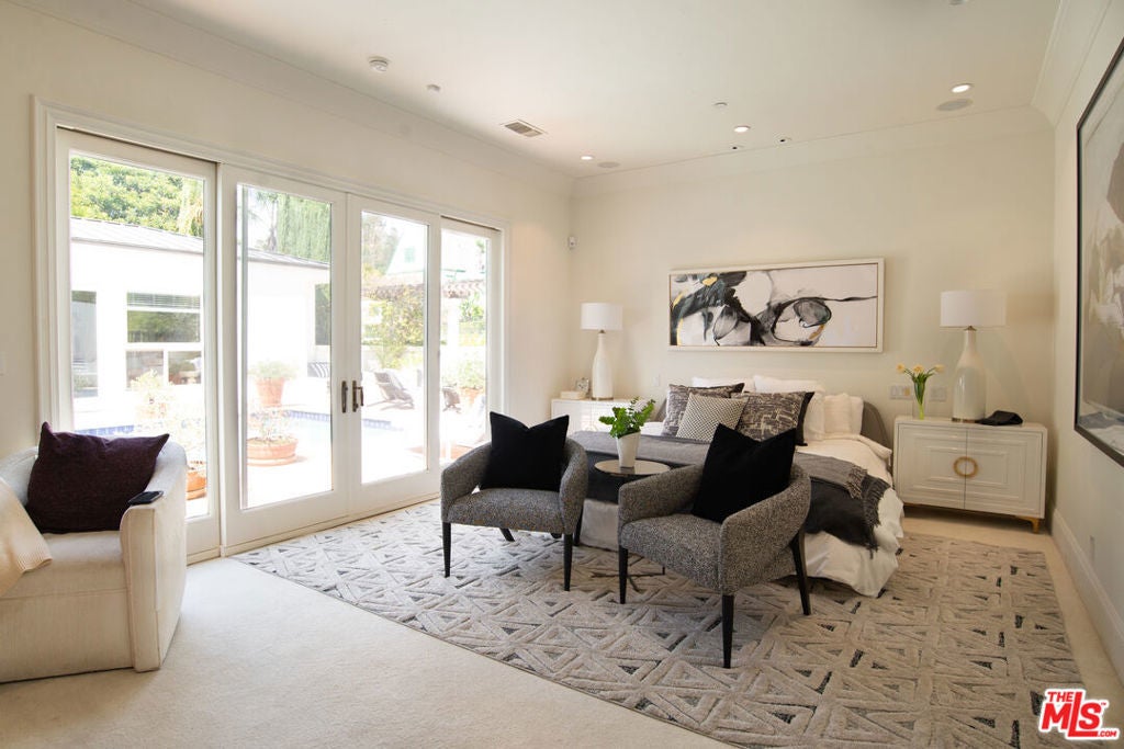 Located on coveted Cove Way in Beverly Hills, this single-story Italian villa offers privacy, elegance, and timeless charm. Behind gates and a spacious motor court, the home features a Saltillo tile foyer leading to a grand kitchen and great room with 15-foot ceilings, dual wet bars, and top-tier Wolf, Miele, and Sub-Zero appliances. Designed for entertaining, the residence includes a 1,200+ bottle wine cellar, a step-down living room with a dramatic fireplace, and seamless access to a private courtyard with a pool, fire pit, and ample seating. The primary suite offers dual vanities, a spa tub, and three walk-in cedar closets. A separate guest wing with two additional bedrooms and private patio access, plus a maid's quarters, completes this rare offering in one of Beverly Hills' most exclusive enclaves.