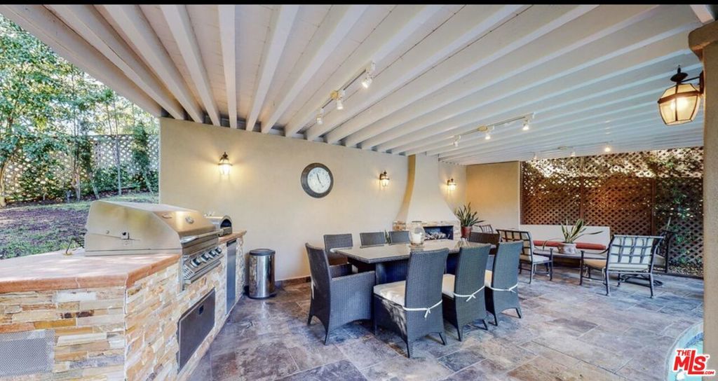 Tucked away on a quiet Brentwood street, this private three-story French Normandy residence blends timeless charm with thoughtful modern amenities; offering 6 Bedrooms, 6 bathrooms with 5,634 of living space on a spacious 16,412 square foot lot. Surrounded by mature oak and melaleuca trees, the home offers a rare sense of privacy while remaining minutes from the Brentwood Country Mart, Palisades Village, and easy freeway access. Through stately French doors, a dramatic foyer welcomes you into an interior of warmth and sophistication. The main level unfolds with a sun-filled formal living room anchored by a fireplace, an expansive formal dining room with versatile French door enclosures, and an inviting family room seamlessly connected to the kitchen. Designed with entertaining in mind, the chef's kitchen features stainless steel appliances, two built-in refrigerators, a wine cooler, and an oversized island with abundant counter space. A breakfast nook wrapped in windows and French doors bathes the space in natural light and opens directly to the patio. Upstairs, the luxurious primary suite boasts soaring cathedral ceilings, oversized windows, and a spa-inspired bath finished in quartz with gold accents. A soaking tub, walk-in shower, dual vanities, and private balcony overlooking the yard create a true retreat, complemented by a massive custom walk-in closet. Three additional spacious bedrooms and two full baths complete the upper level. The first floor offers flexibility with two additional bedrooms, a full and half bath, and a dedicated laundry room ideal for guests, staff, or home office needs. The backyard is an entertainer's dream, with multiple French doors leading to a generous patio with fireplace, while beyond lies a private pool and spa framed by lush landscaping. A built-in pergola houses a grill, second outdoor fireplace, and dining terrace, creating the perfect setting for alfresco living year-round. A rare opportunity to own a classic estate in one of the Westside's most desirable neighborhoods, this Brentwood home offers privacy, elegance, and exceptional livability. For Sale $8,450,000.