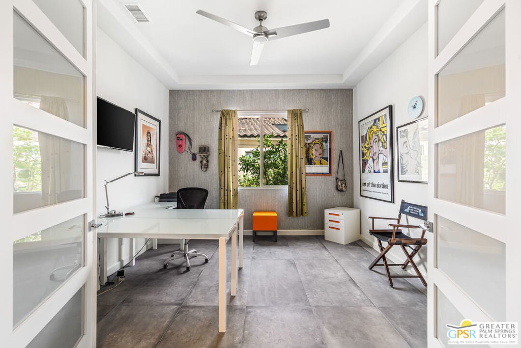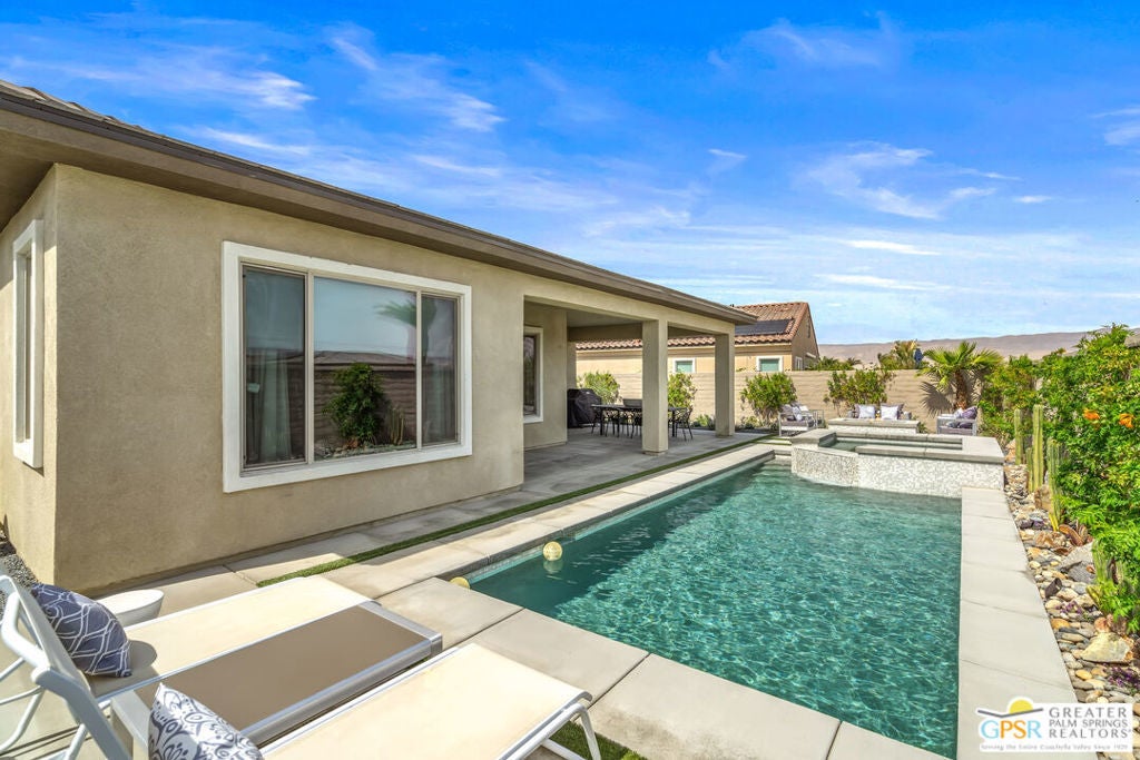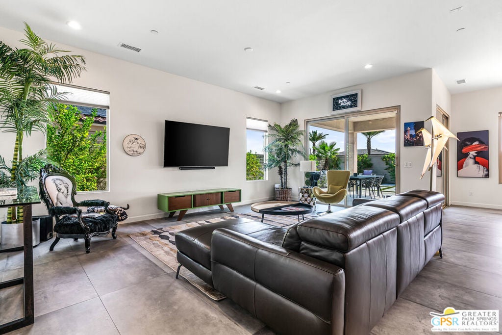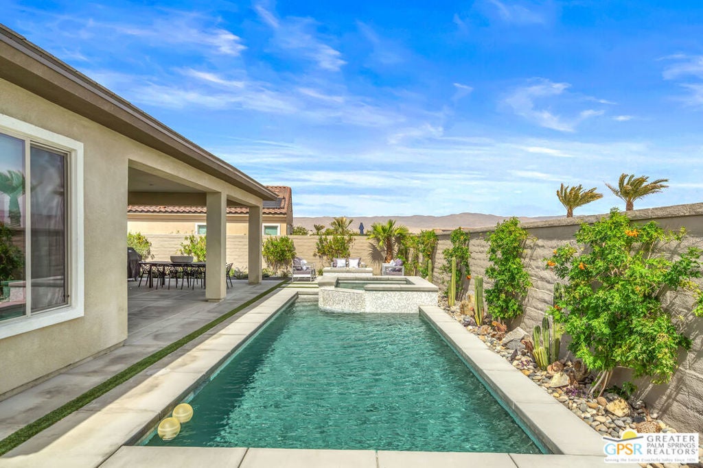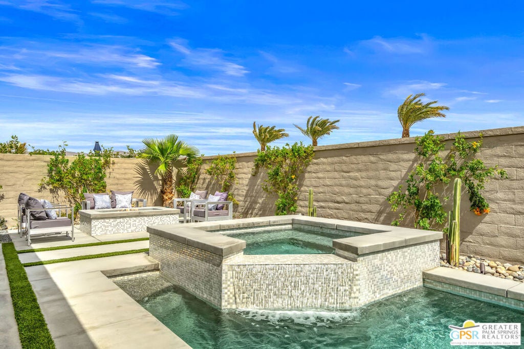 Price to sell! This Modern Desert Oasis in 55+ Del Webb Rancho Mirage! Welcome to The Preserve Model-- a stunning 2-bedroom, 2-bath + Den/Office home that's been completely reimagined with a fun, modern flair! Spanning 2,008 sq. ft., this stylish retreat boasts all-new large grey Italian floor tile and plush carpeting, plus French doors that add elegance and privacy to your office or creative space. Step outside to your private entertainer's paradise-- a sparkling saltwater pool and spa, a built-in fire pit, and lush landscaping with fruit trees. Whether you're hosting lively gatherings or enjoying a peaceful evening under the stars, this backyard is a dream come true! With leased solar @ just $139/month, energy efficiency is effortless. Plus, as part of Del Webb Rancho Mirage, you'll enjoy resort-style amenities including a state-of-the-art fitness center, clubhouse, bar & lounge, tennis courts, and pickleball-- all in the heart of prestigious Rancho Mirage! This modern gem is close to Aqua Caliente Casino/ Spa, Acrisure Arena, Mission Hills CC, restaurants. Ready to experience the best in 55+ luxury living? Call today for a private showing. HOA dues now include cable/WIFI + many premium channels.... check out the documents sections to see all that is included in package.