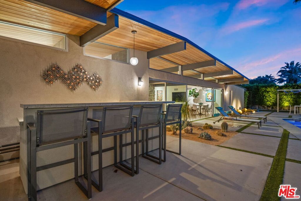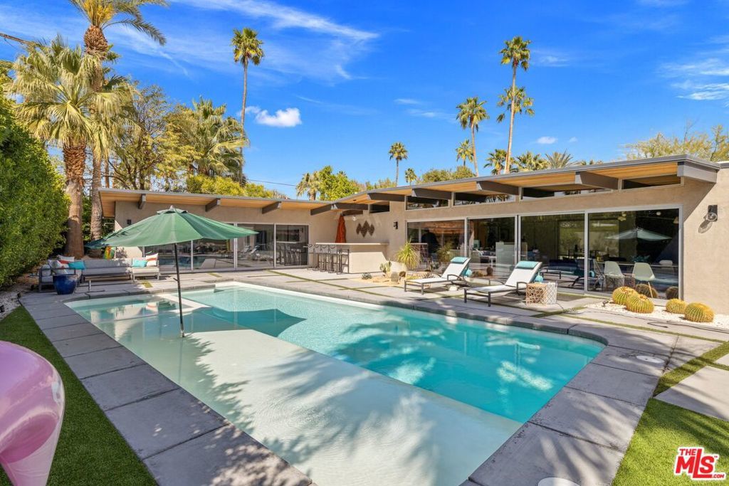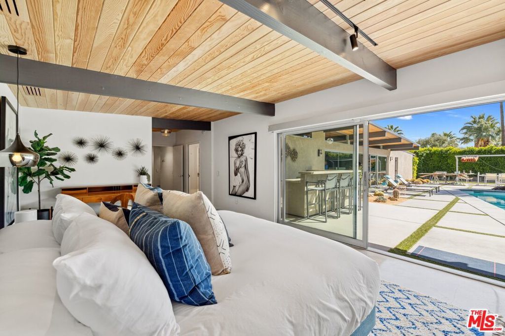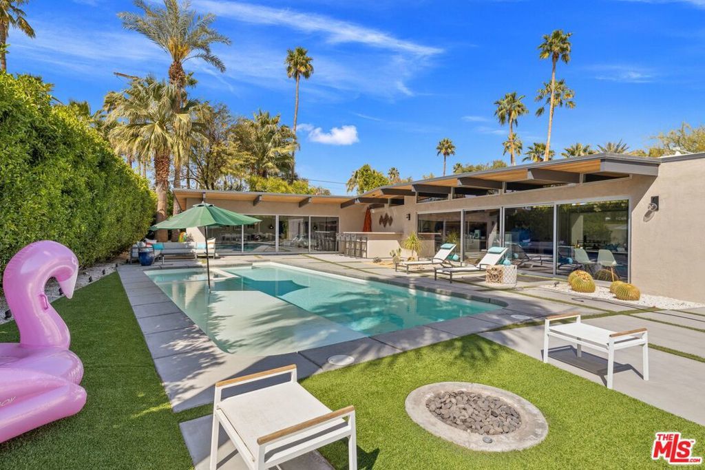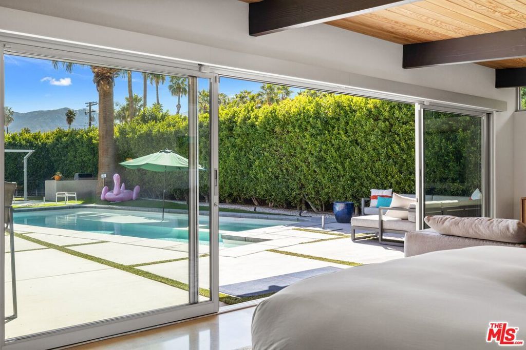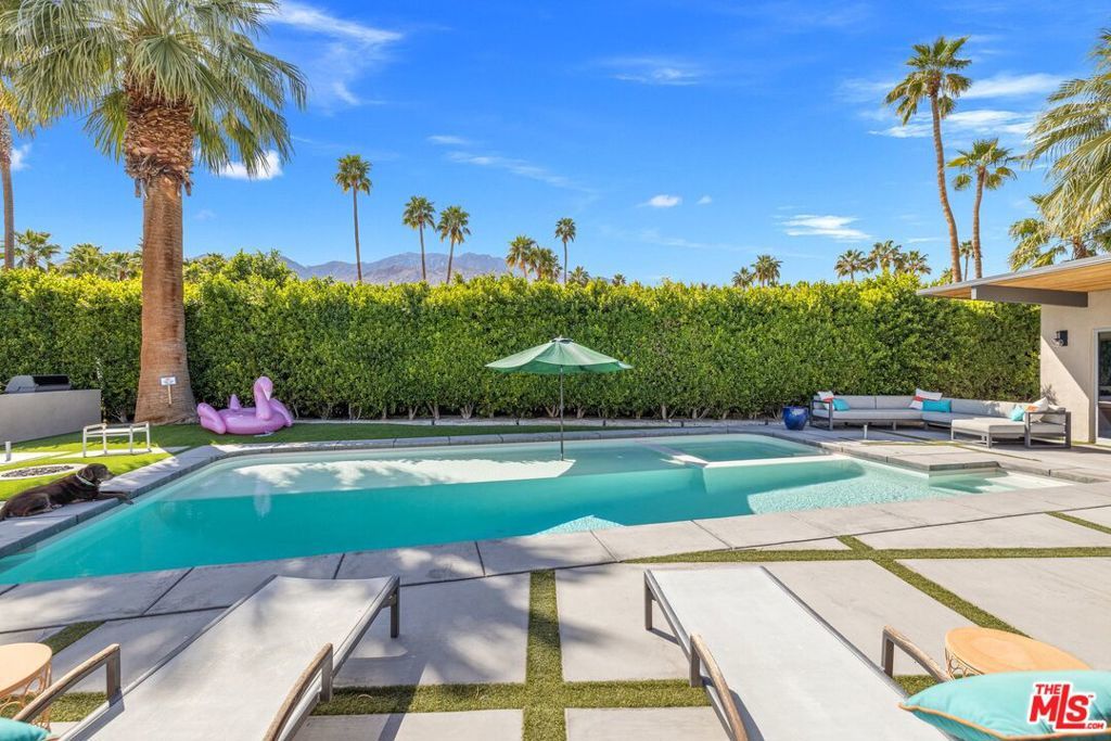 AVAILABLE DEC., JAN., APRIL, MAY | Iconic Style, Modern Luxury Seasonal Rental in Central Palm Springs. Step into the Palm Springs dream with this meticulously remodeled 1958 Alexander, where iconic mid-century modern design is seamlessly elevated with today's luxuries. Situated on a private corner lot in the heart of central Palm Springs, this 3 bed | 3 bath home offers jaw-dropping views of the San Jacinto mountains and the ultimate seasonal escape. A gated courtyard with fire pit and lounge area sets the tone for desert living at its finest. Inside, a dramatic double-door entry opens to walls of glass framing the sparkling pool, lush landscaping, and endless skies. The open-concept floor plan with vaulted ceilings creates a light-filled space ideal for entertaining. The designer-renovated kitchen features a custom island, professional-grade appliances, built-in refrigerator, and striking tile backsplash. The principal suite includes a cozy sitting area with fireplace, roller shades, and direct pool access. Newly remodeled bathrooms showcase Zia Cantera Tile, custom cabinetry, and modern fixtures, blending style and comfort. Each guest bedroom offers its own private outdoor patio, while the home is equipped with TVs in all bedrooms and the main living area for convenience. Outdoors, relax on the tanning shelf of the sparkling pool, unwind in the inset spa, or gather with friends around fire features. An outdoor bar, BBQ, covered dining patio, and multiple lounge zones create an entertainer's paradise. Mature hedges, swaying palms, and desert plantings provide resort-like privacy. Additional highlights include a rock-faced indoor fireplace, interior laundry, and ample space to host or simply relax. Just minutes from downtown Palm Springs, this home delivers everything a seasonal renter desires: iconic architecture, resort-style amenities, privacy, and unbeatable location. Escape the cold and indulge in your slice of Palm Springs paradise. HURRY THIS ONE WON'T LAST!