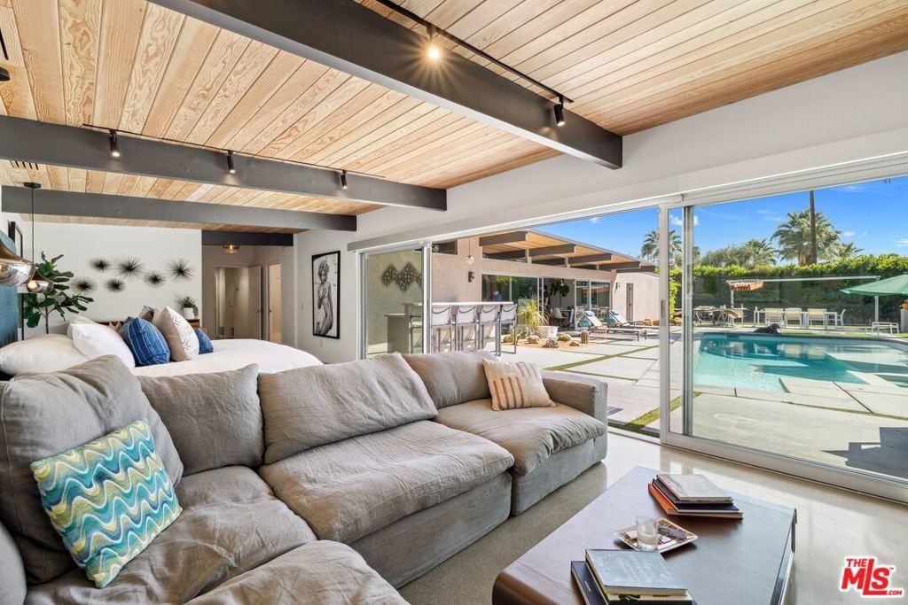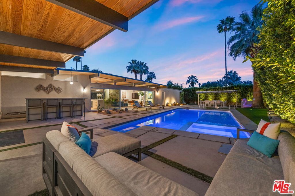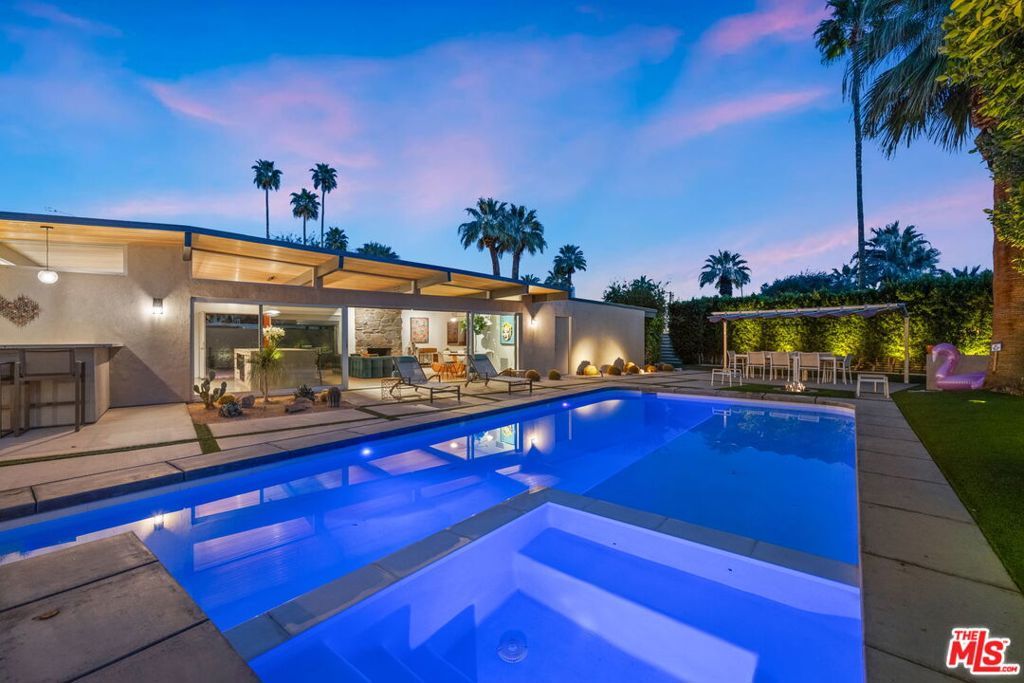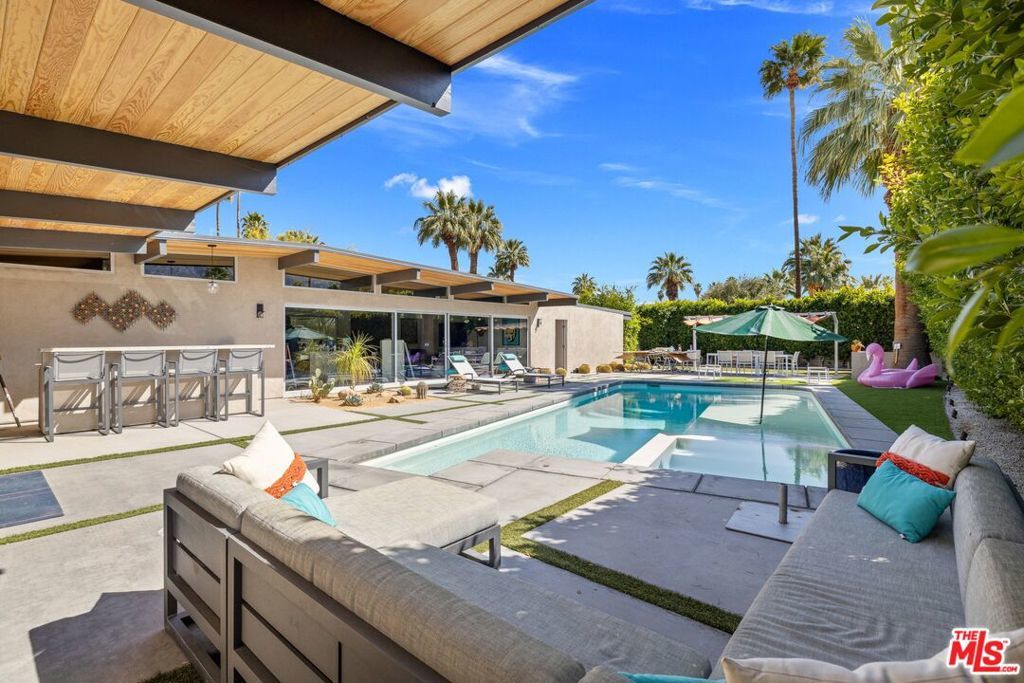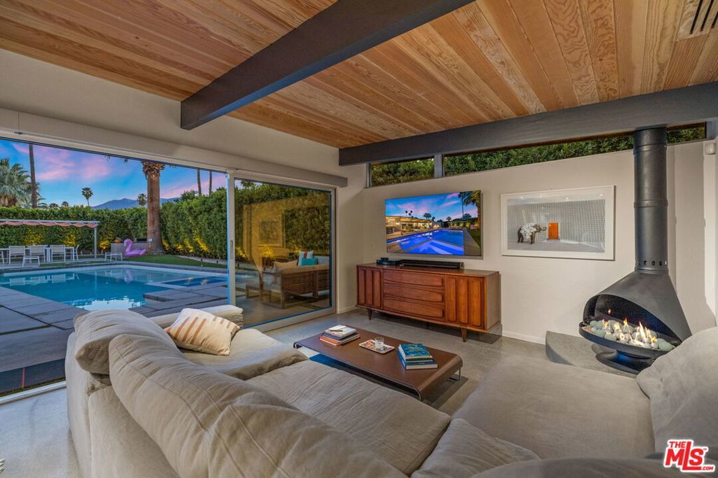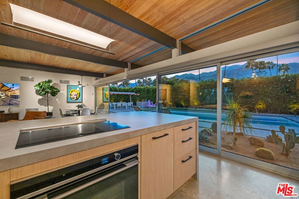AVAILABLE DEC., JAN., APRIL, MAY | Iconic Style, Modern Luxury Seasonal Rental in Central Palm Springs. Step into the Palm Springs dream with this meticulously remodeled 1958 Alexander, where iconic mid-century modern design is seamlessly elevated with today's luxuries. Situated on a private corner lot in the heart of central Palm Springs, this 3 bed | 3 bath home offers jaw-dropping views of the San Jacinto mountains and the ultimate seasonal escape. A gated courtyard with fire pit and lounge area sets the tone for desert living at its finest. Inside, a dramatic double-door entry opens to walls of glass framing the sparkling pool, lush landscaping, and endless skies. The open-concept floor plan with vaulted ceilings creates a light-filled space ideal for entertaining. The designer-renovated kitchen features a custom island, professional-grade appliances, built-in refrigerator, and striking tile backsplash. The principal suite includes a cozy sitting area with fireplace, roller shades, and direct pool access. Newly remodeled bathrooms showcase Zia Cantera Tile, custom cabinetry, and modern fixtures, blending style and comfort. Each guest bedroom offers its own private outdoor patio, while the home is equipped with TVs in all bedrooms and the main living area for convenience. Outdoors, relax on the tanning shelf of the sparkling pool, unwind in the inset spa, or gather with friends around fire features. An outdoor bar, BBQ, covered dining patio, and multiple lounge zones create an entertainer's paradise. Mature hedges, swaying palms, and desert plantings provide resort-like privacy. Additional highlights include a rock-faced indoor fireplace, interior laundry, and ample space to host or simply relax. Just minutes from downtown Palm Springs, this home delivers everything a seasonal renter desires: iconic architecture, resort-style amenities, privacy, and unbeatable location. Escape the cold and indulge in your slice of Palm Springs paradise. HURRY THIS ONE WON'T LAST!